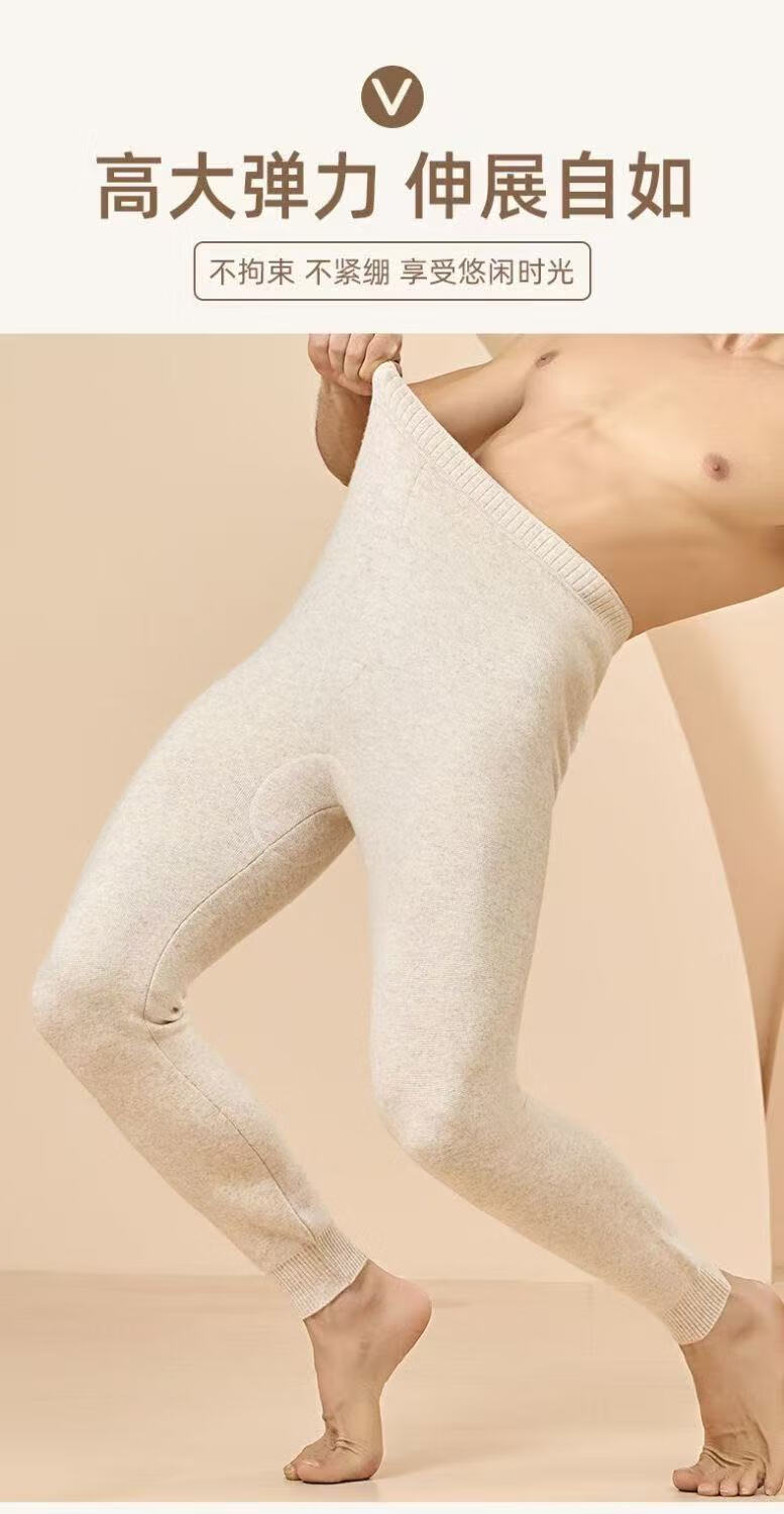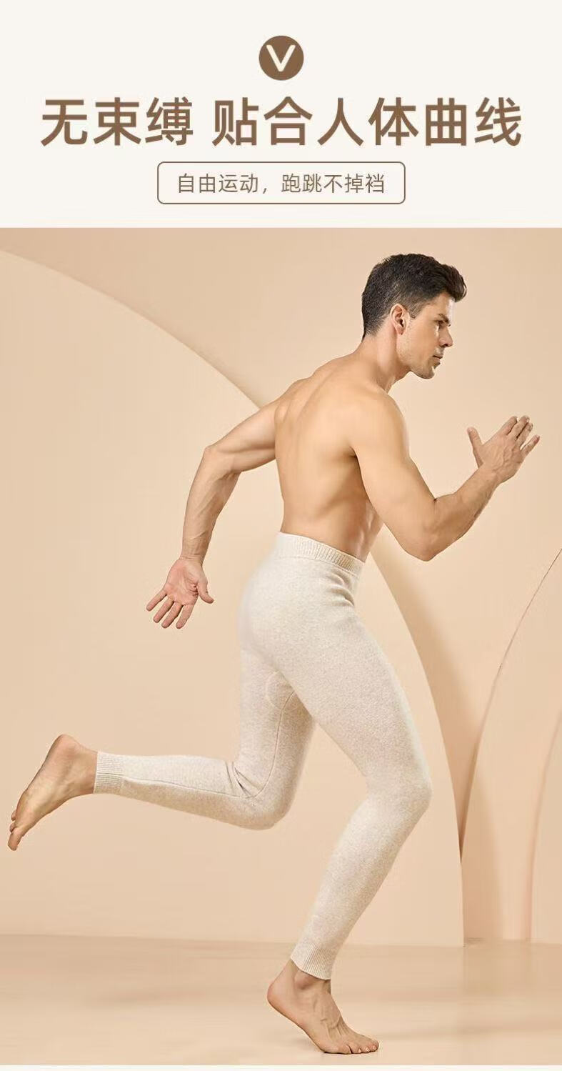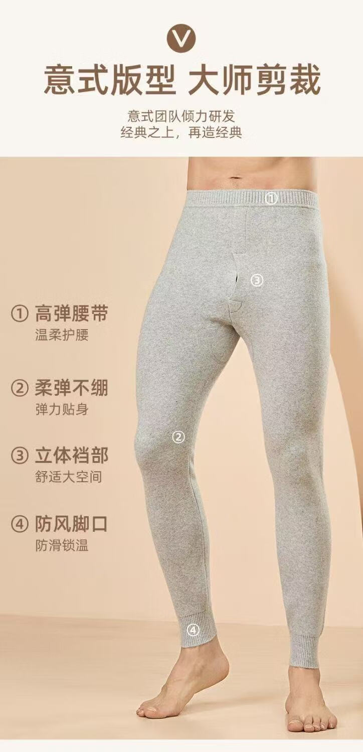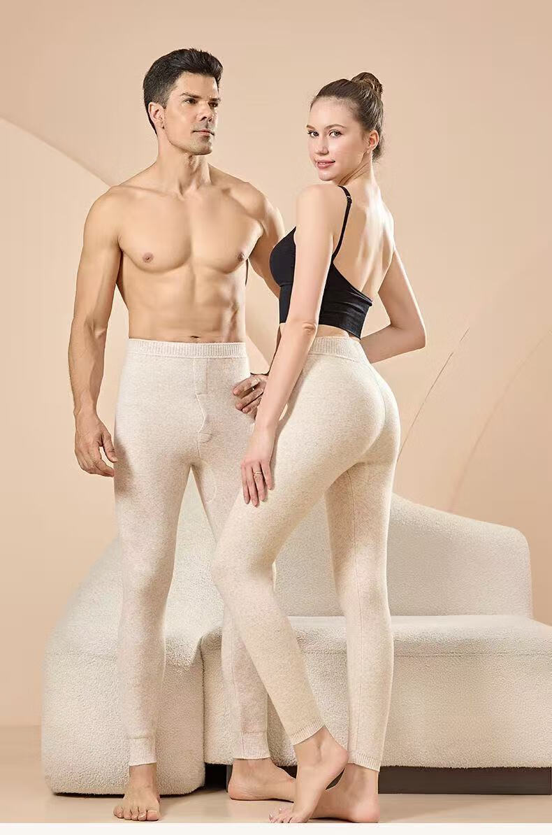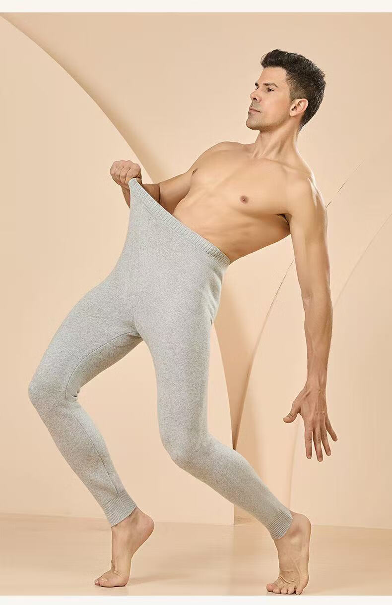 ROMON Inner Mongolia high-end thickened pure cashmere pants for men, warm and slimming, high-waisted long johns, winter high-waisted wool pants for women, men's thick gray 2XL recommended 140-160Jin Jin equals 0.5 kg