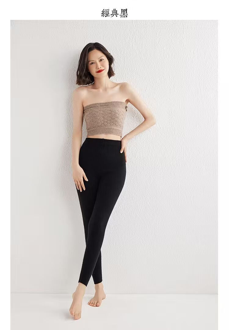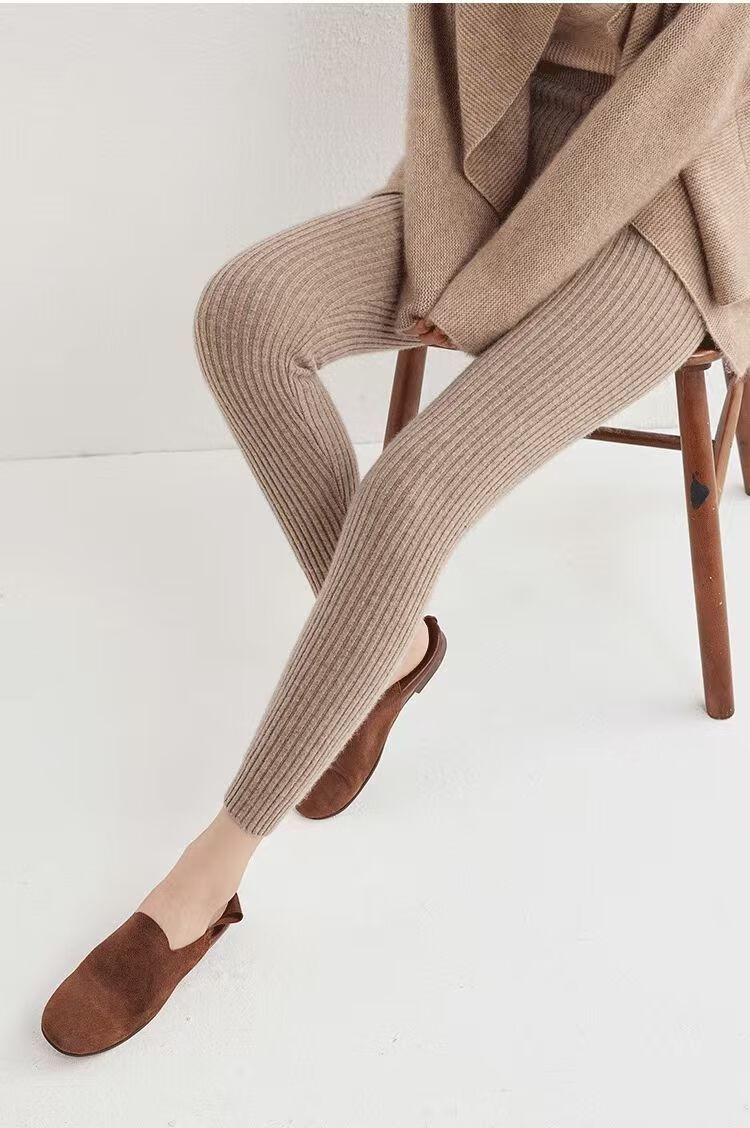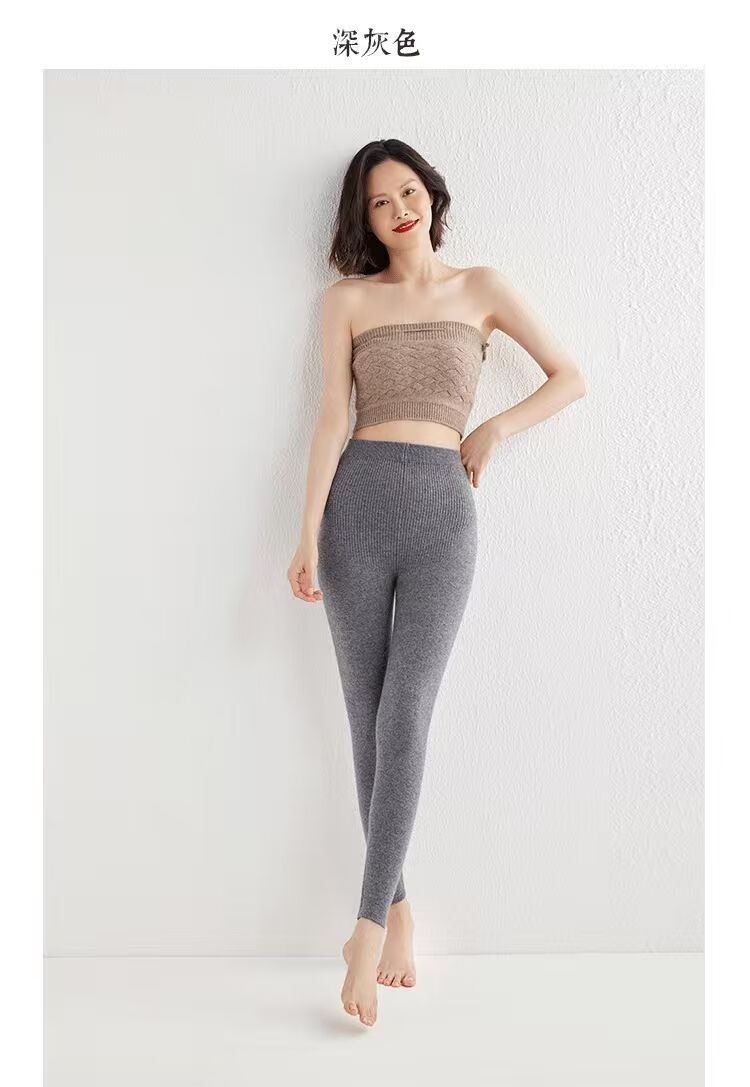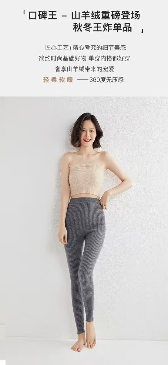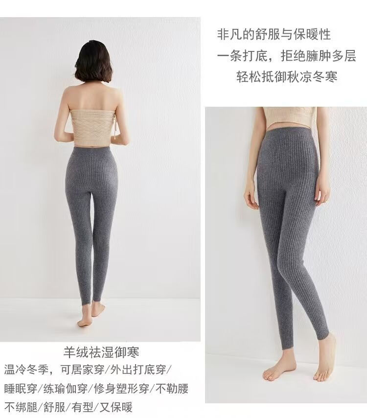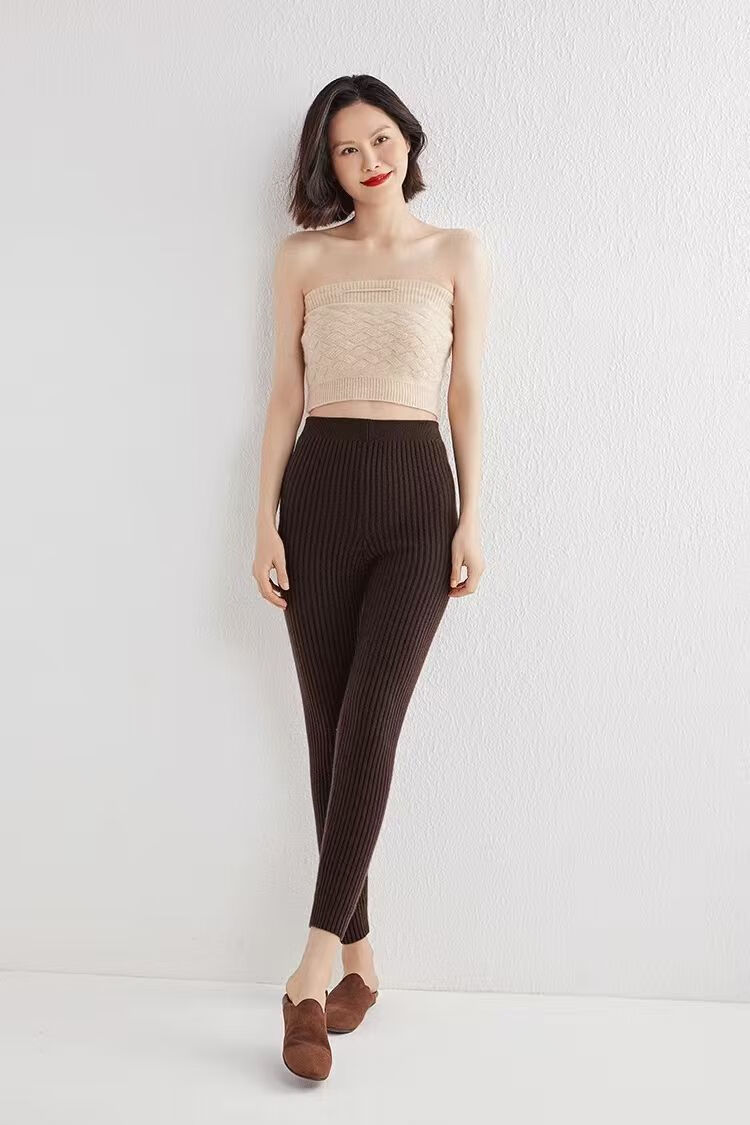 ROMON Autumn and Winter pure cashmere pants for men and women, slim leggings, high-waisted, thickened and warm, seamless pants for inner and outer wear, close-fitting, women's strips, camel S