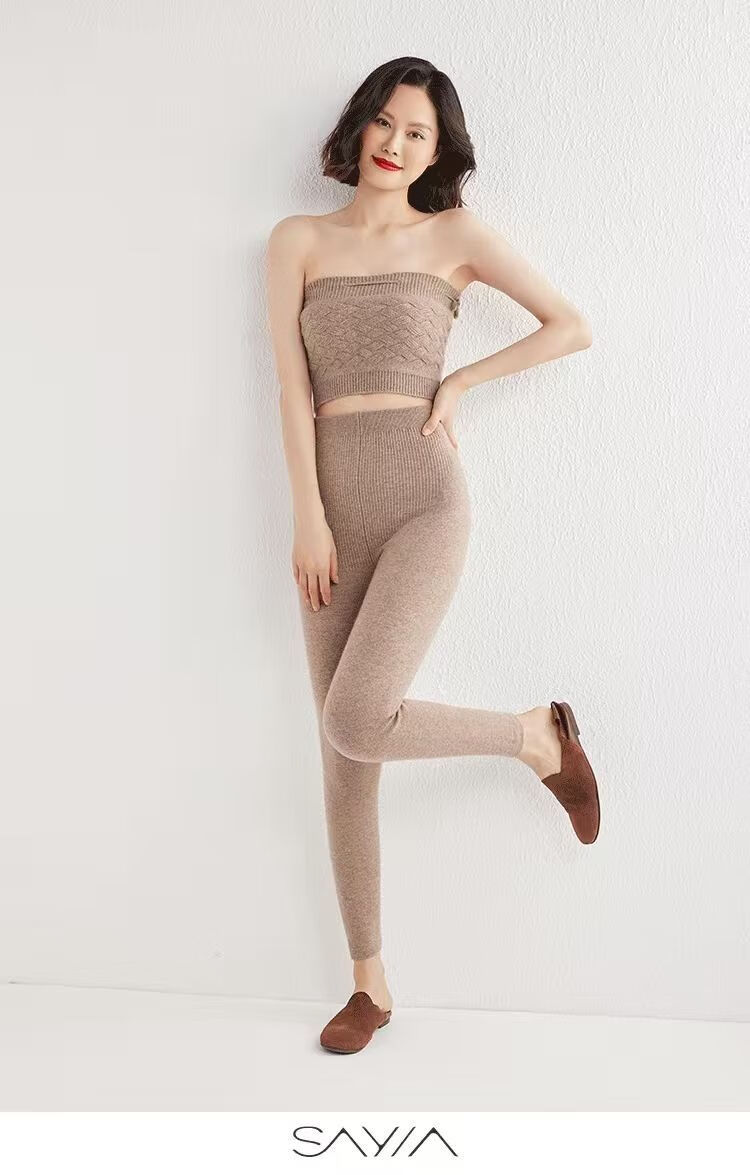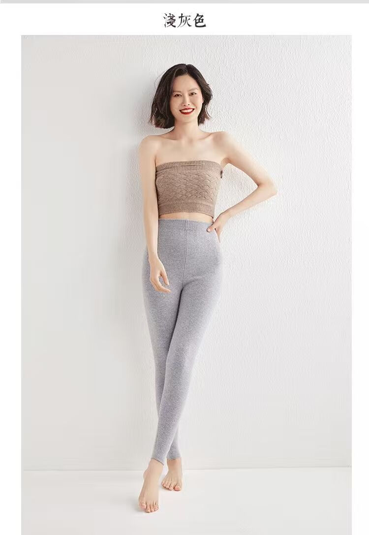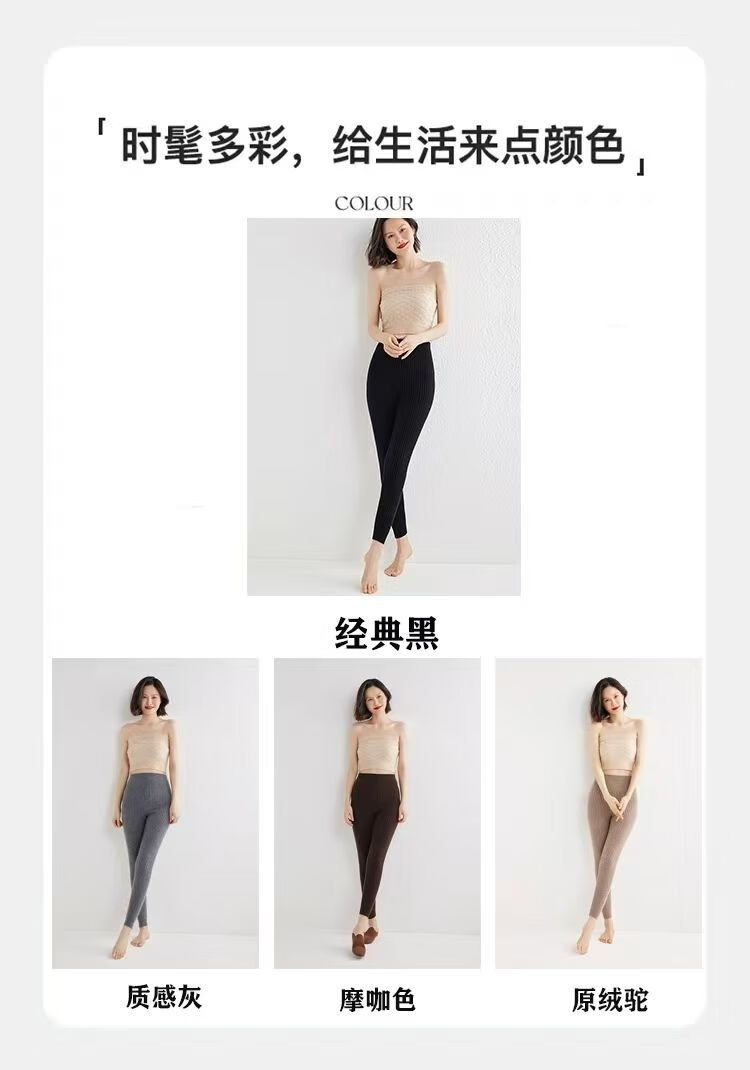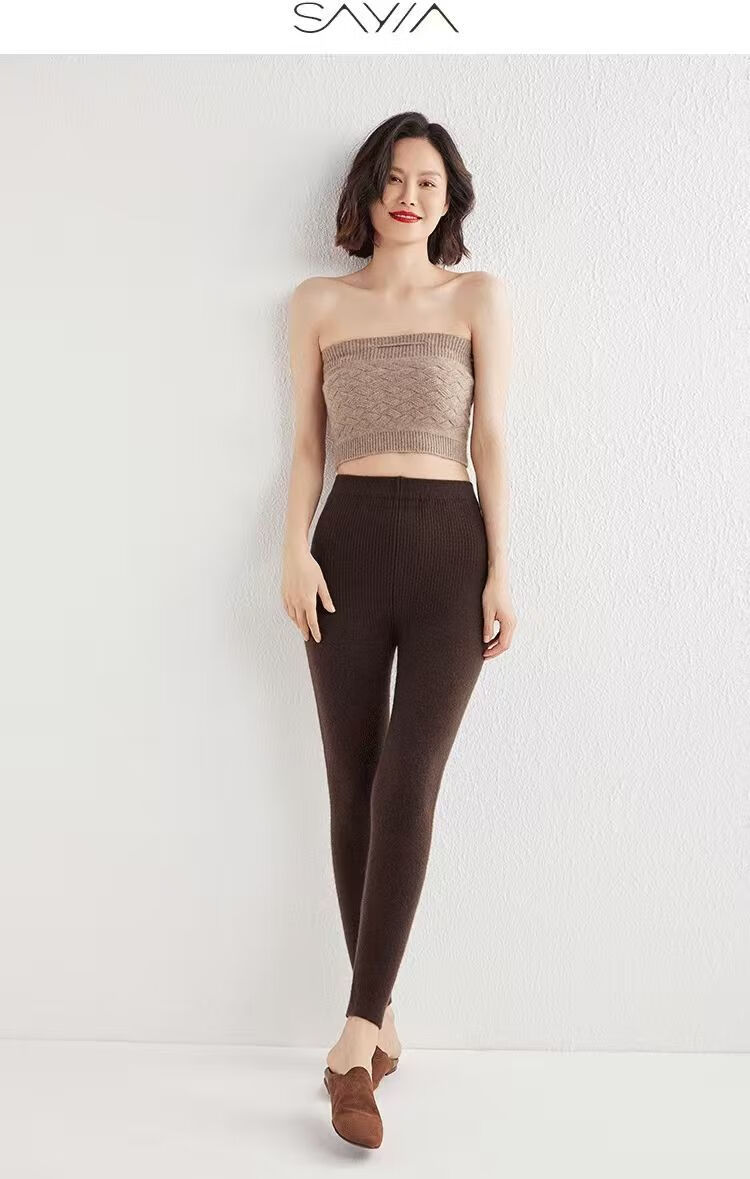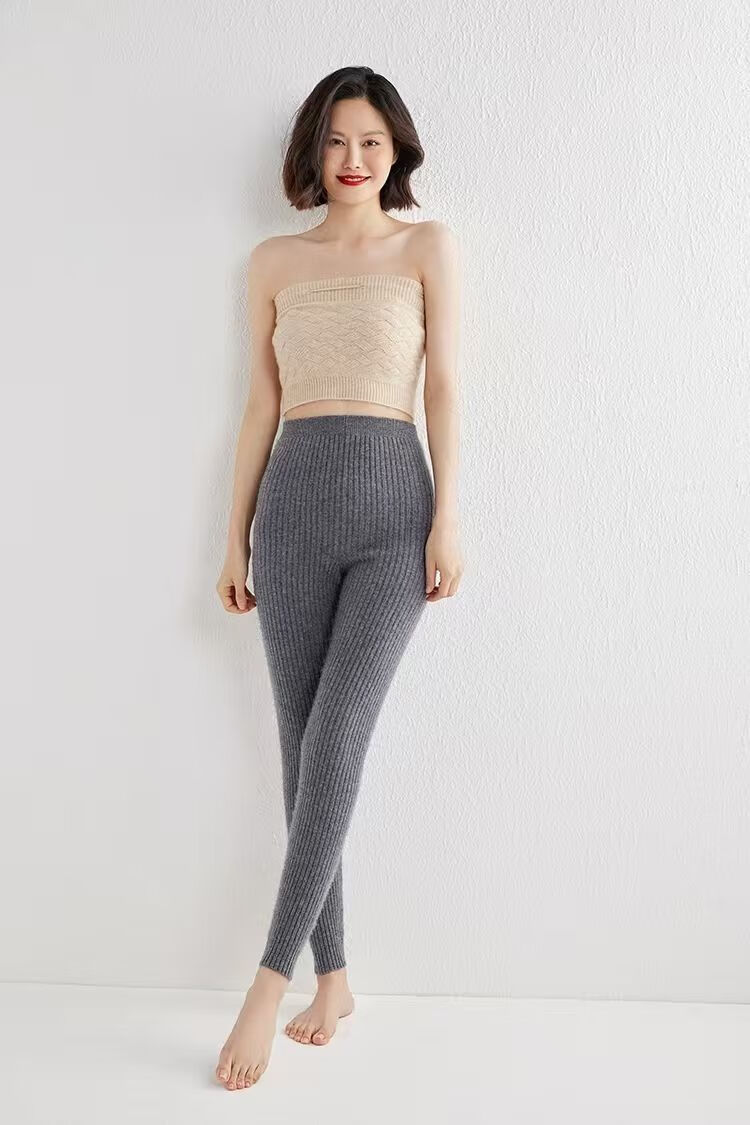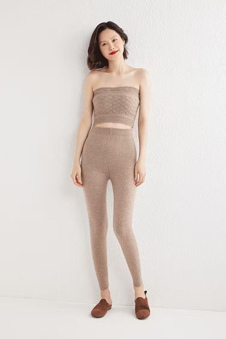 ROMON Autumn and Winter pure cashmere pants for men and women, slim leggings, high-waisted, thickened and warm, seamless pants for inner and outer wear, close-fitting, women's strips, camel S