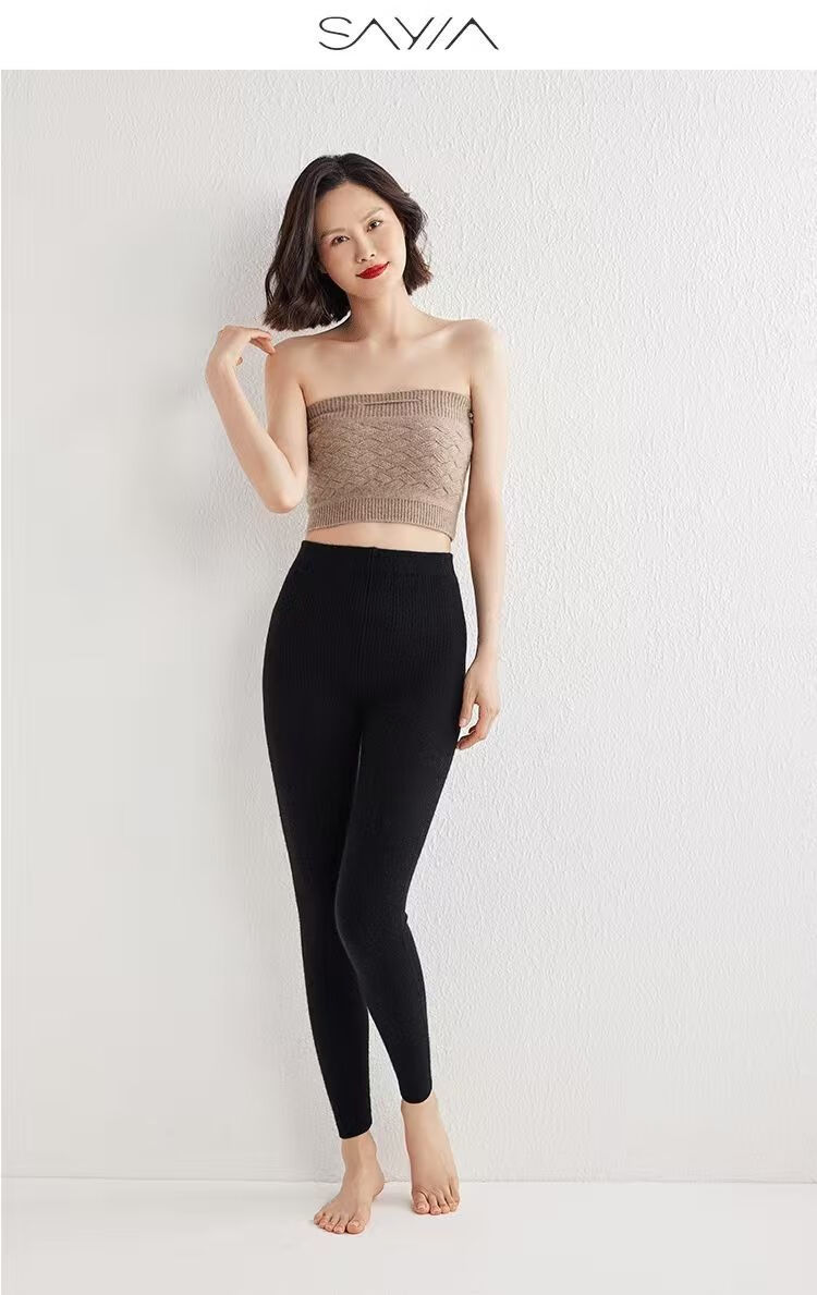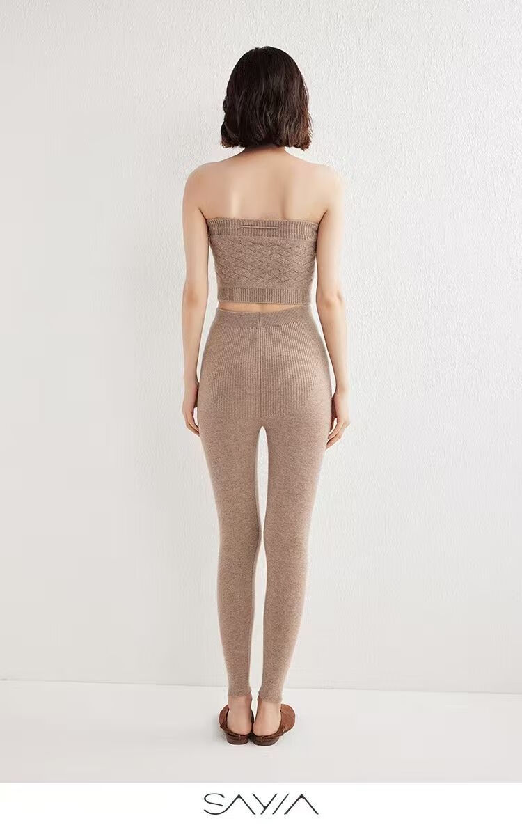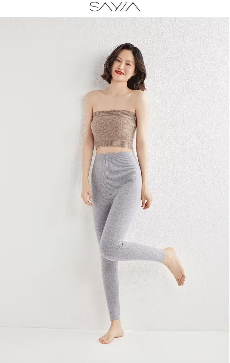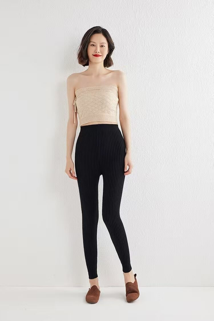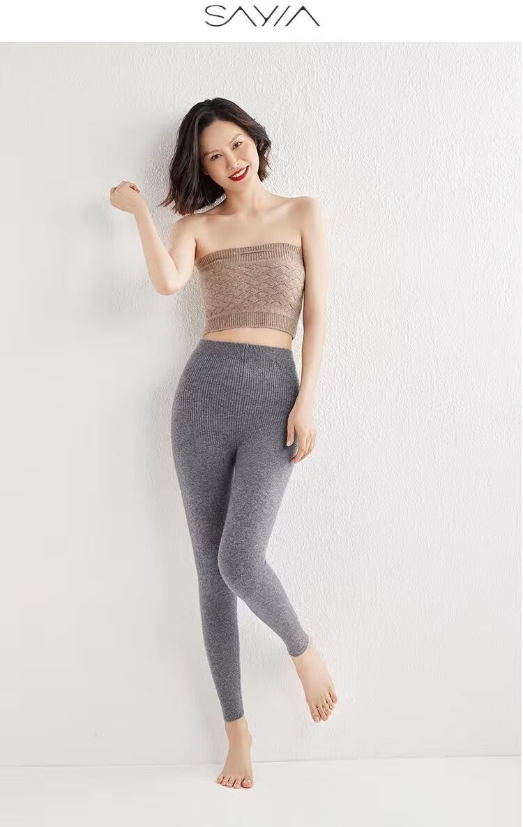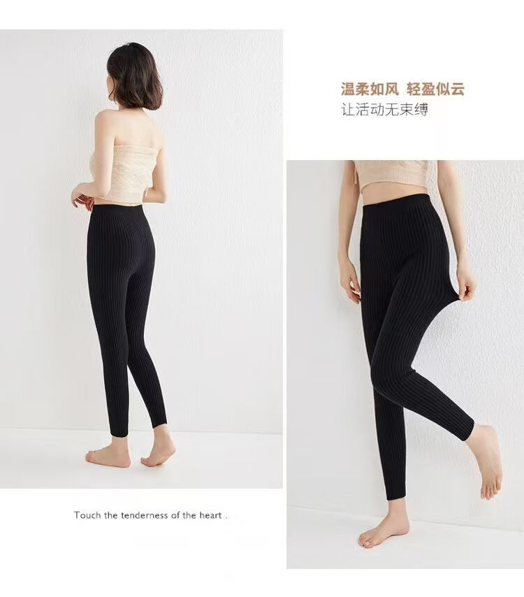 ROMON Autumn and Winter pure cashmere pants for men and women, slim leggings, high-waisted, thickened and warm, seamless pants for inner and outer wear, close-fitting, women's strips, camel S