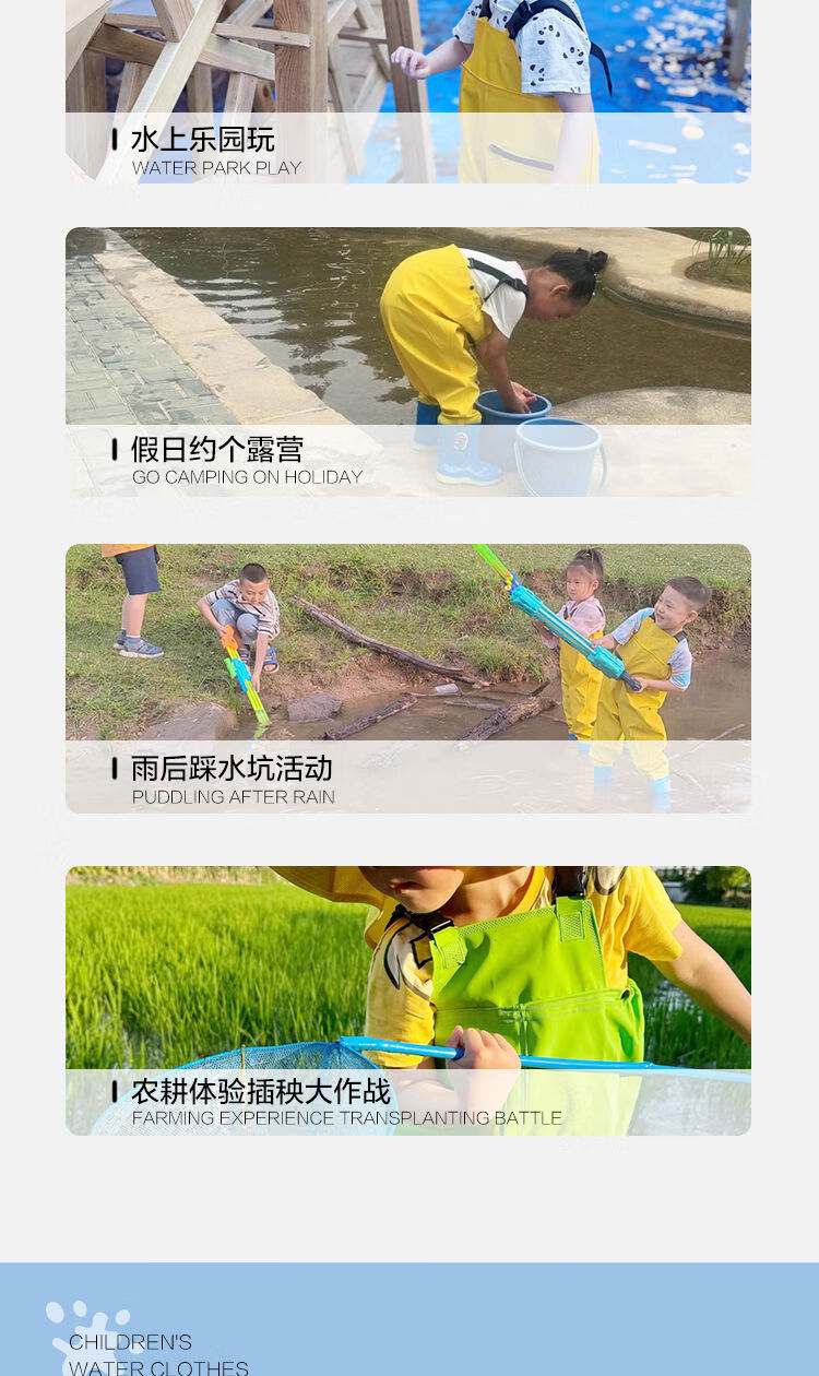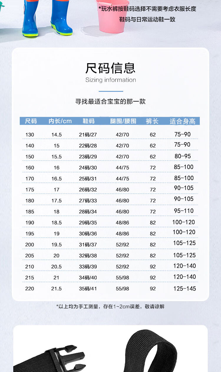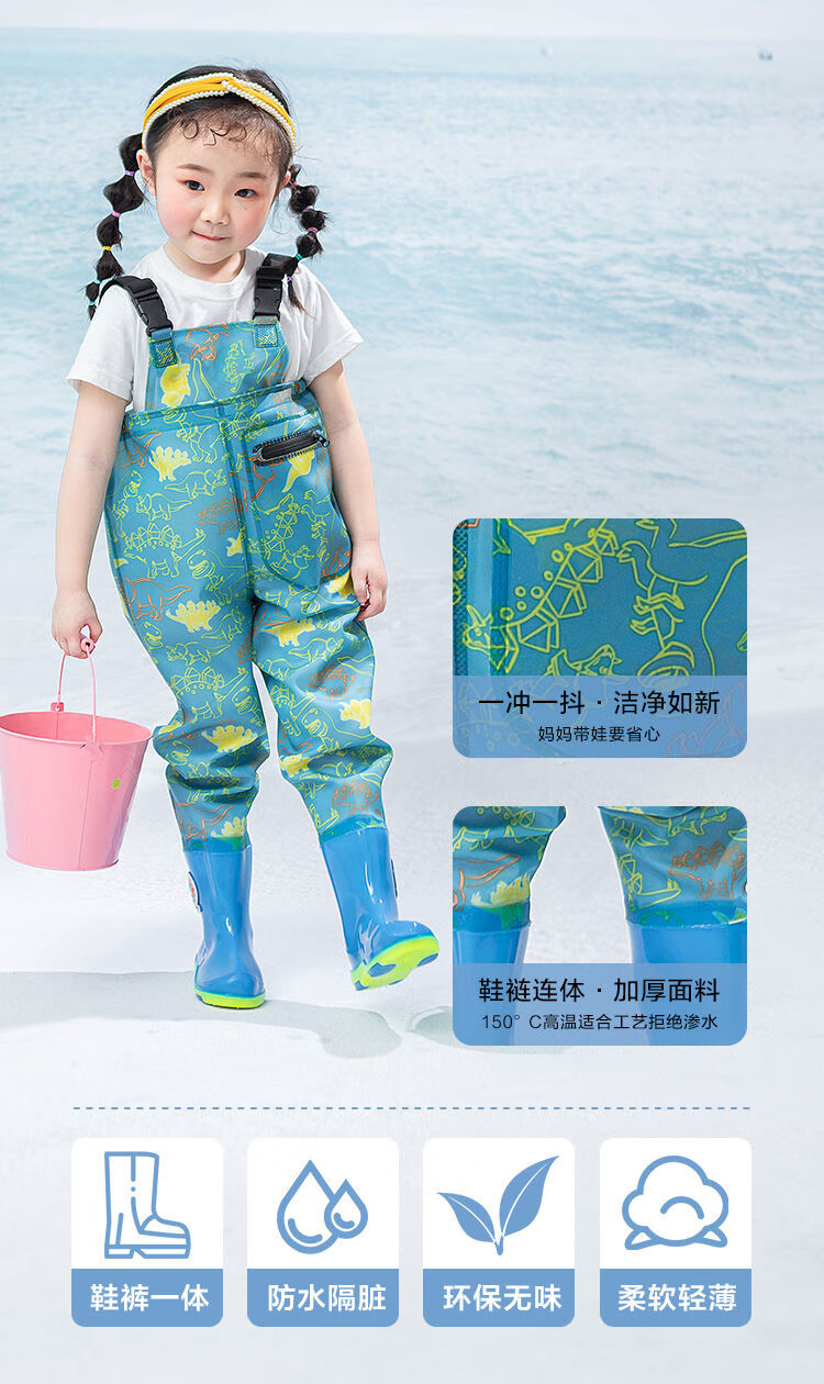 Raincoat for children, children's water play one-piece waders, kindergarten waterproof clothes for catching the sea, men's and women's rain boots for catching fish, children's sky blue overalls pocket style, size 21, size 27, shoe inner length 14 points 5cm