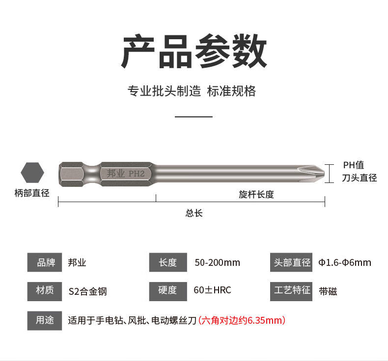 Bangye hardened S2 steel cross bit strong magnetic wind bit electric drill bit electric screwdriver bit extended special set 75mm set of 16 pieces