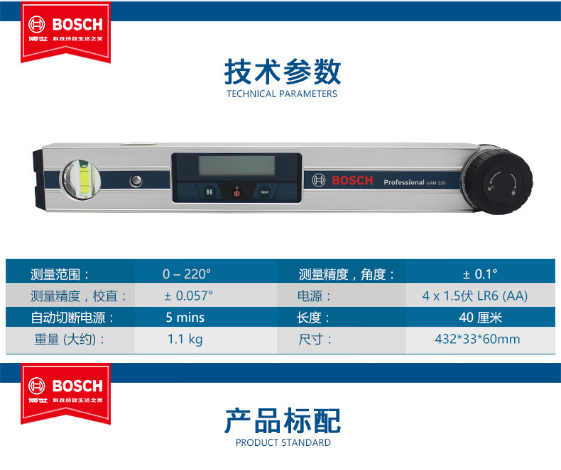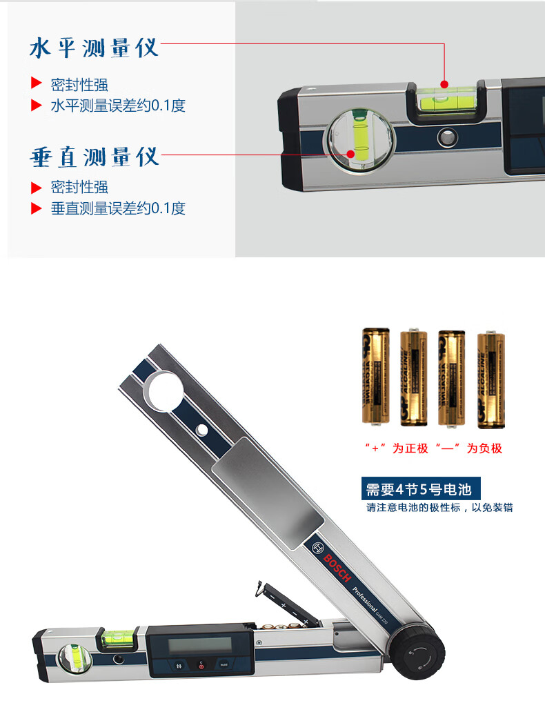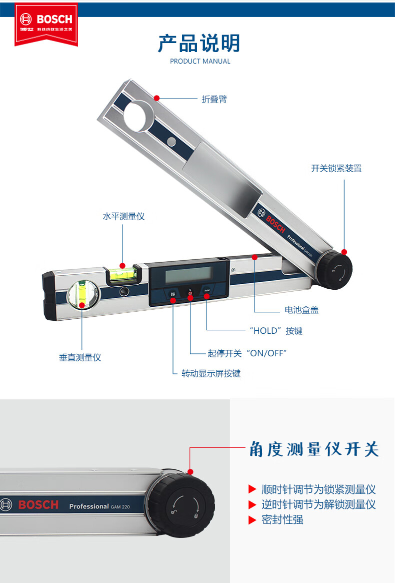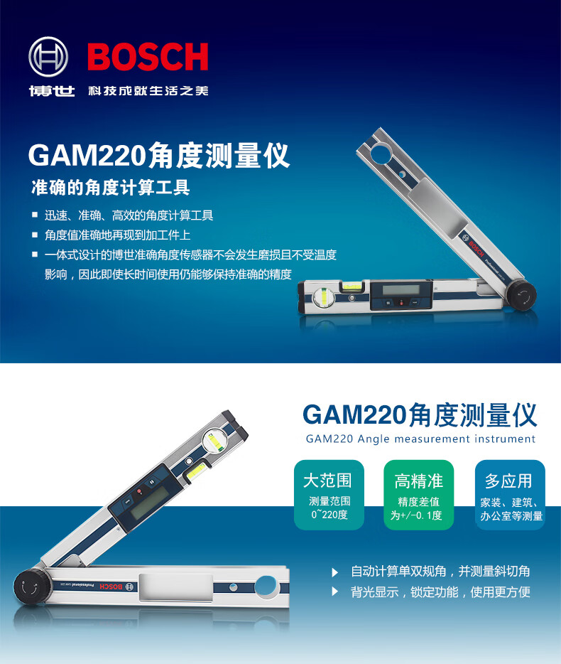 Bosch (BOSCH) angle ruler GAM220 folding aluminum alloy electronic digital display high-precision angle measurer doctor's level ruler GAM220 factory standard