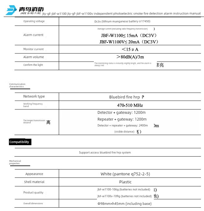 Beida Jade Bird Jty-Gf-Jbf-W1100 independent photoelectric sensor smoke fire detection alarm wireless smoke sensor Jade Bird JTY-GF-JBF-W1100_wireless smoke sensor