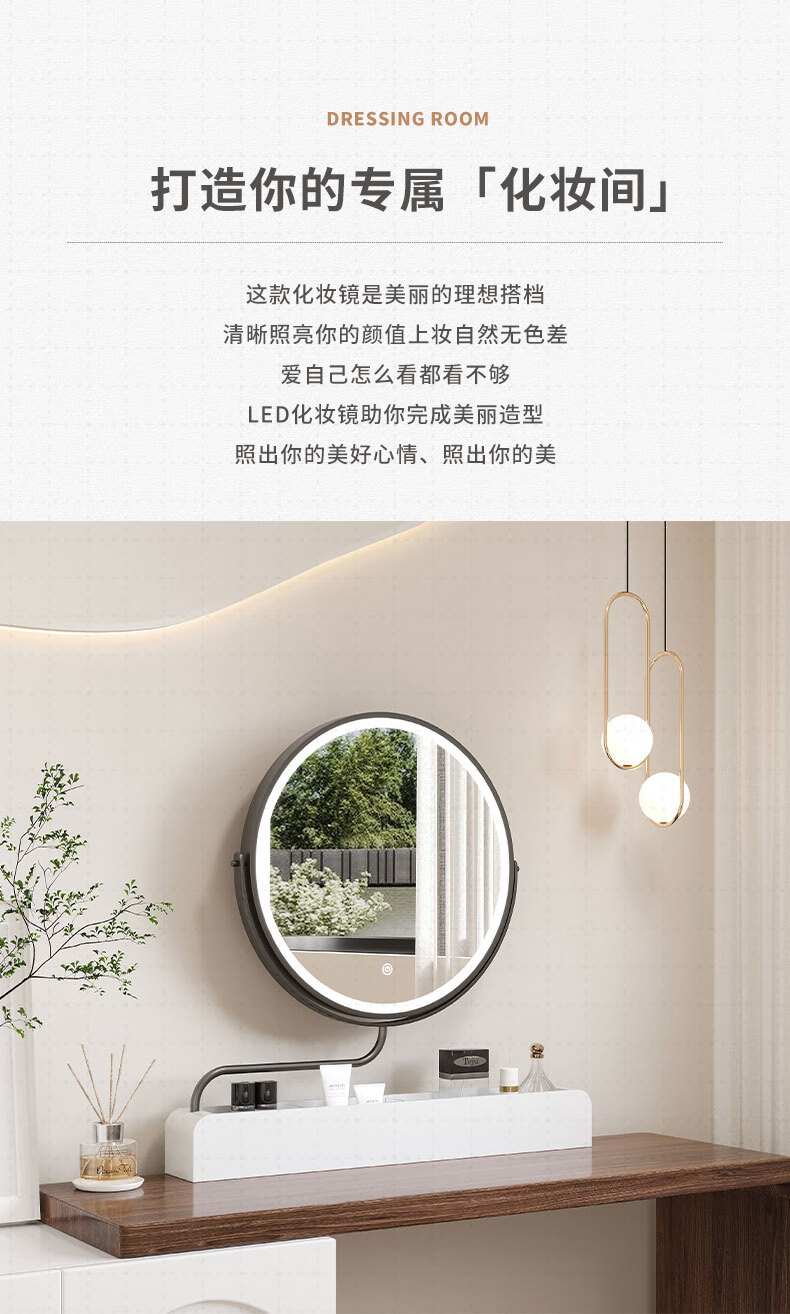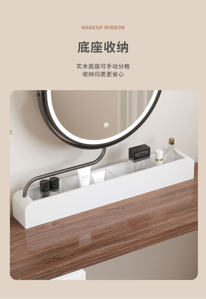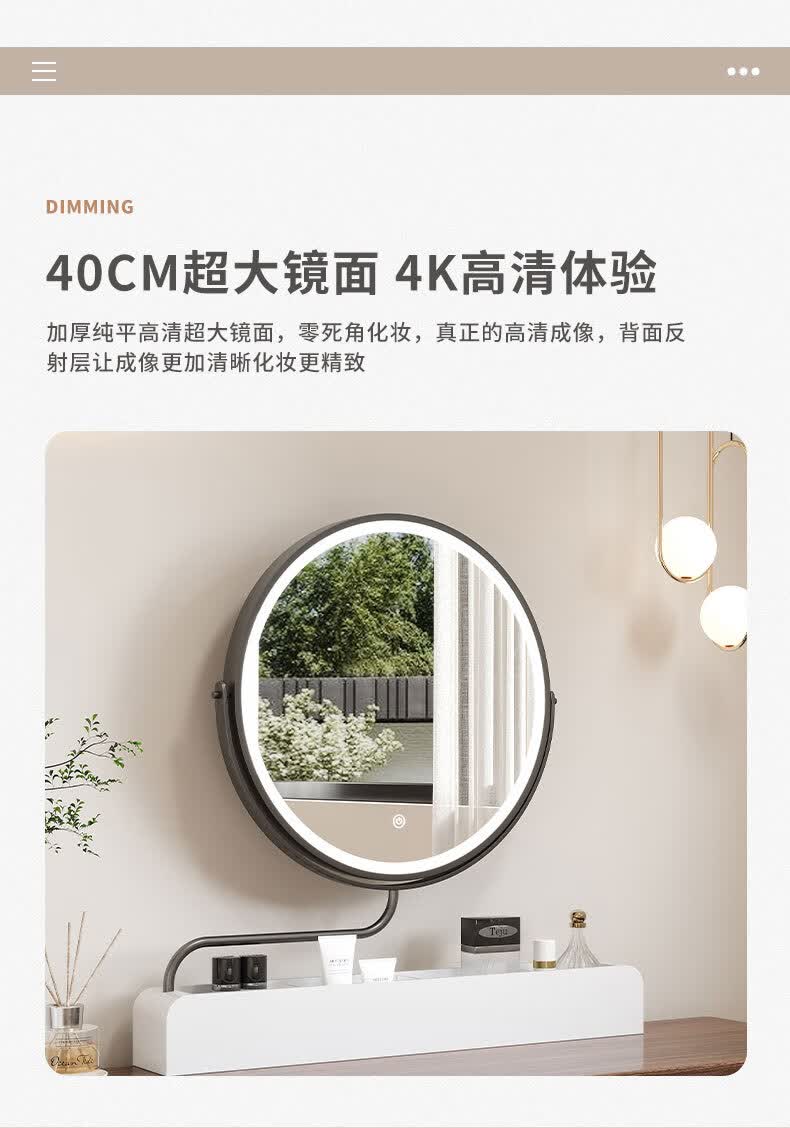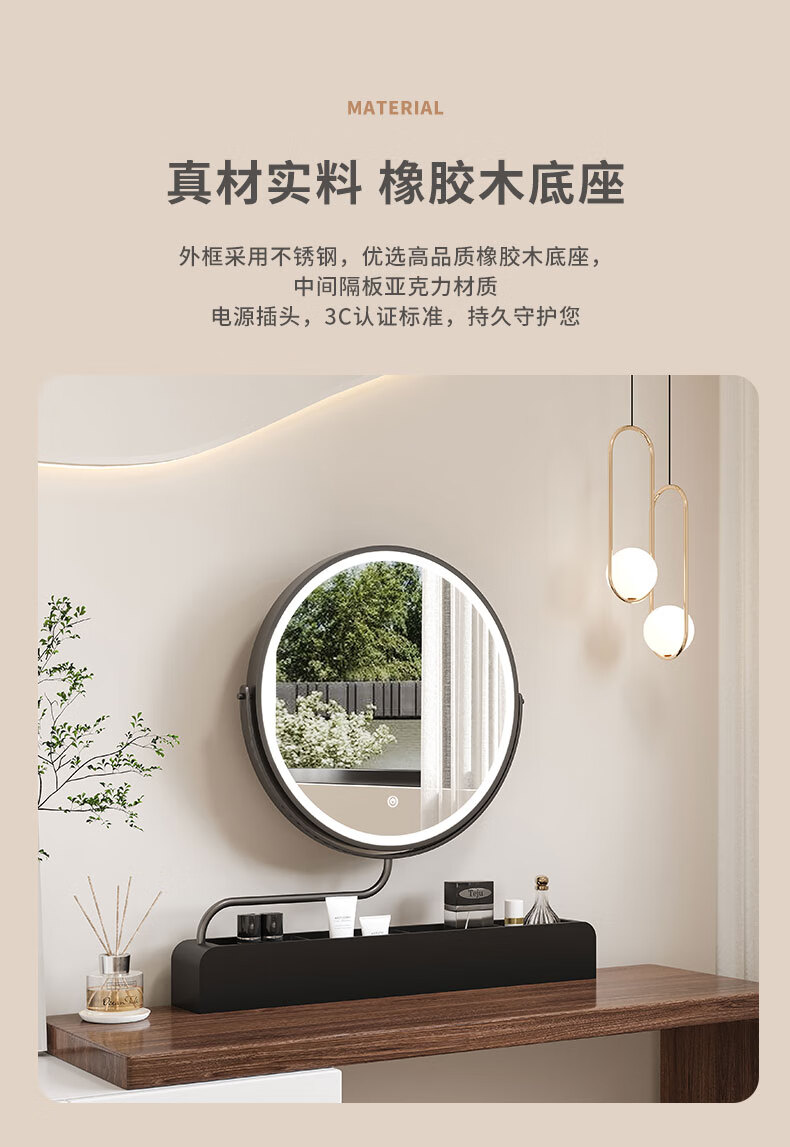 LED makeup mirror smart stretchable flip rotating with light desktop storage storage desktop makeup table mirror solid wood color plug-in + 3-color LED light