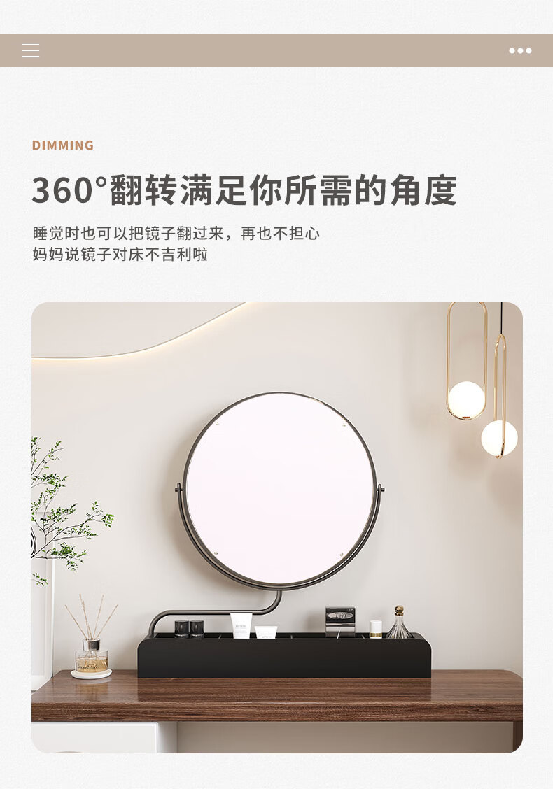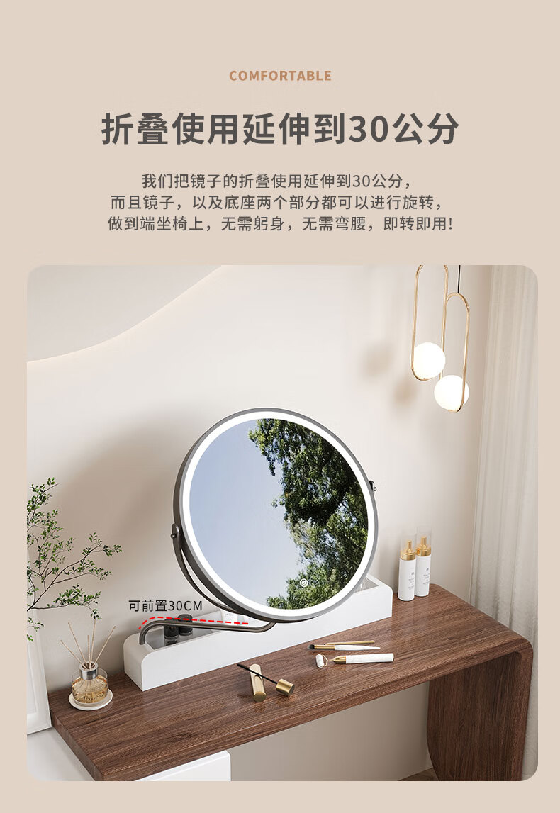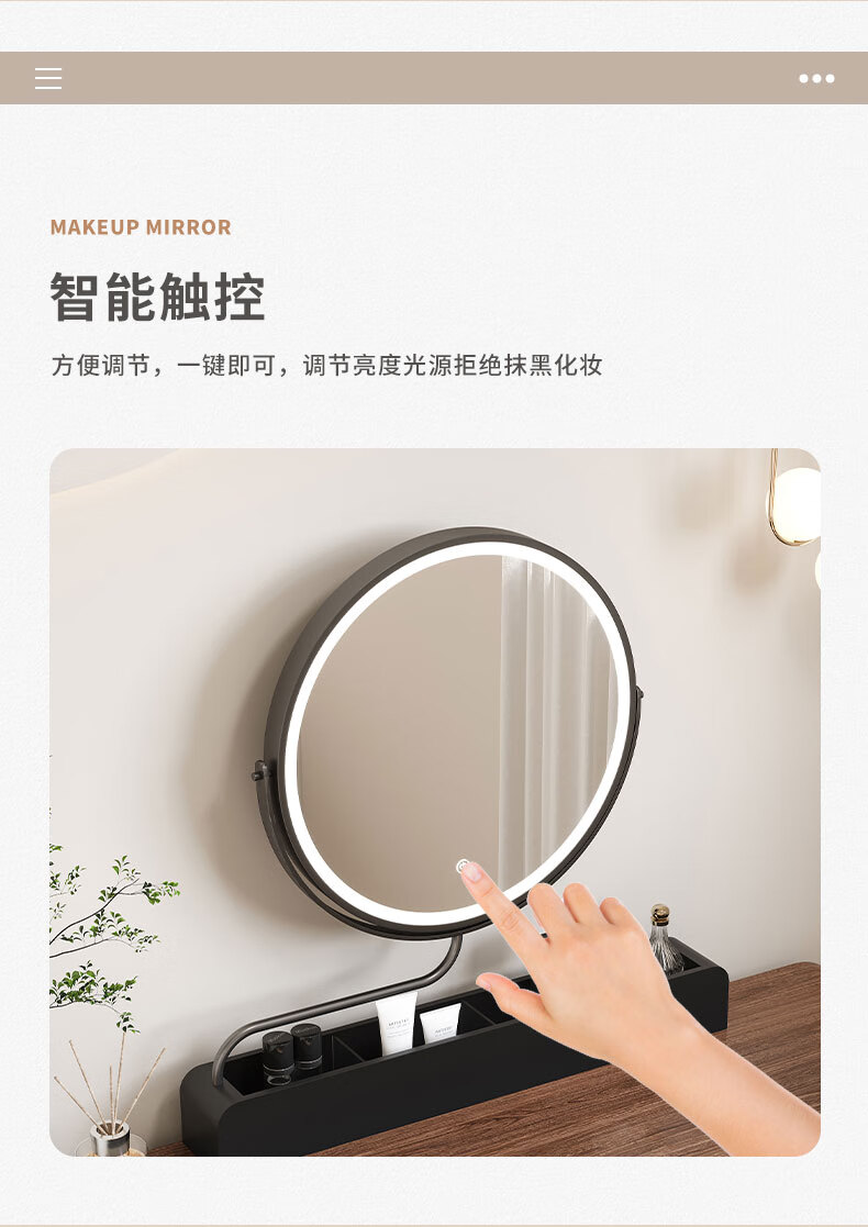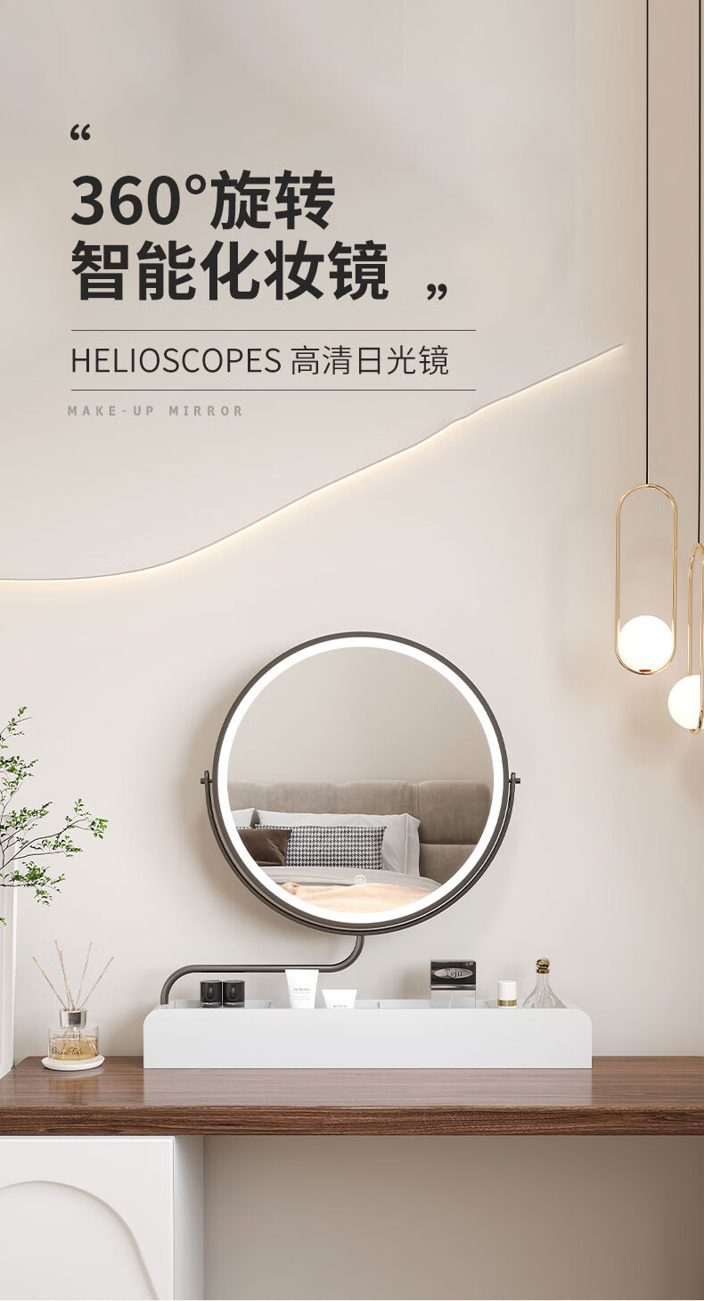 LED makeup mirror smart stretchable flip rotating with light desktop storage storage desktop makeup table mirror solid wood color plug-in + 3-color LED light
