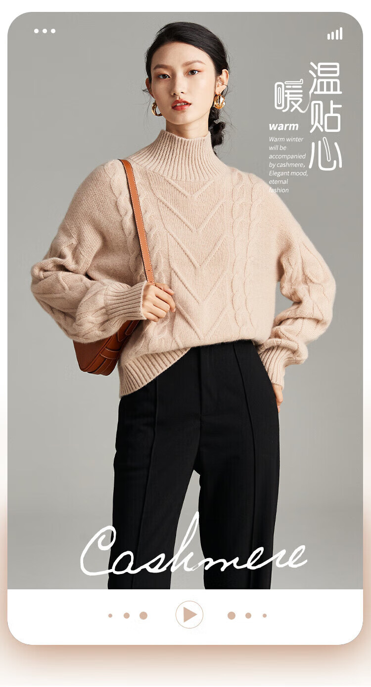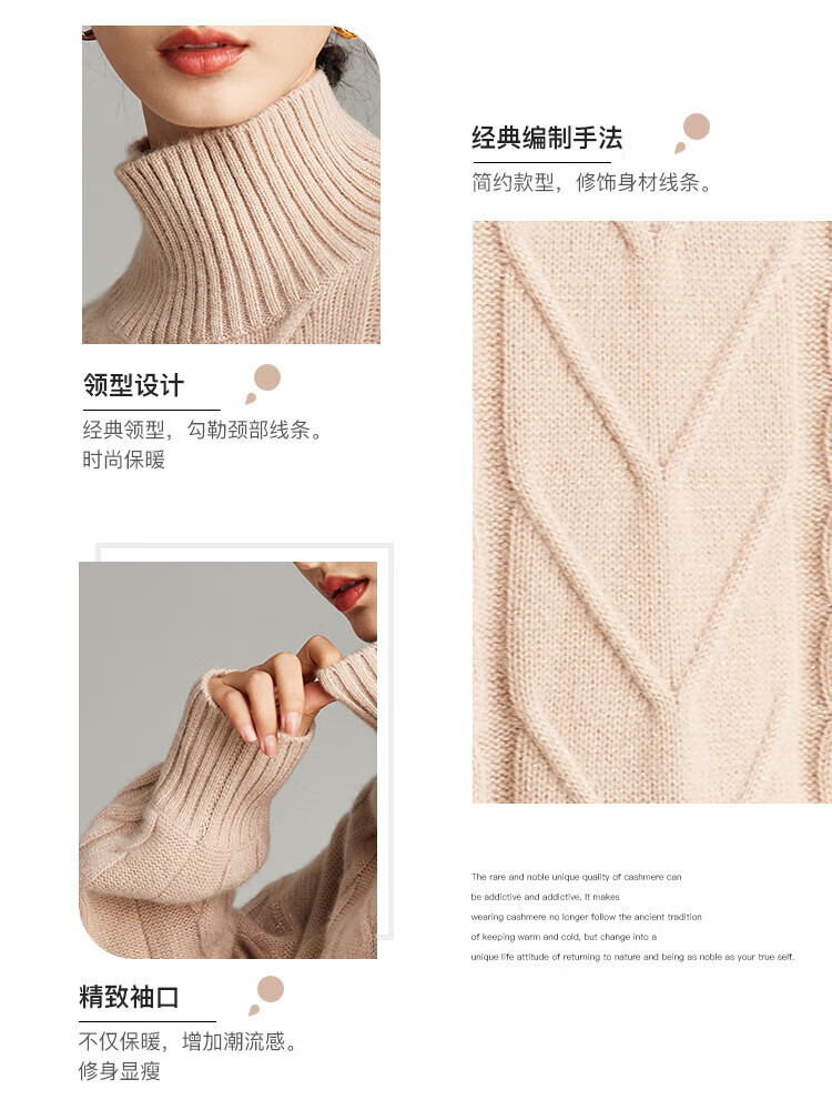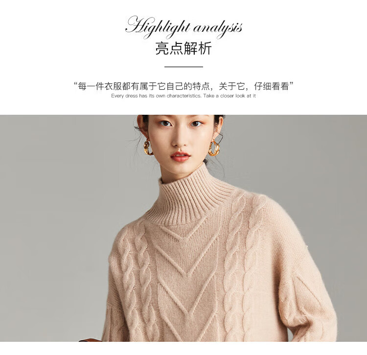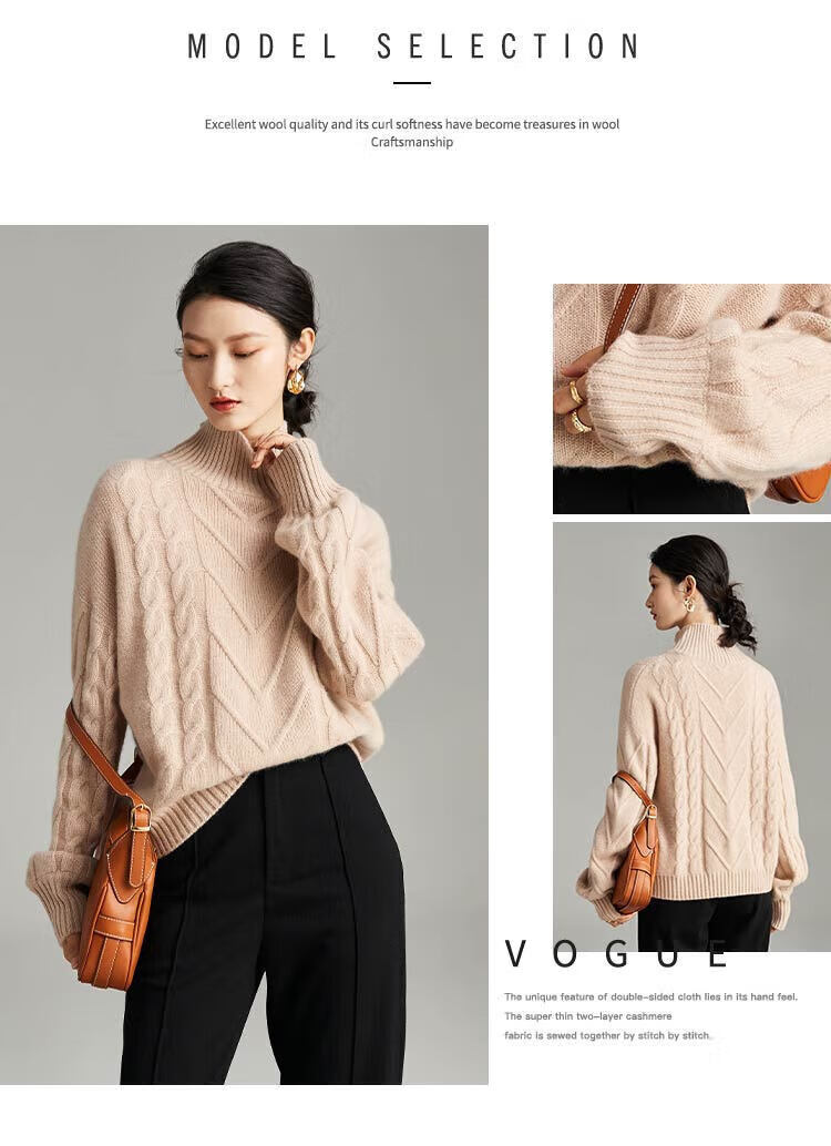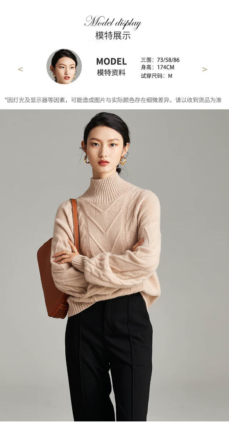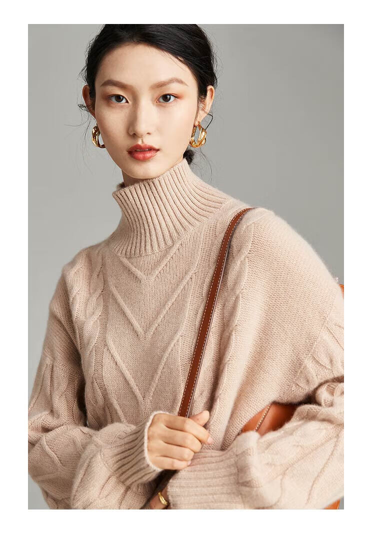 PALUOPO half turtleneck cable knitted sweater for women winter new loose casual warm pullover knitted cashmere sweater for women ET21322R light rice XL 170/110