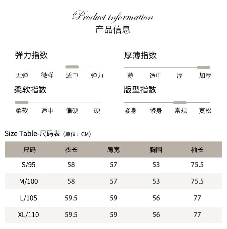 China (cm) 160-165/84-86 165-170 / 88-90 167-172 / 92-96 168-173 / 98-102 170-176 / 106-110