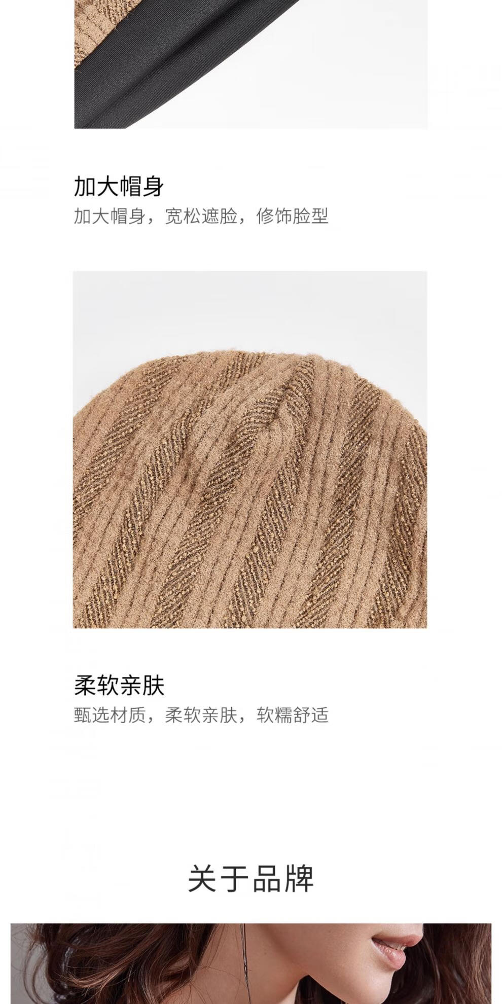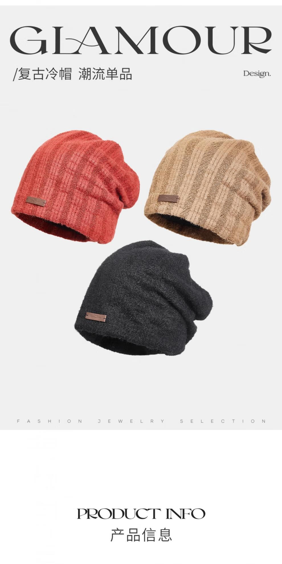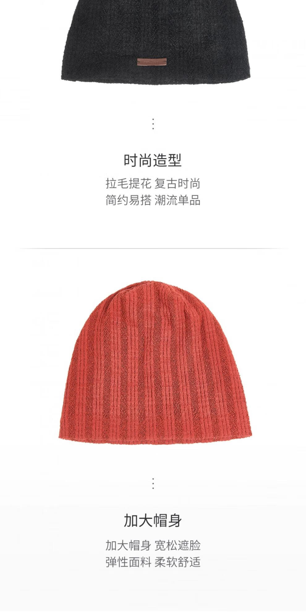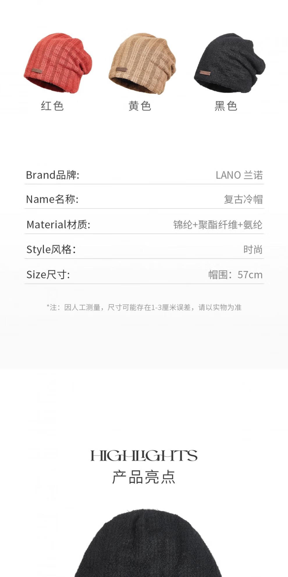 Lannuo wool knitted cold hat for women 2025 autumn and winter new style big head circumference showing face small postpartum confinement hat pullover hat black M (56-58cm)
