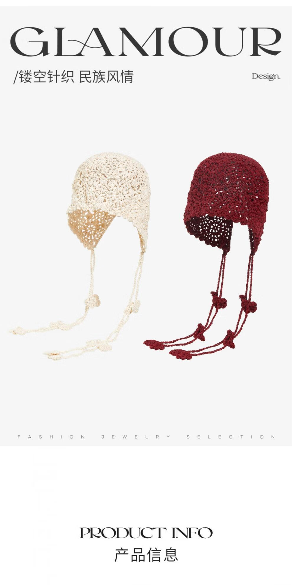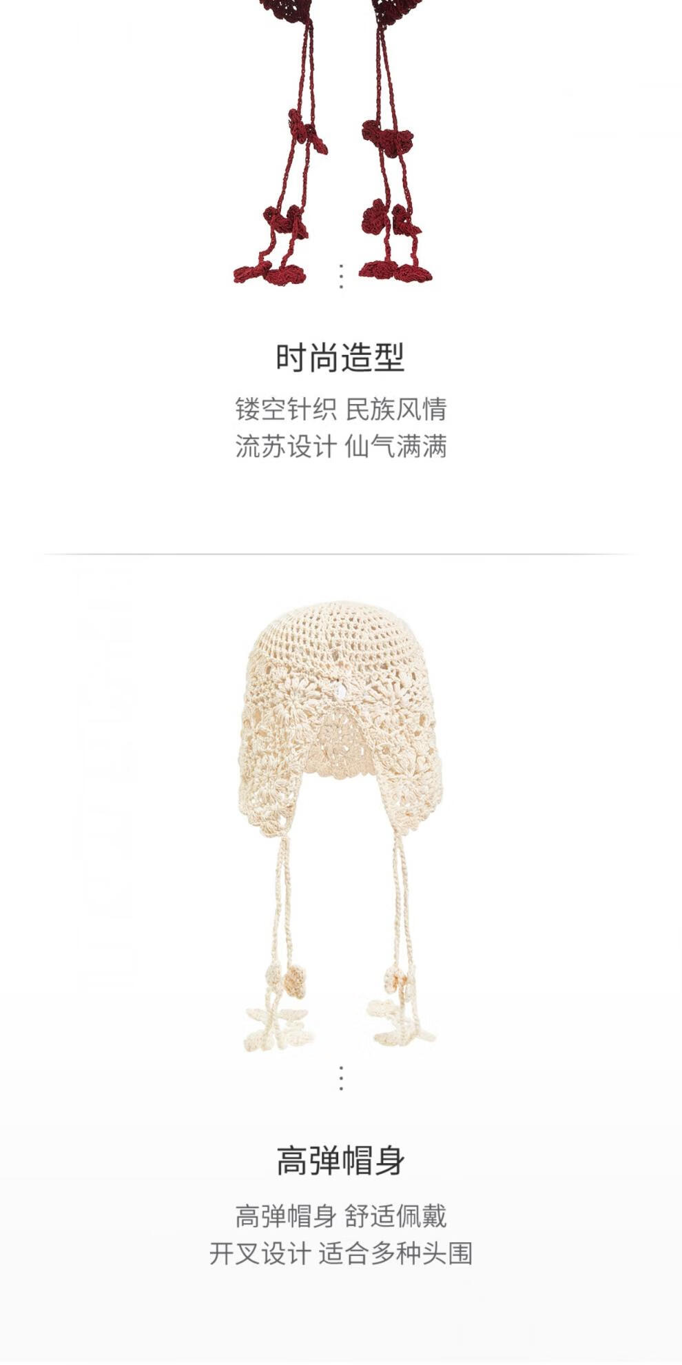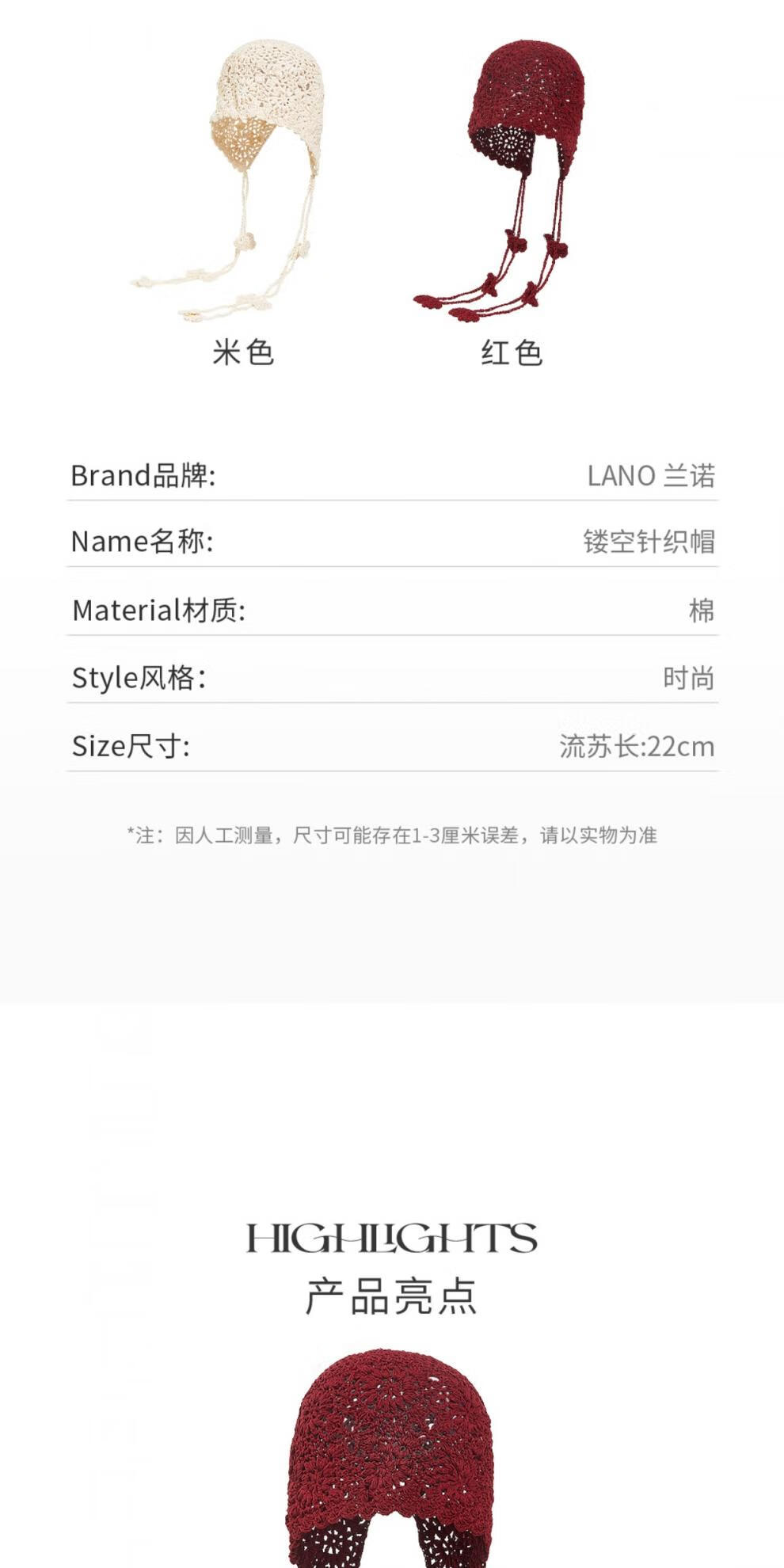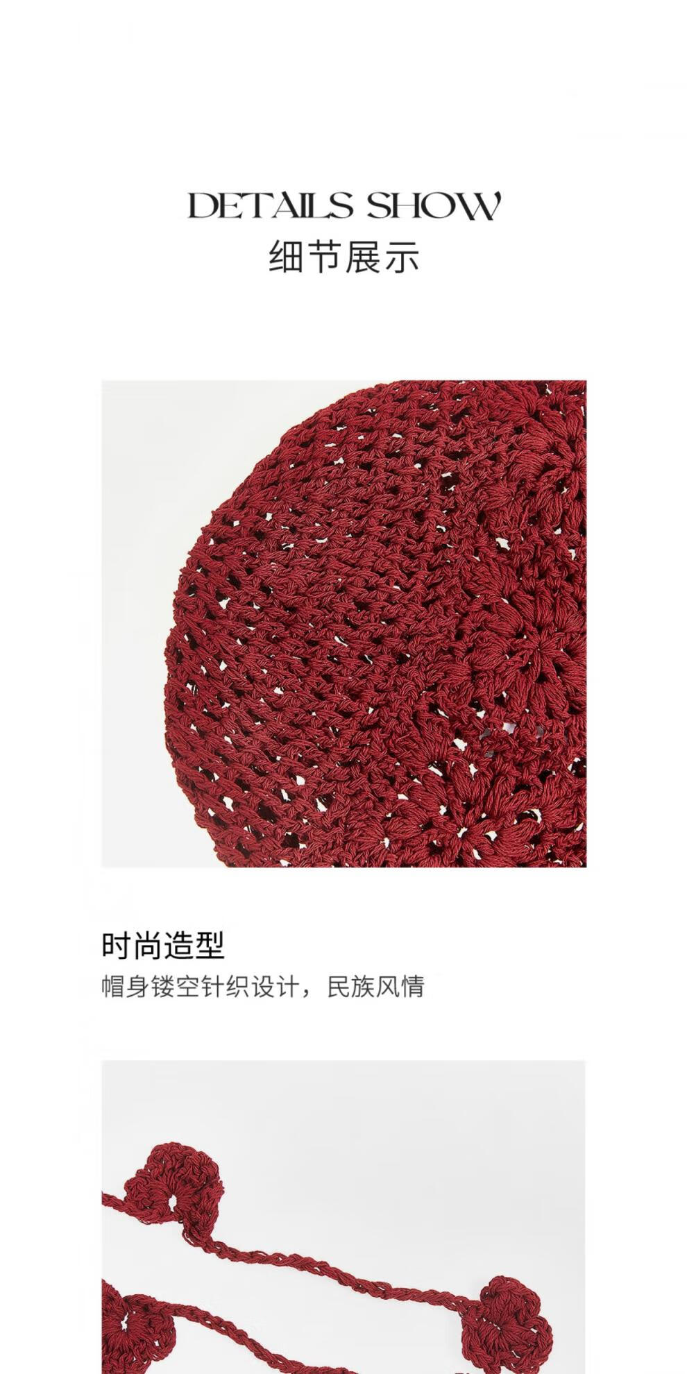 Lannuo Hollow Knitted Hat Women's Long Tassel Pullover Hat 2025 Autumn New Big Head Circumference Showing Face Small Hat Red M(56-58cm)