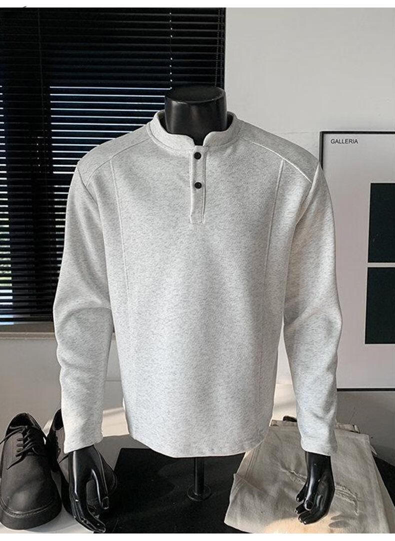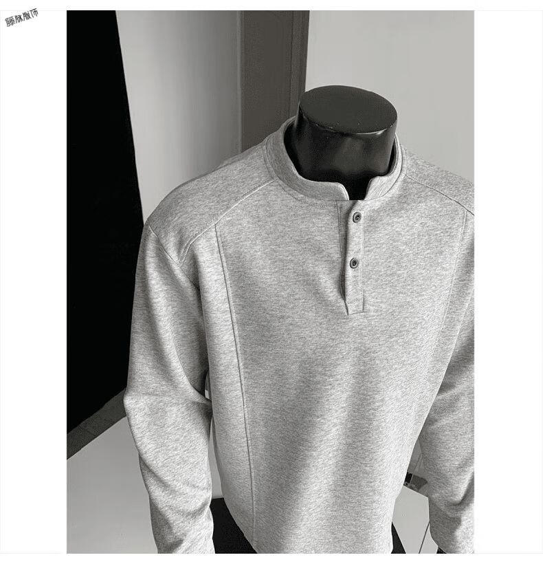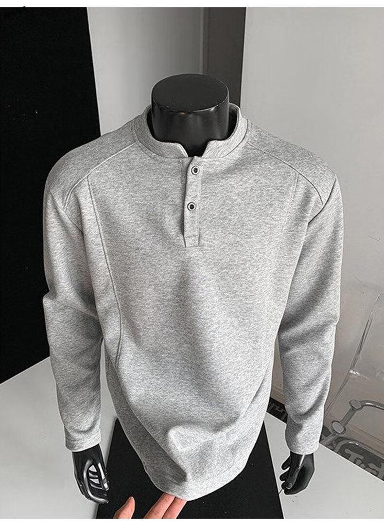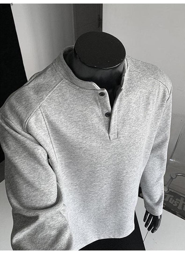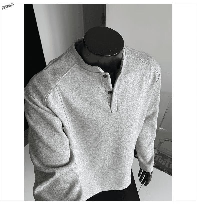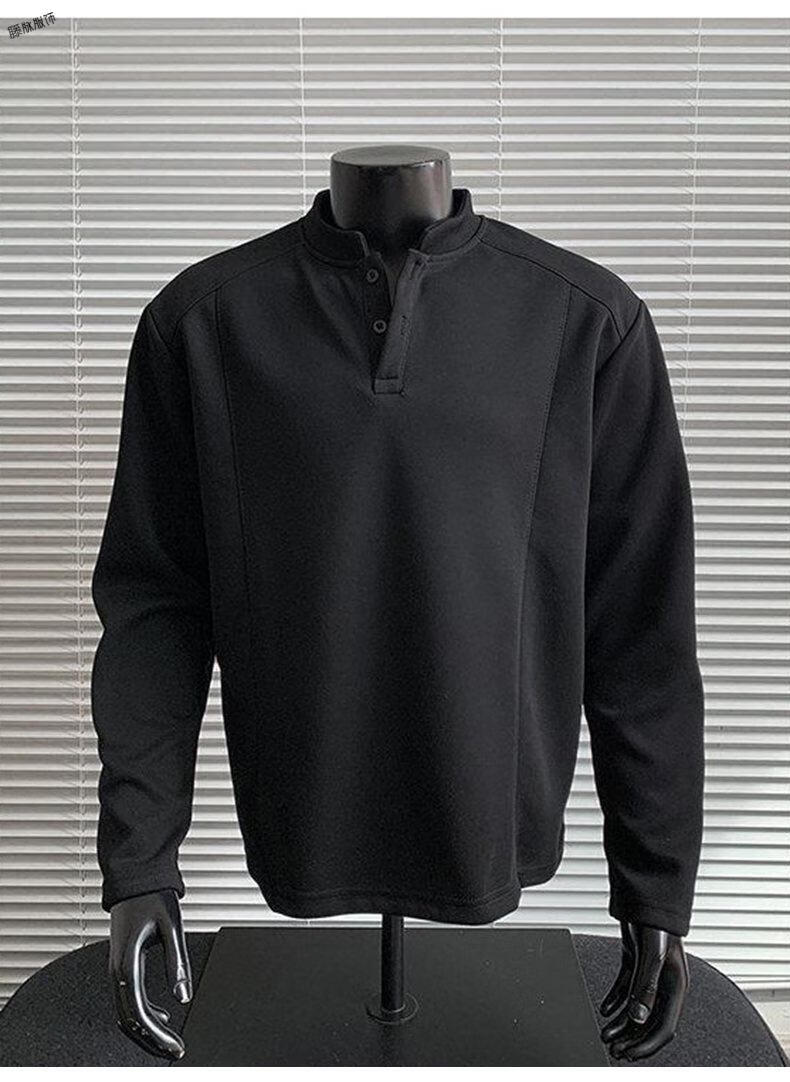 Yuexiang American Henry Collar Velvet Sweater Men's Winter Trendy Brand Heavy Casual Loose High Street Handsome POLO Versatile Shirt Men Black M
