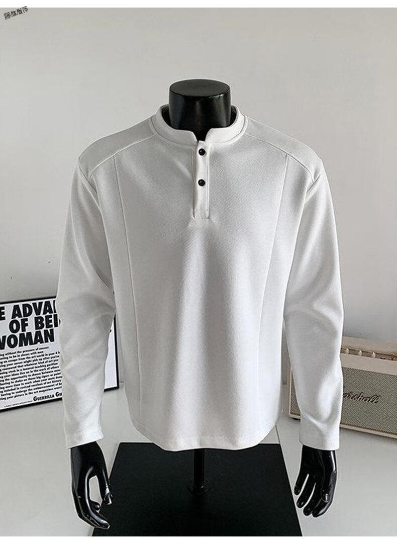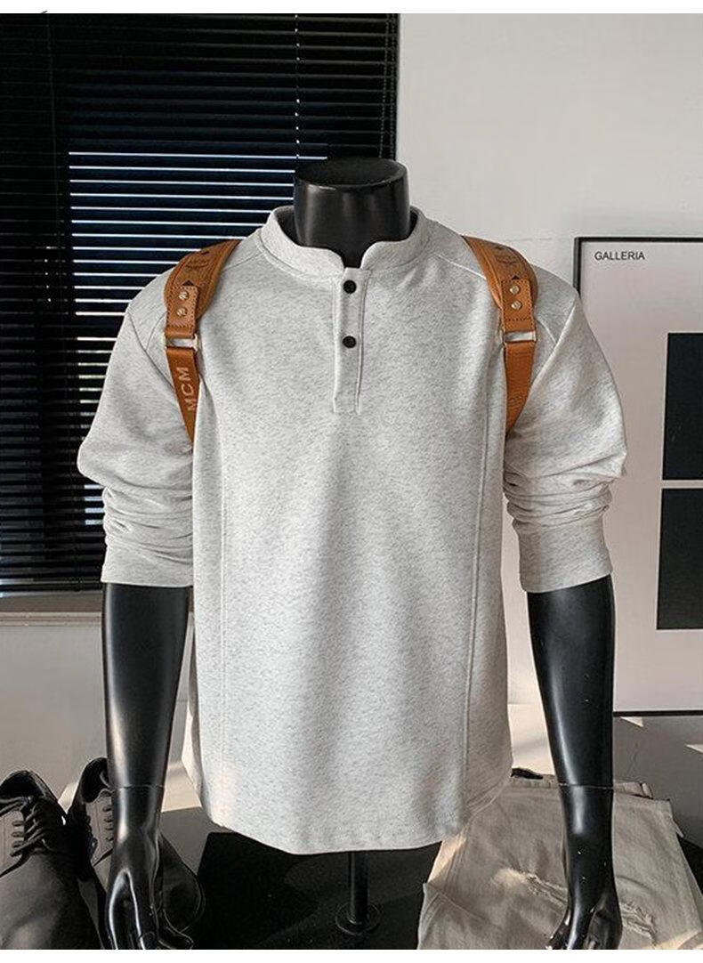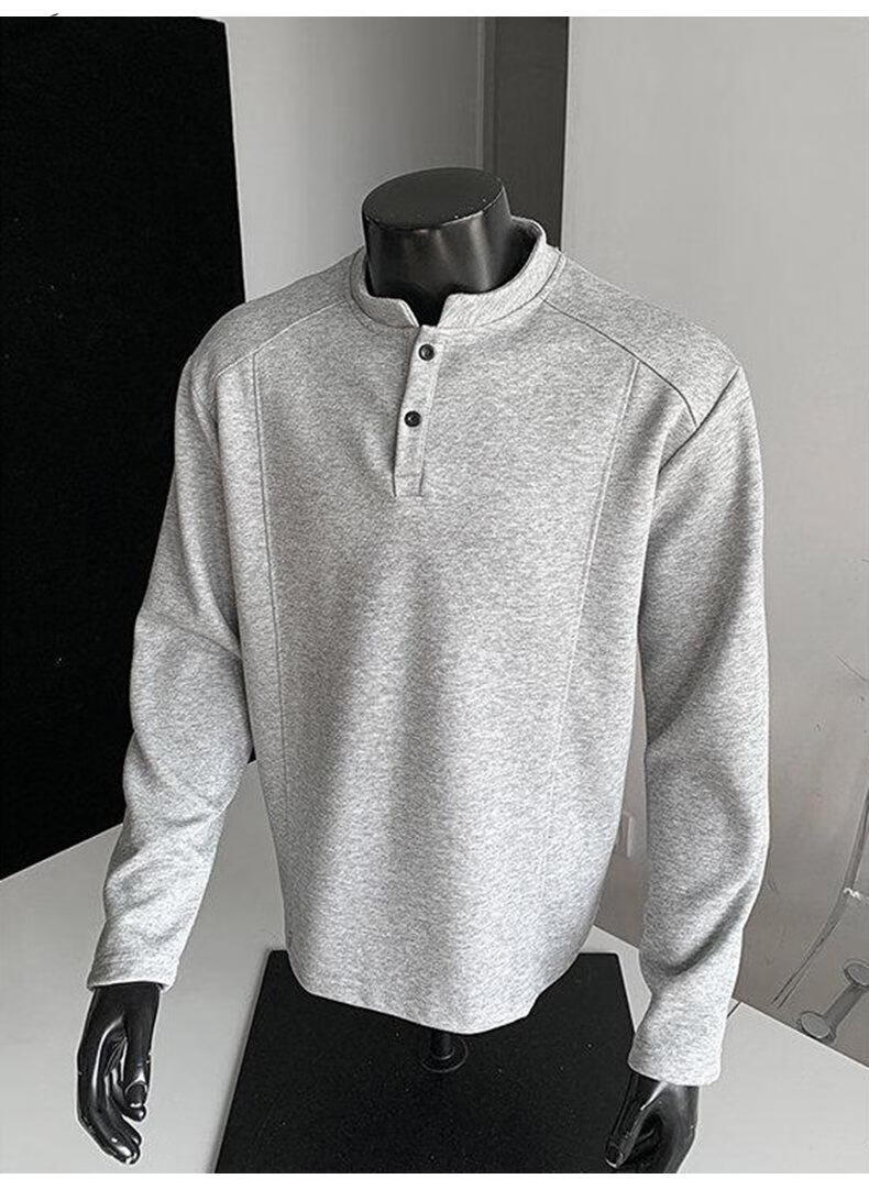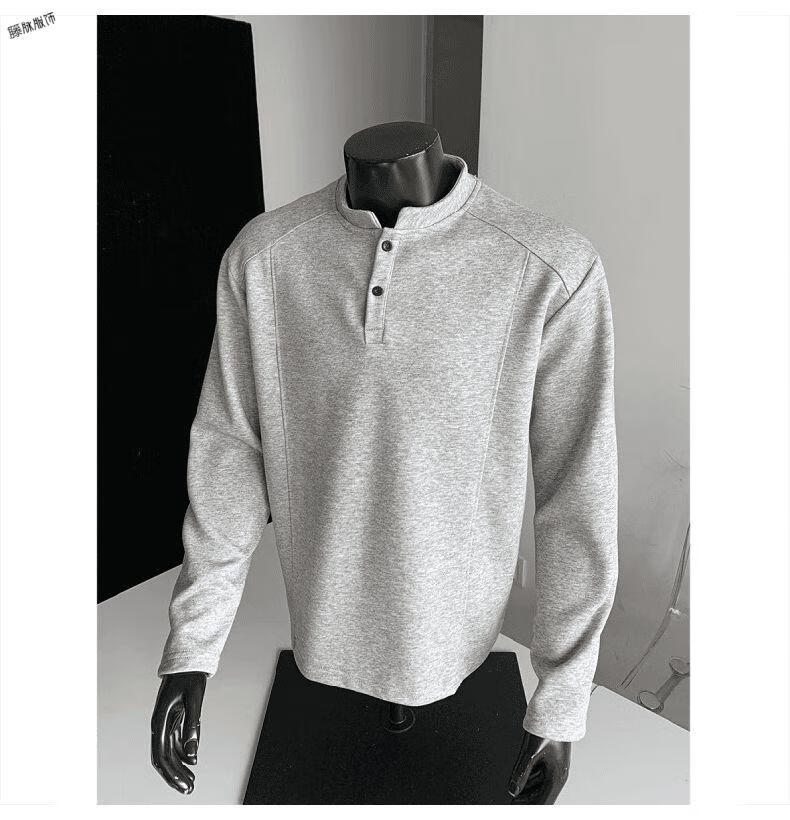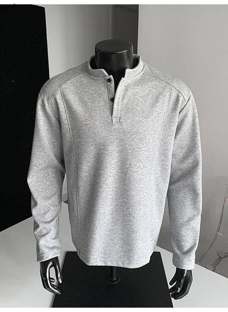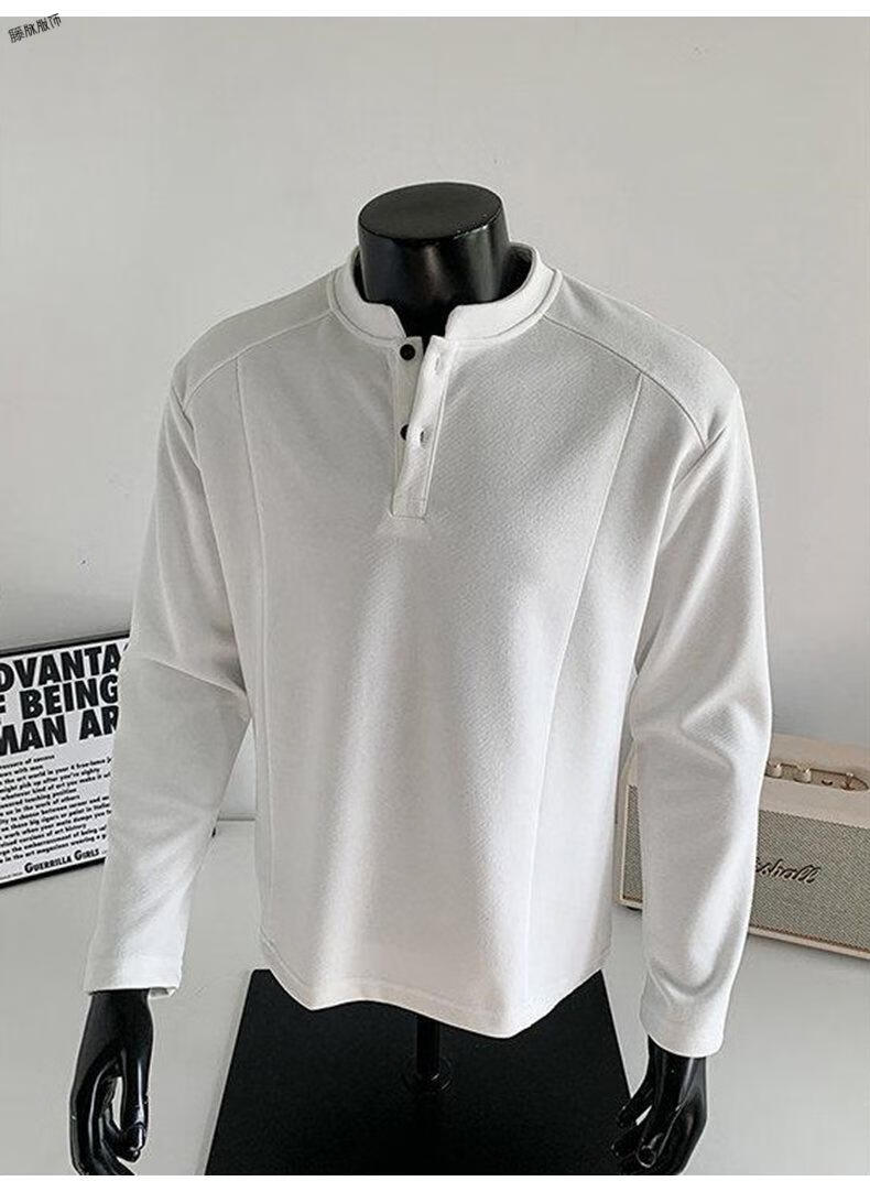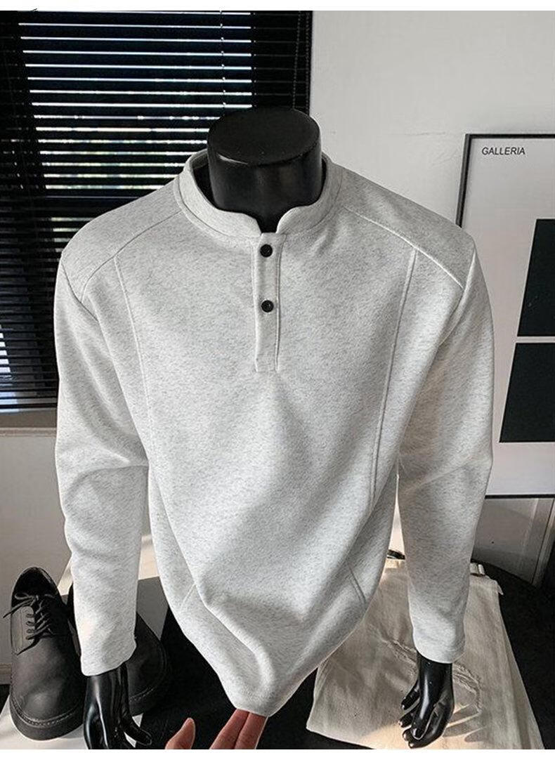 Yuexiang American Henry Collar Velvet Sweater Men's Winter Trendy Brand Heavy Casual Loose High Street Handsome POLO Versatile Shirt Men Black M