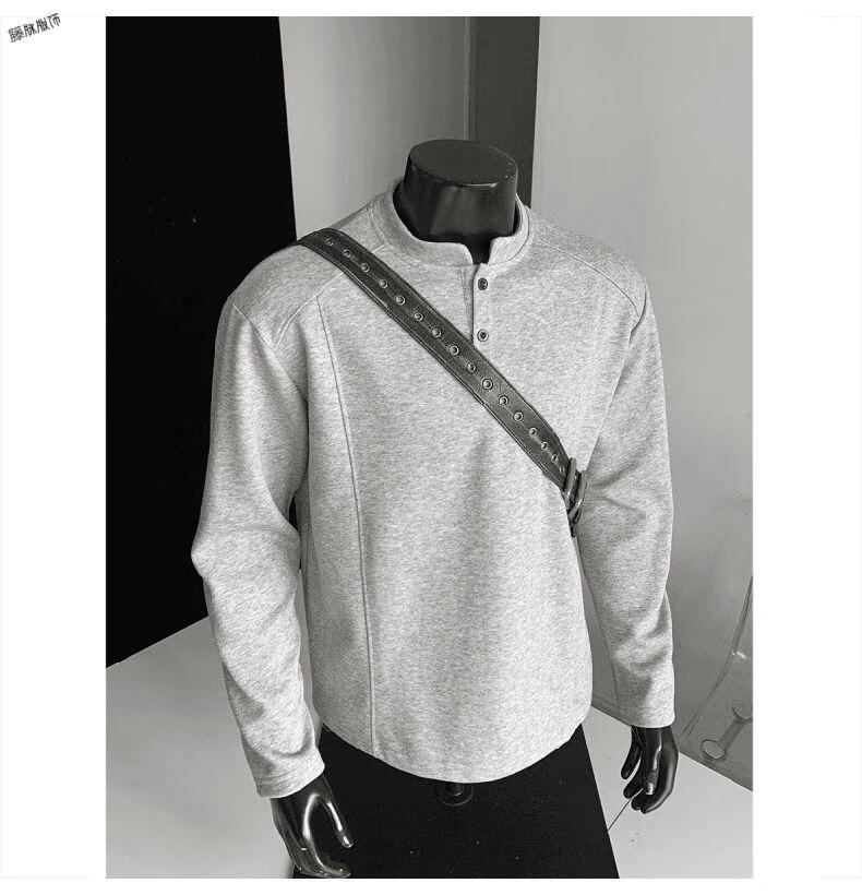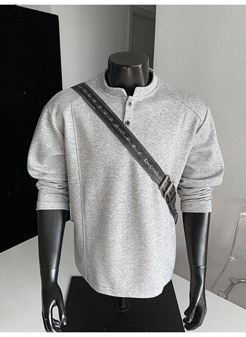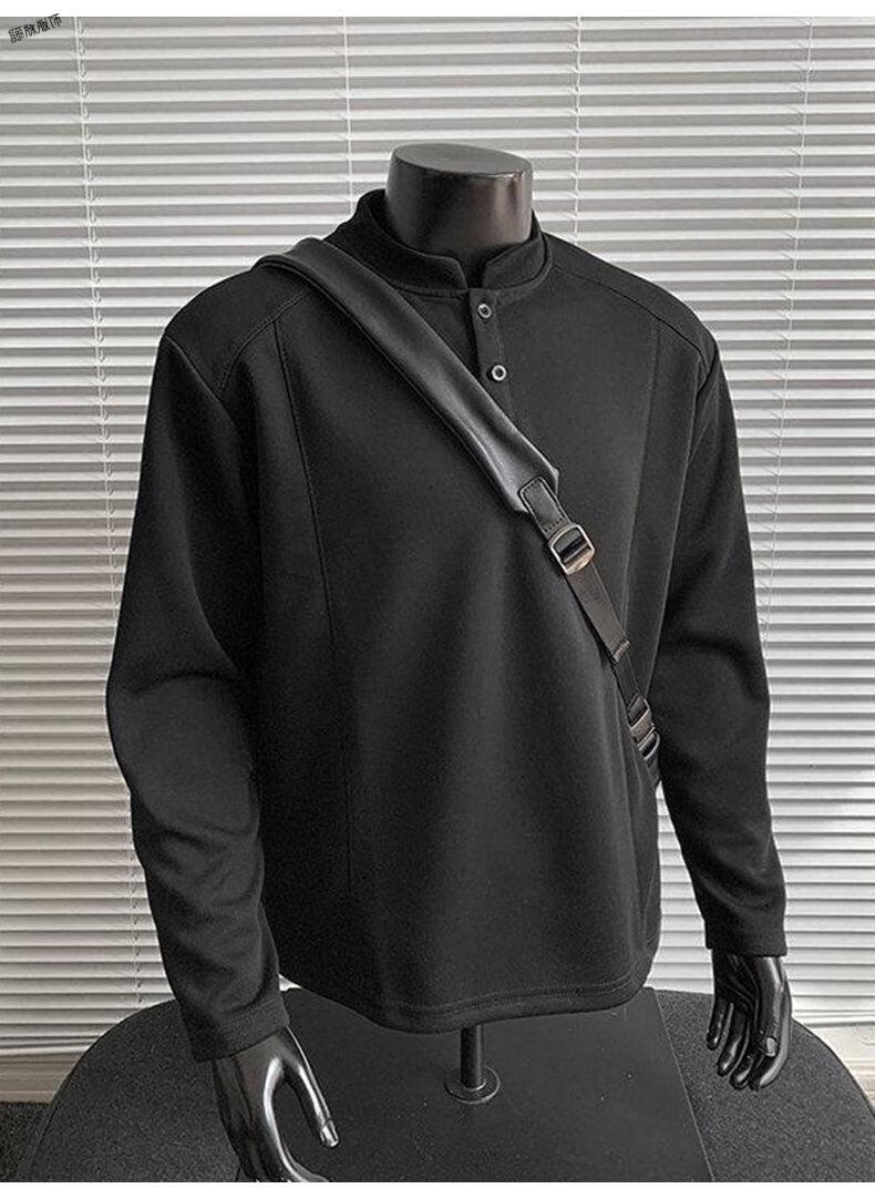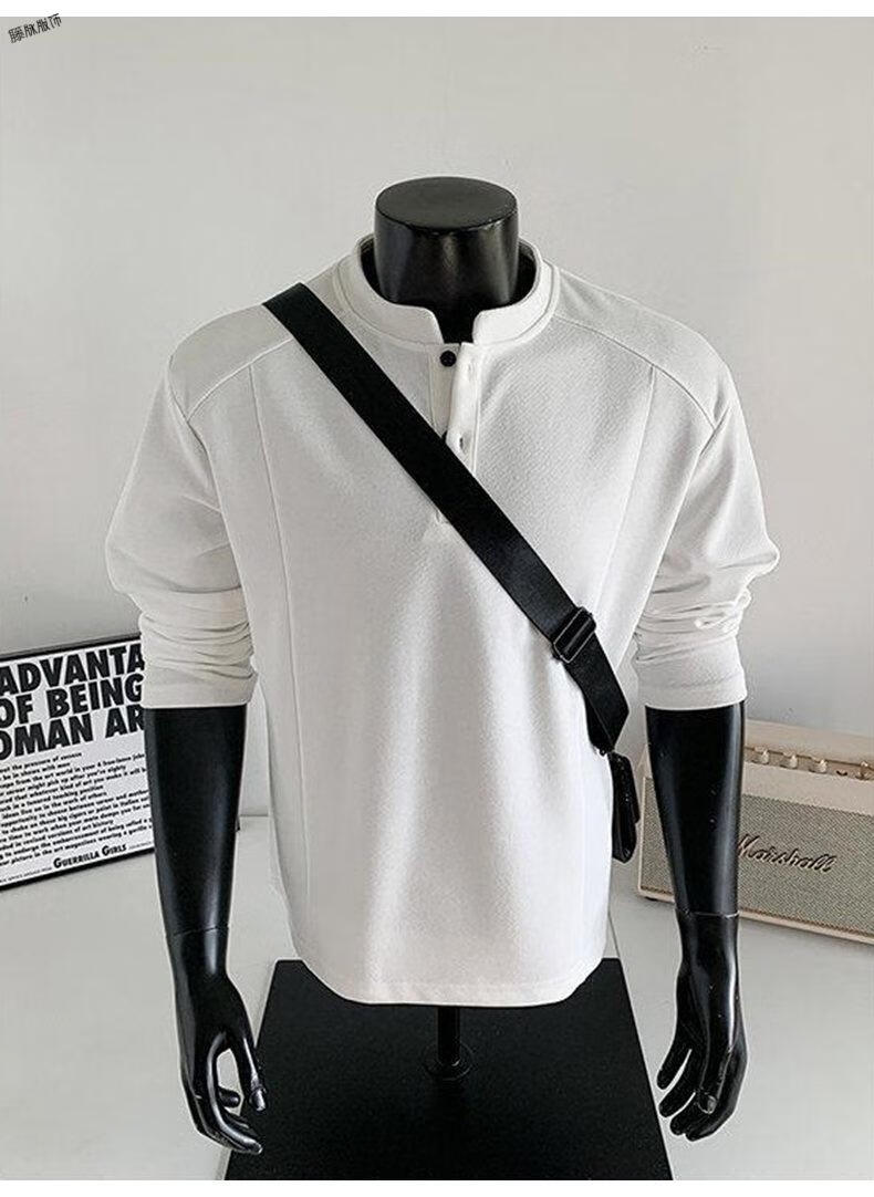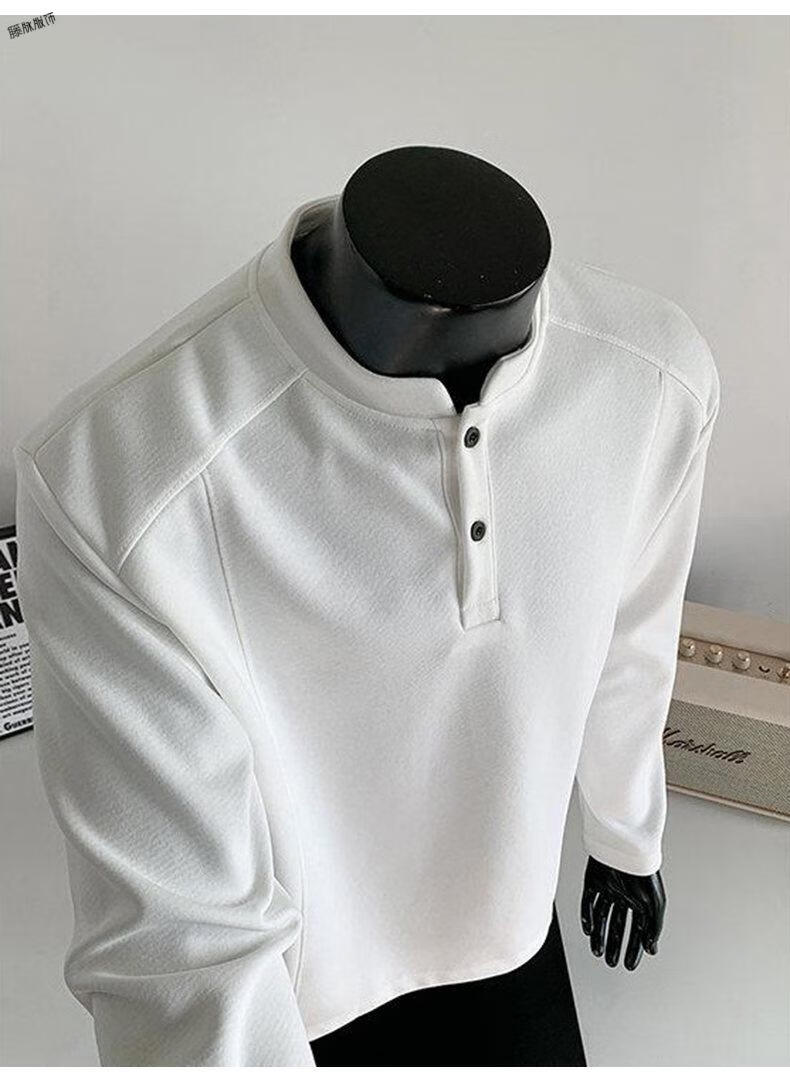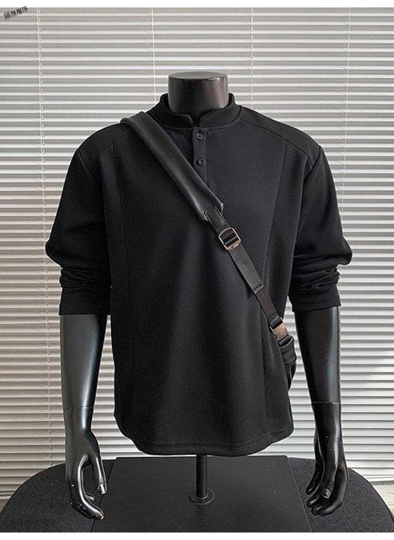 Yuexiang American Henry Collar Velvet Sweater Men's Winter Trendy Brand Heavy Casual Loose High Street Handsome POLO Versatile Shirt Men Black M