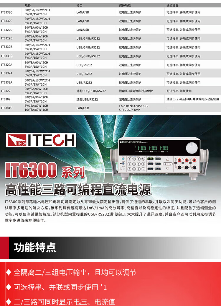 ITECH DC power supply IT63303 programmable three-way DC regulated power supply IT6332C (parameters are the same as 6332A with LAN port)