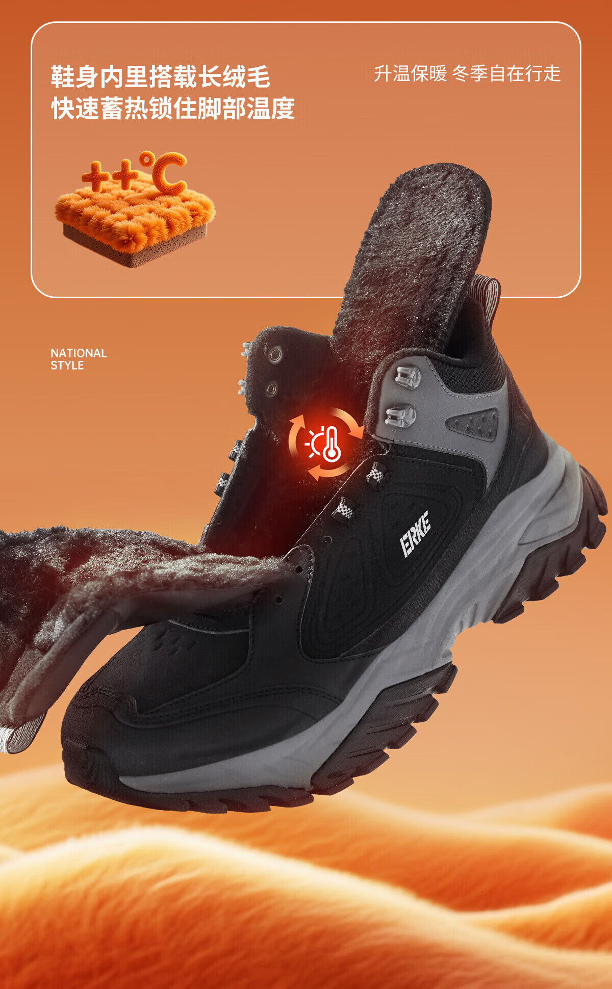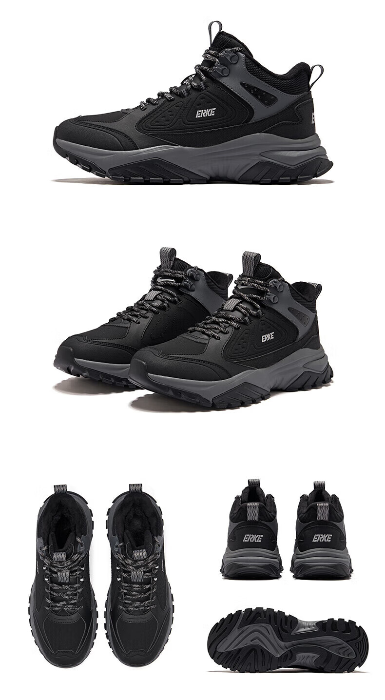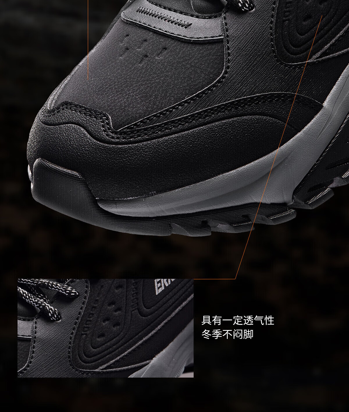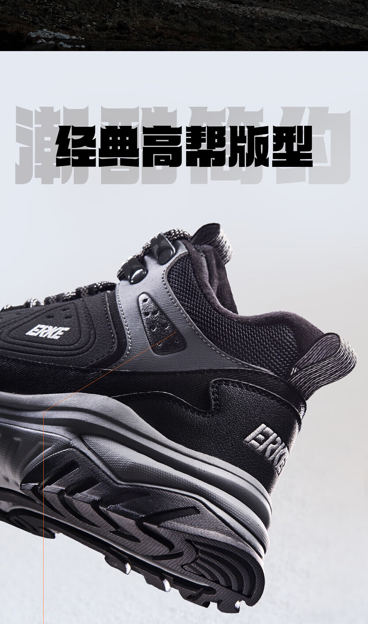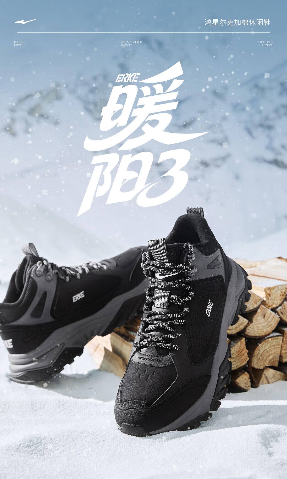 Hongxing Erke (ERKE) (ERKE) Nuanyang 3 men's shoes plus velvet casual shoes high-top winter new thickened warm sports shoes snow boots black/carbon gray (thick plus velvet - cold resistance and warmth) 42 ready for delivery
