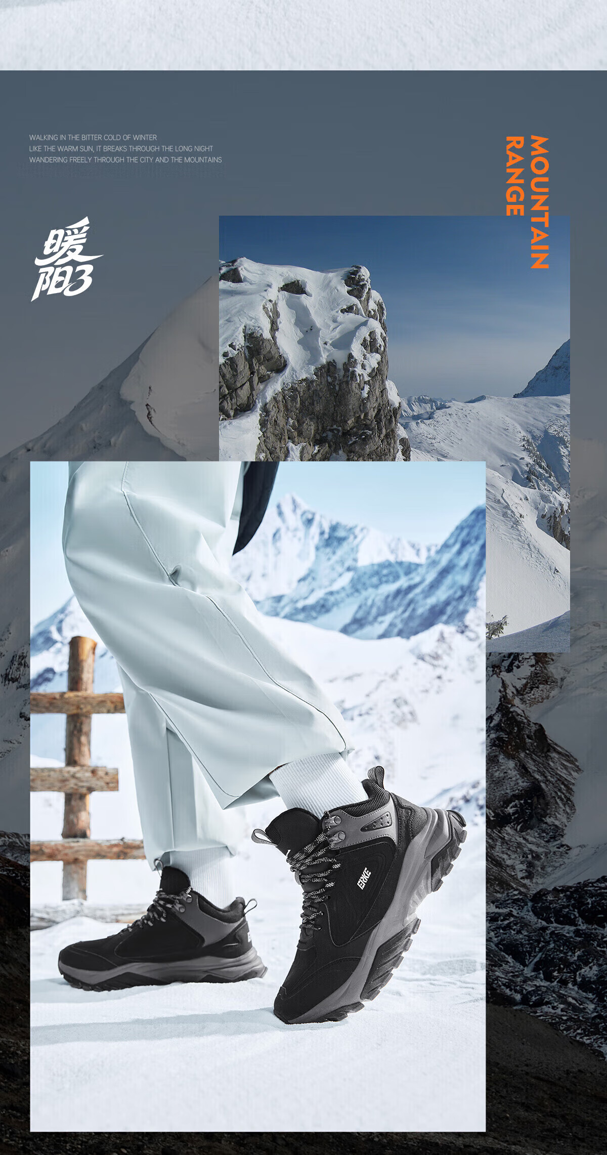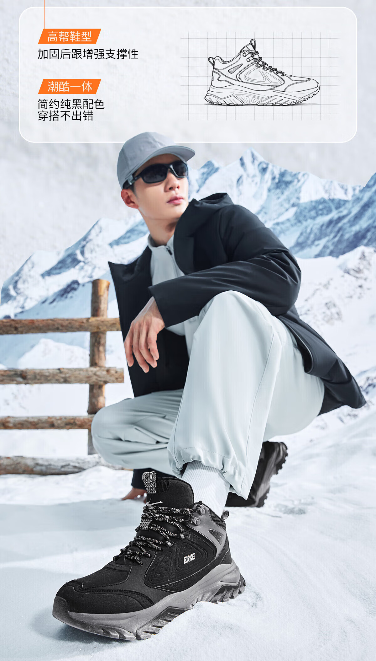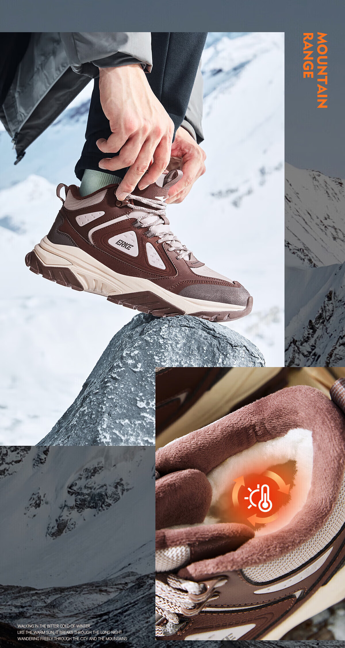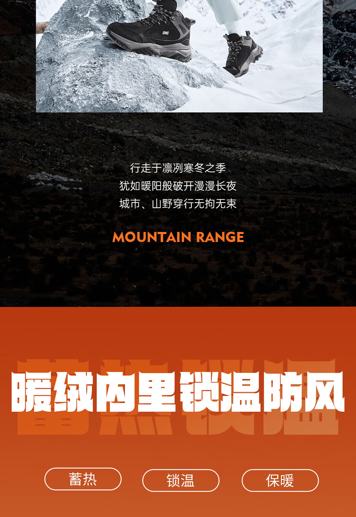 Hongxing Erke (ERKE) (ERKE) Nuanyang 3 men's shoes plus velvet casual shoes high-top winter new thickened warm sports shoes snow boots black/carbon gray (thick plus velvet - cold resistance and warmth) 42 ready for delivery