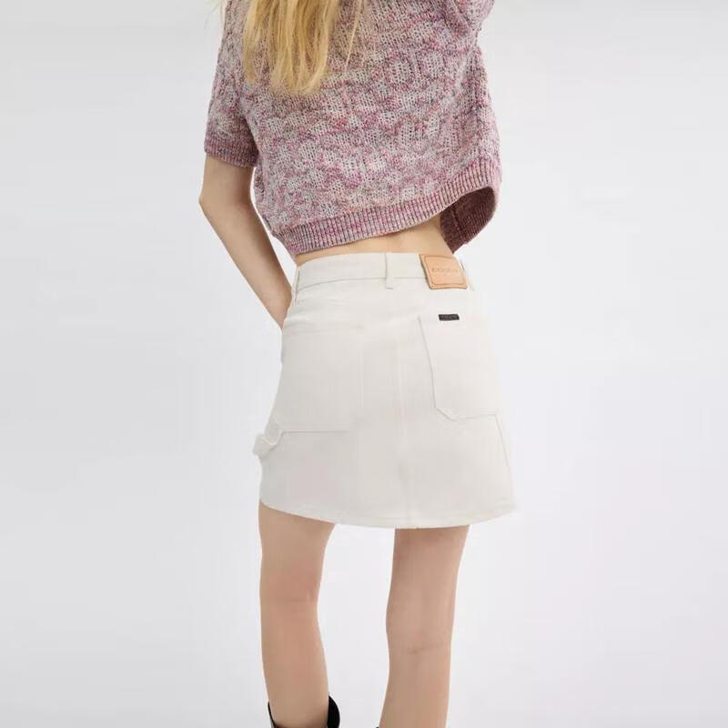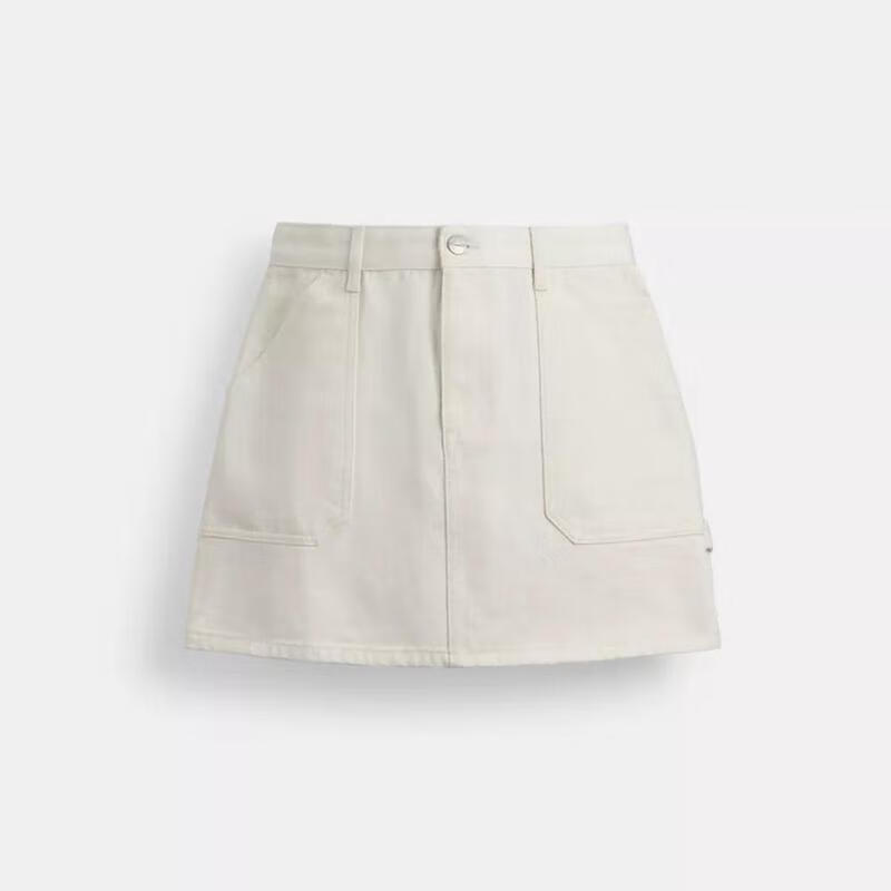 COACH Women's Skirt Slim Fit Cotton High Waist Commuting Summer Skirt Simple White One Size | 28