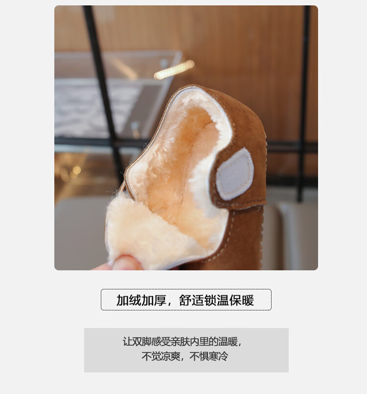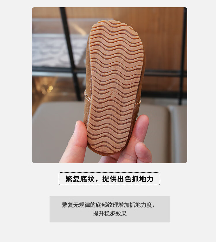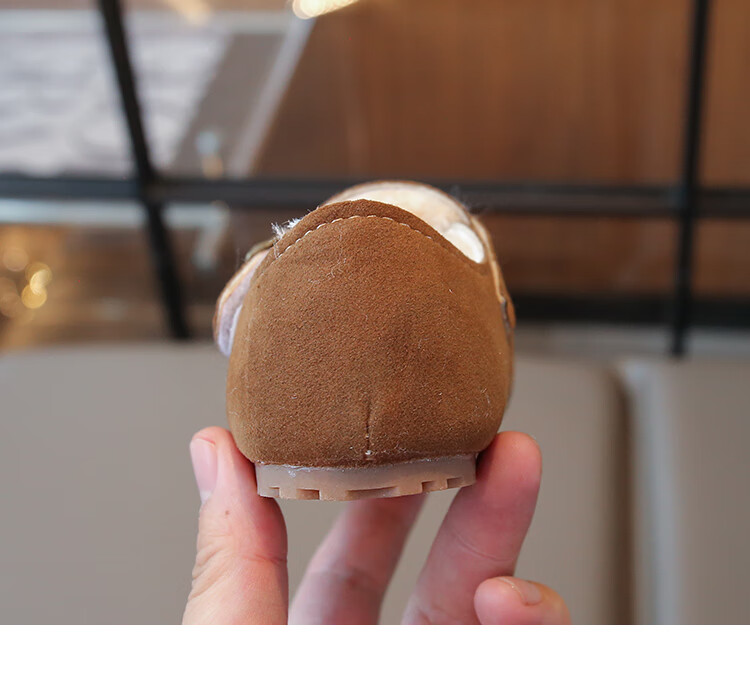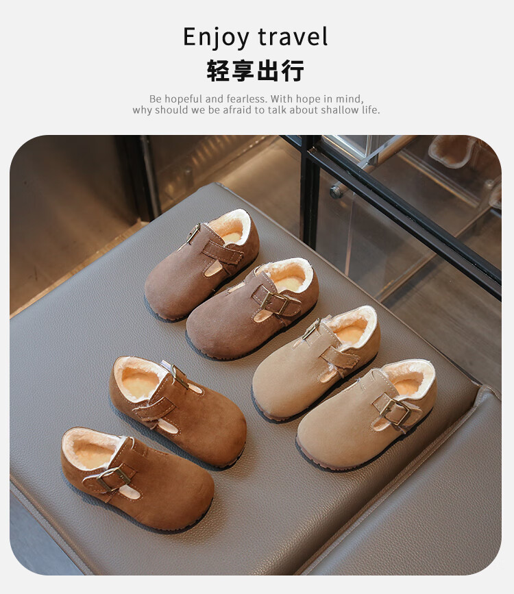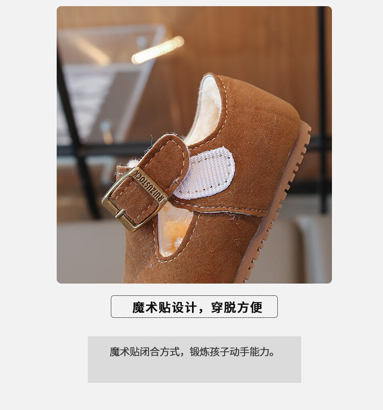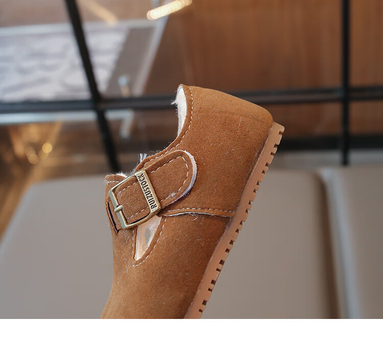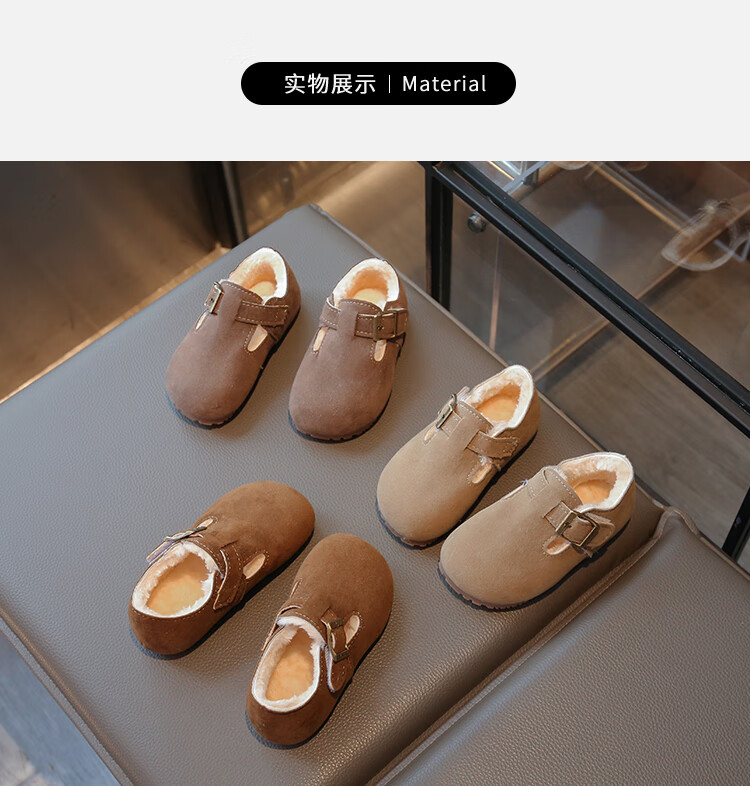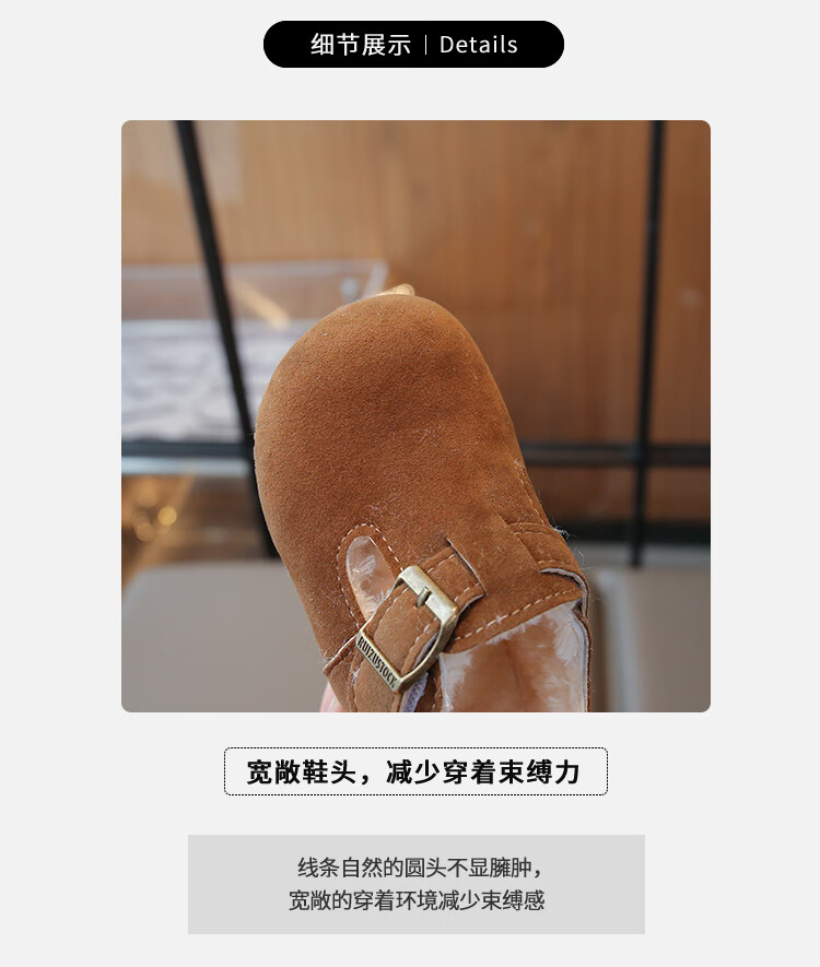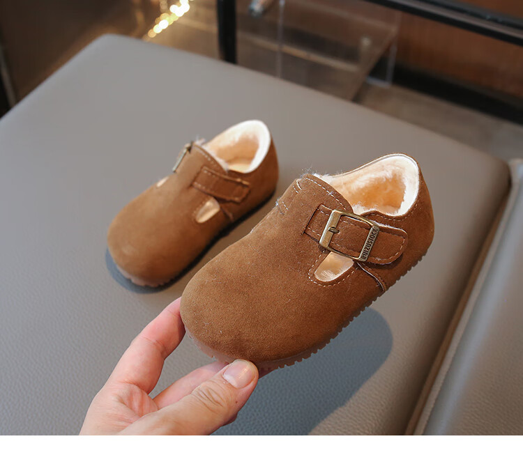 Children's Birkenstock shoes for girls 2025 spring, autumn and winter new style second cotton soft bottom baby bean plus velvet shoes single shoes leather shoes khaki color size 23 inner length 14.4cm