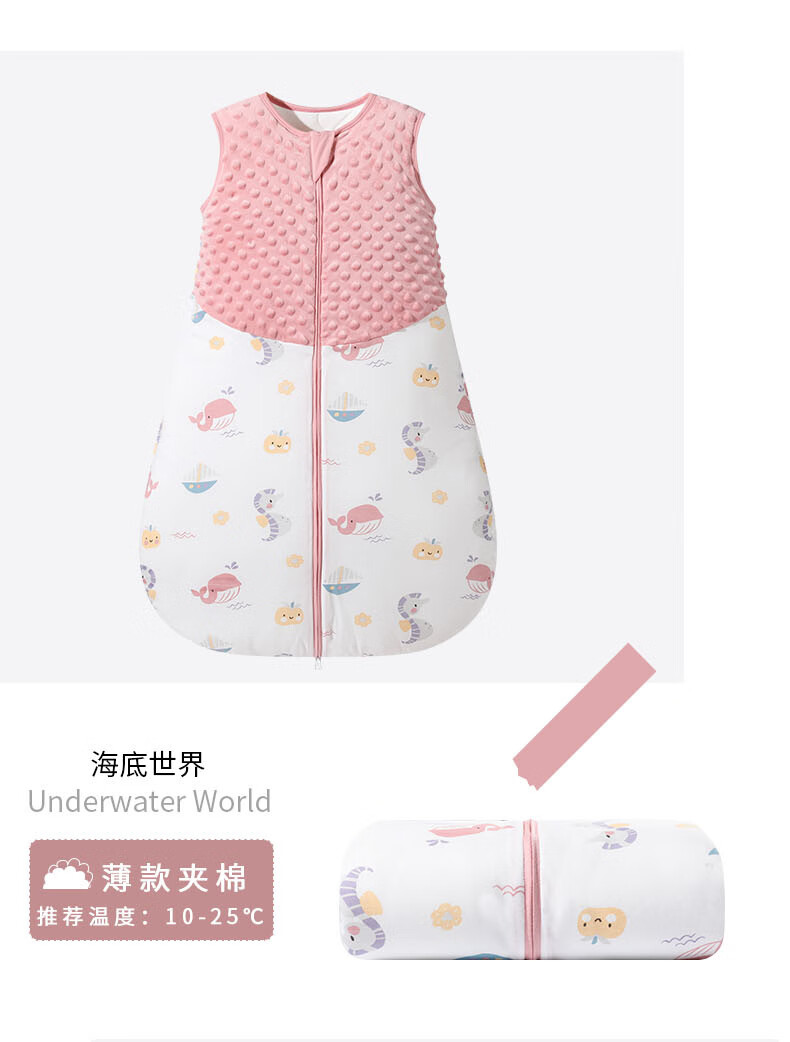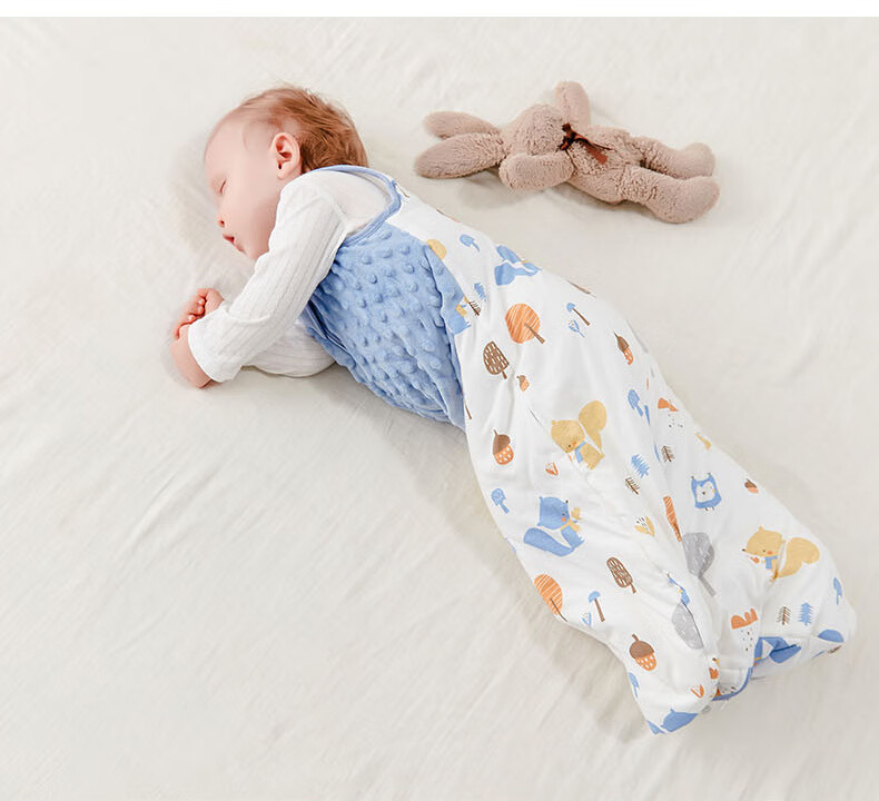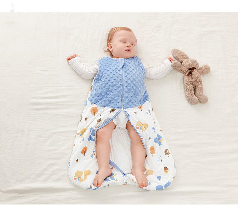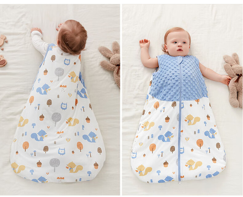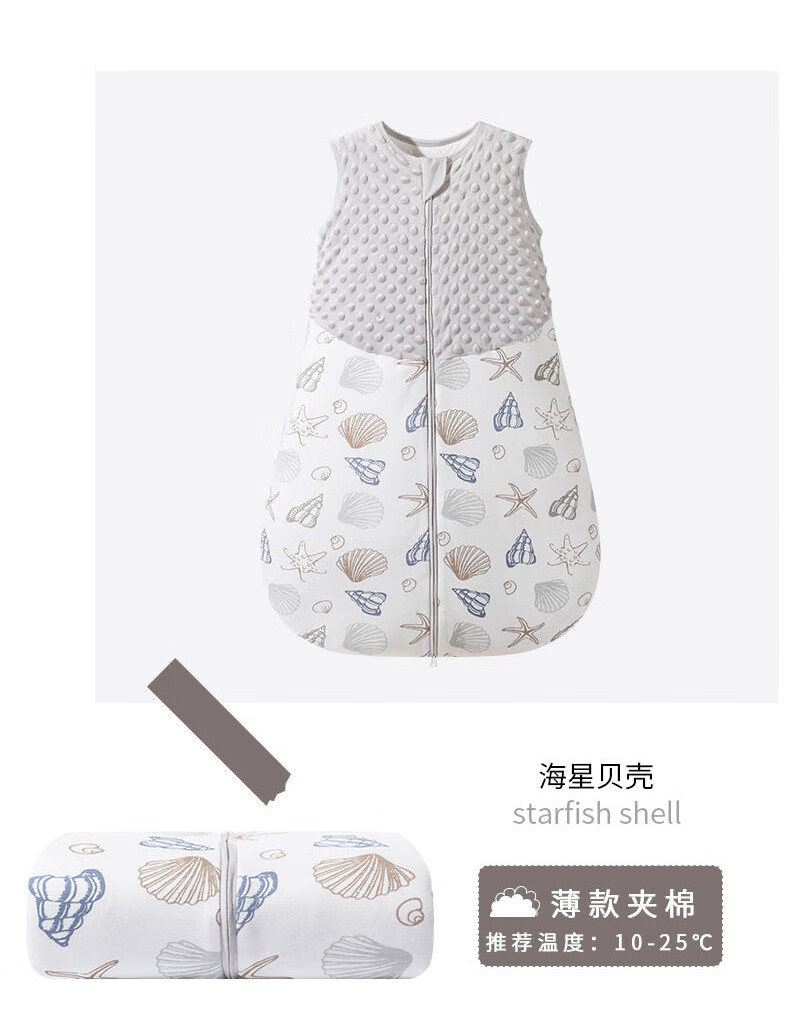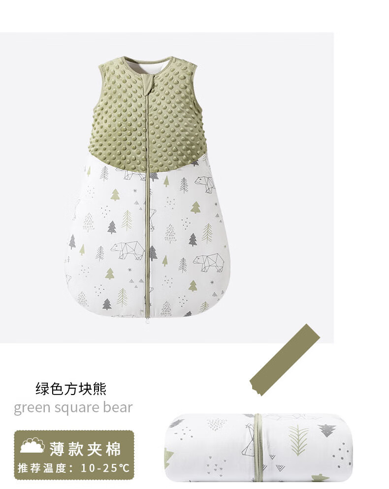 CLCEY spring and autumn baby pure cotton children's anti-jump newborn vest type A infant sleeping bag gray polar bear S size (recommended height within 70CM)