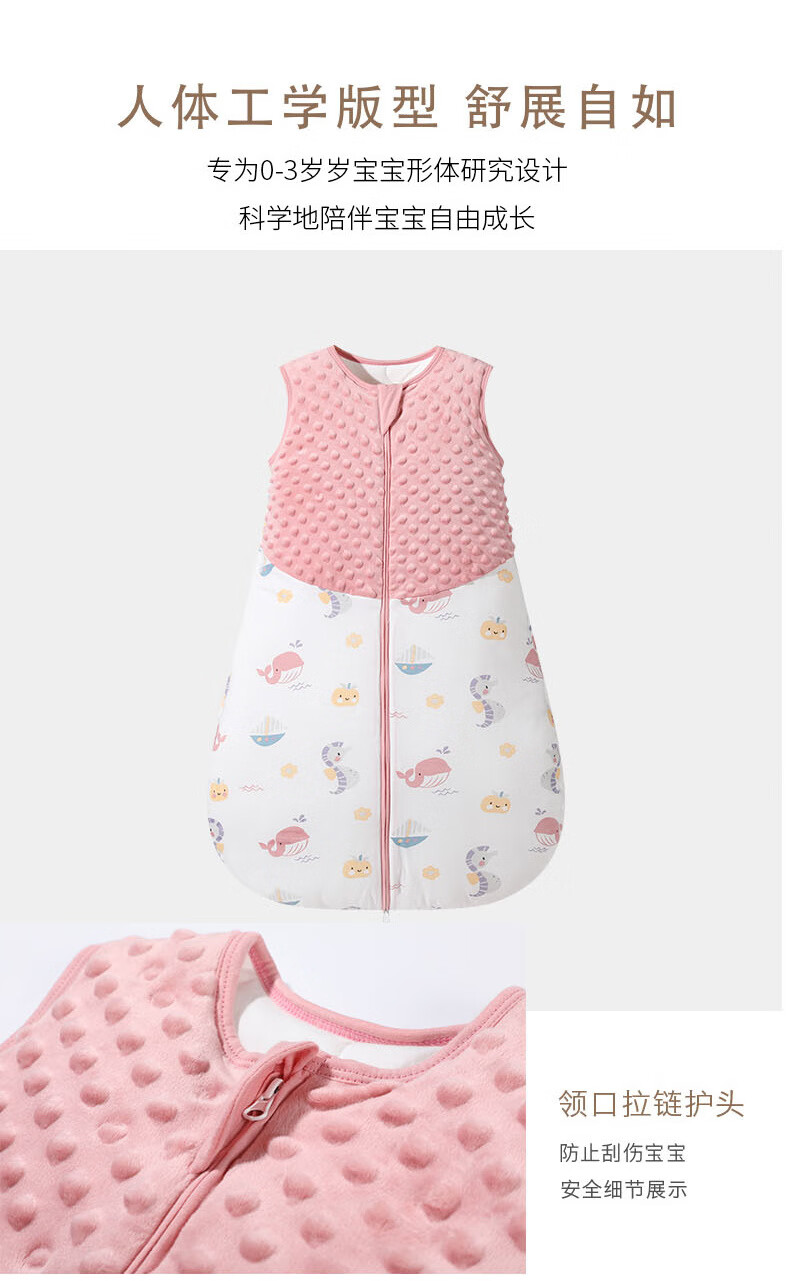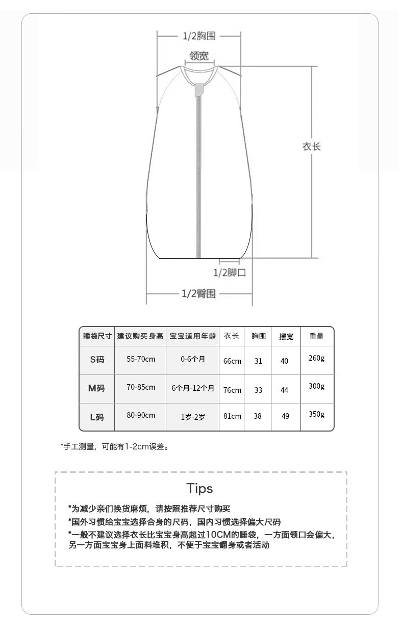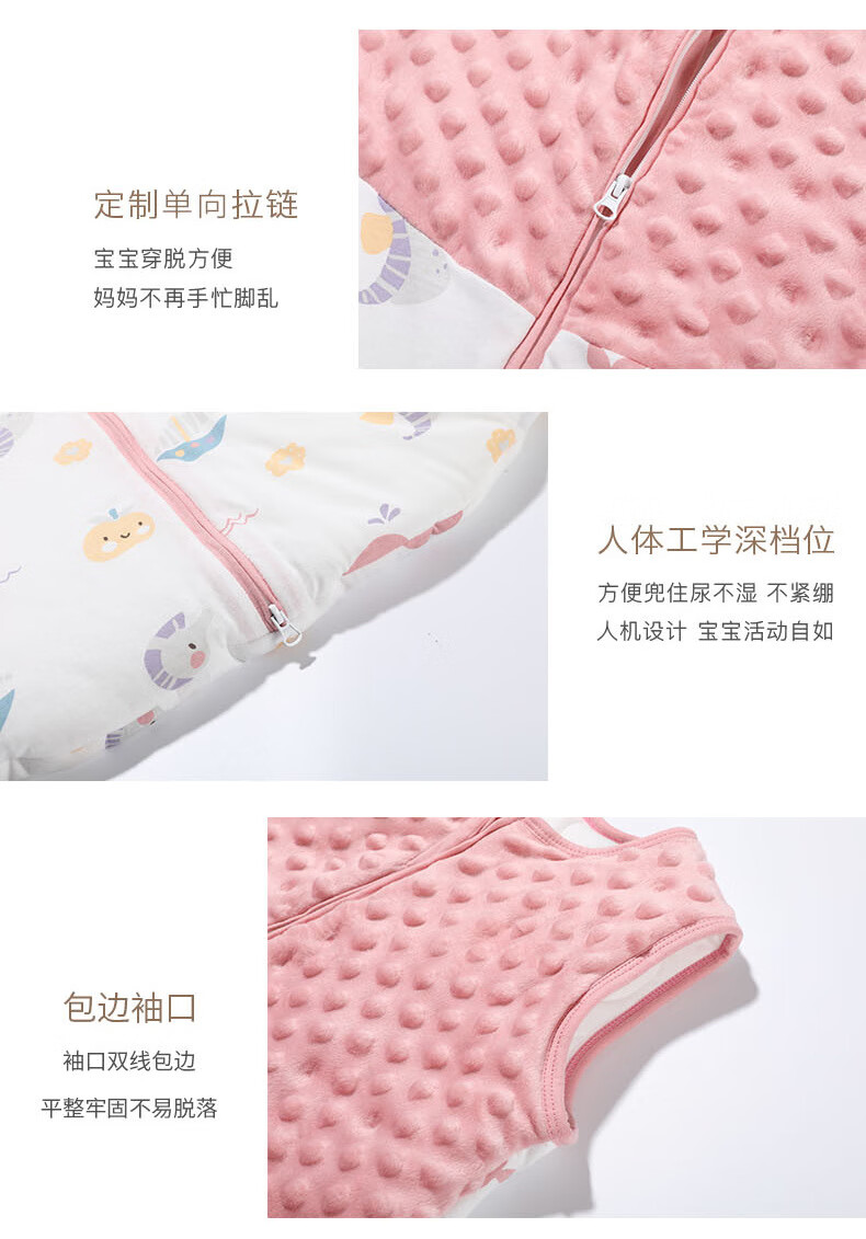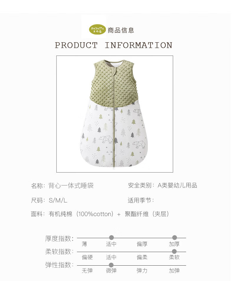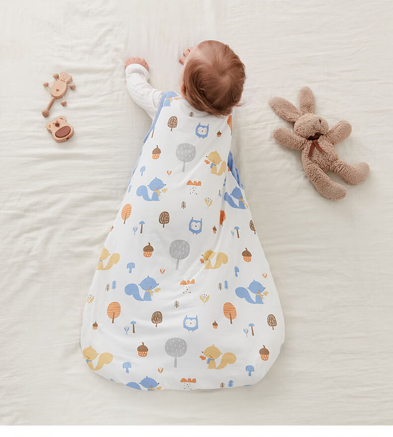 CLCEY spring and autumn baby pure cotton children's anti-jump newborn vest type A infant sleeping bag gray polar bear S size (recommended height within 70CM)