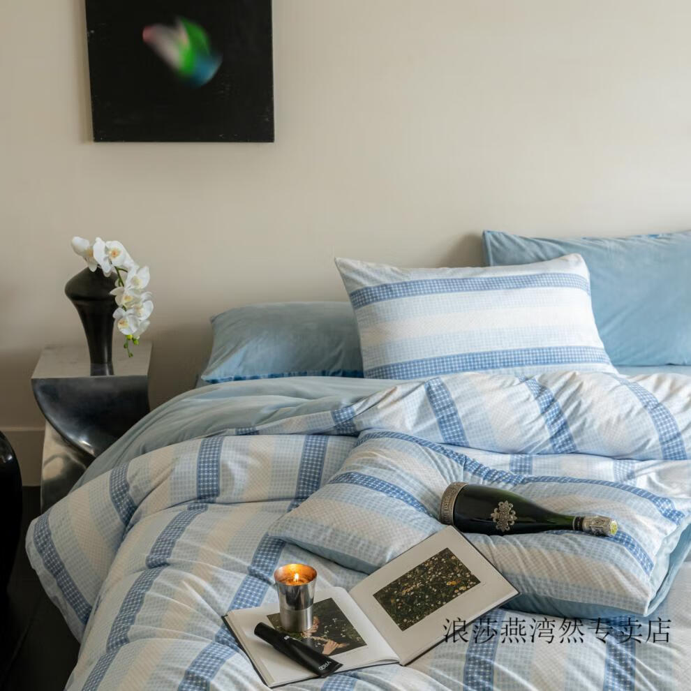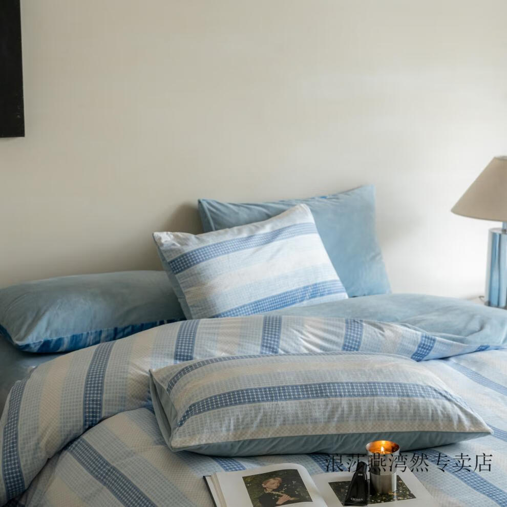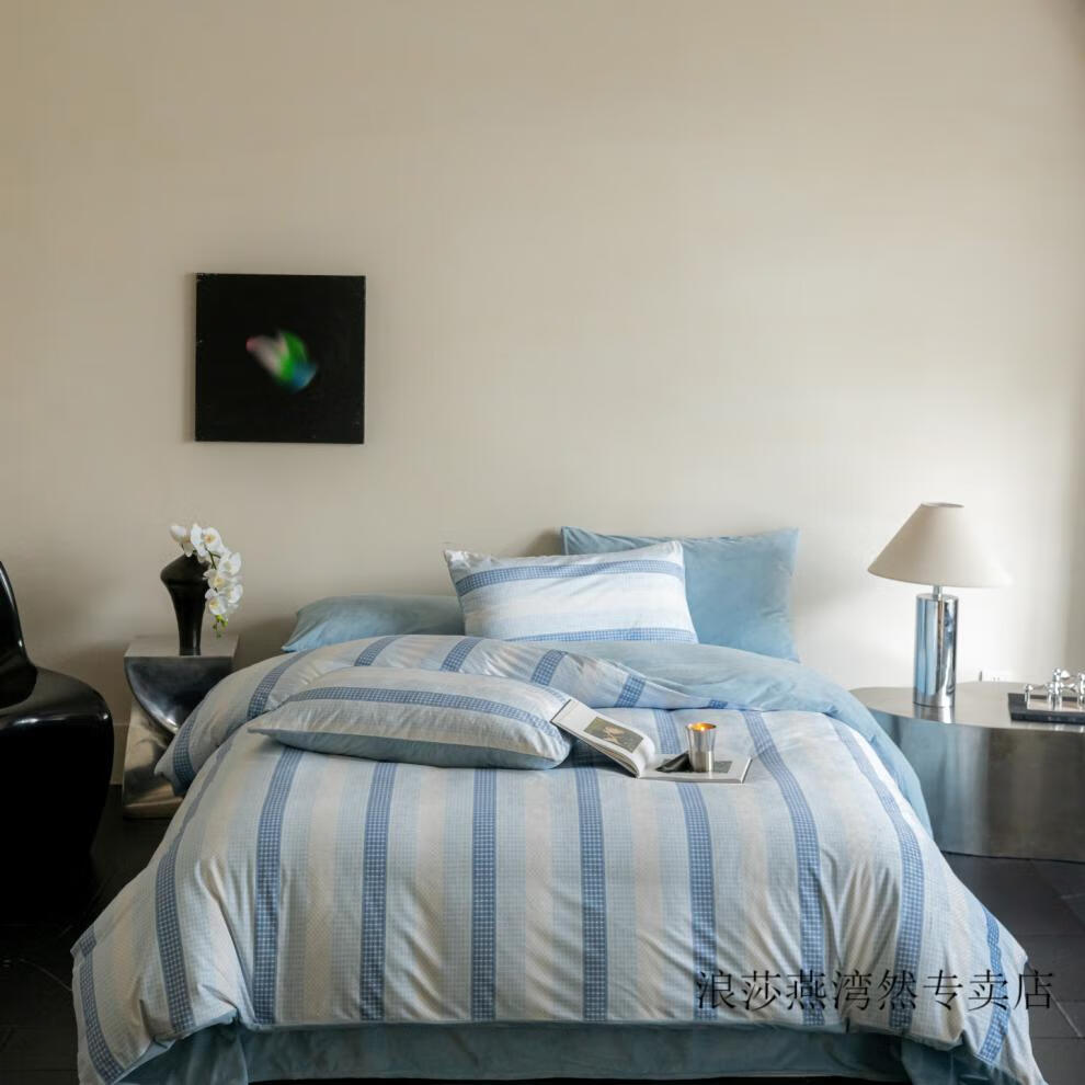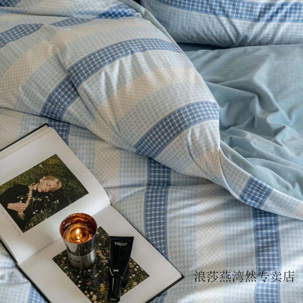 Langsha 2026 new light luxury new French Dove velvet baby velvet baby velvet short plush milk velvet four-piece bed sheet quilt Lan Lihai bed sheet style 1.5m four-piece set