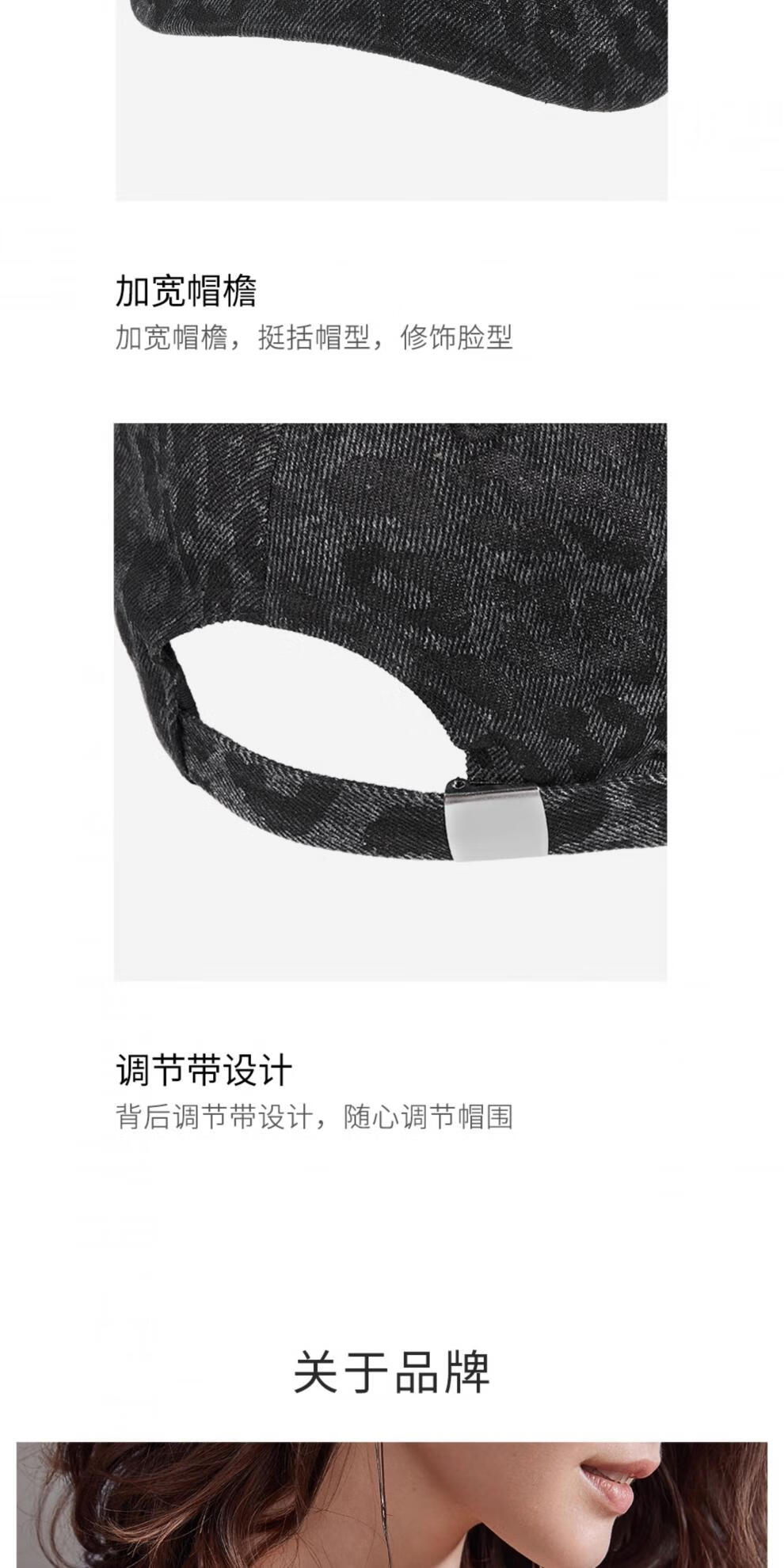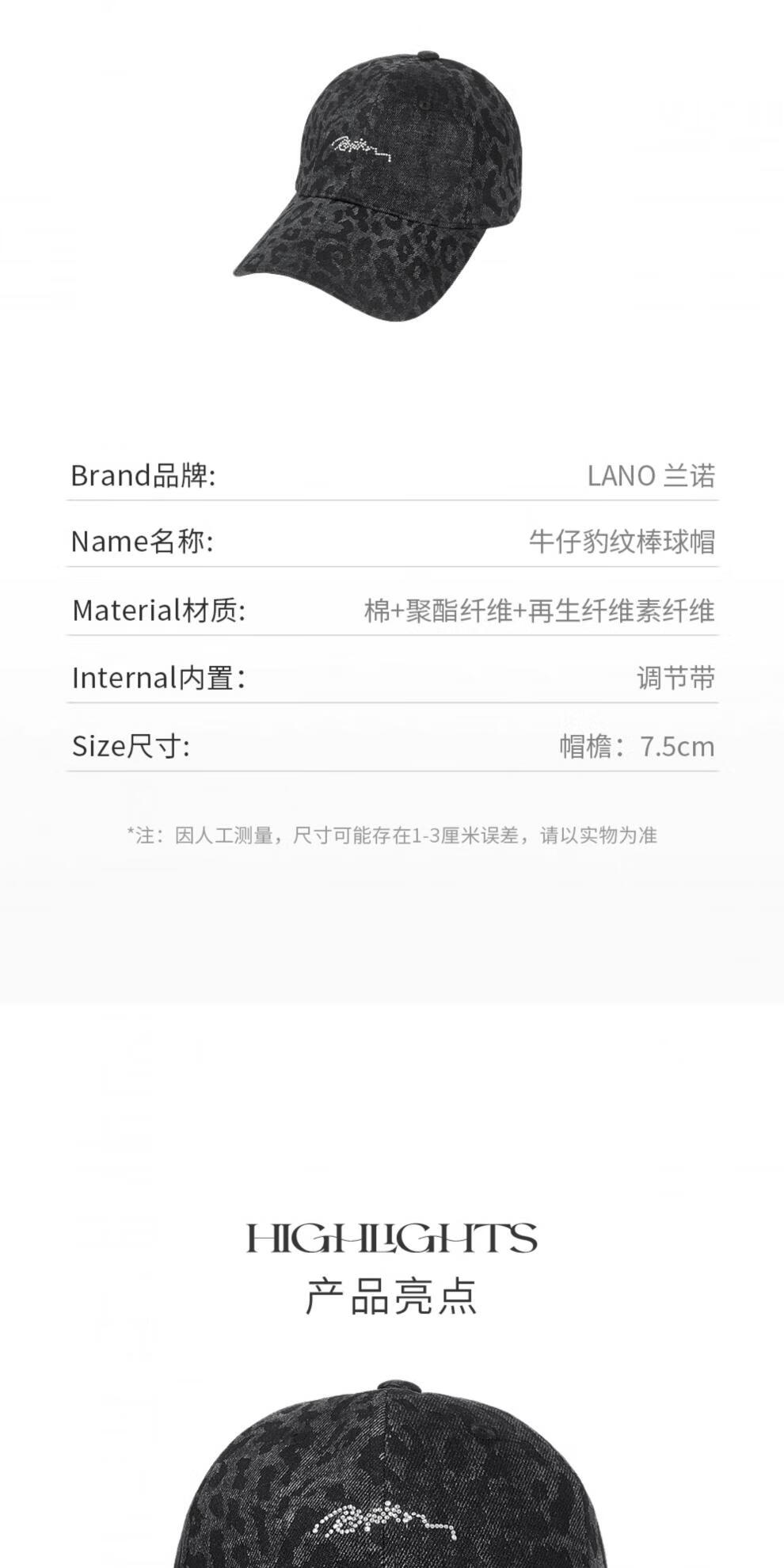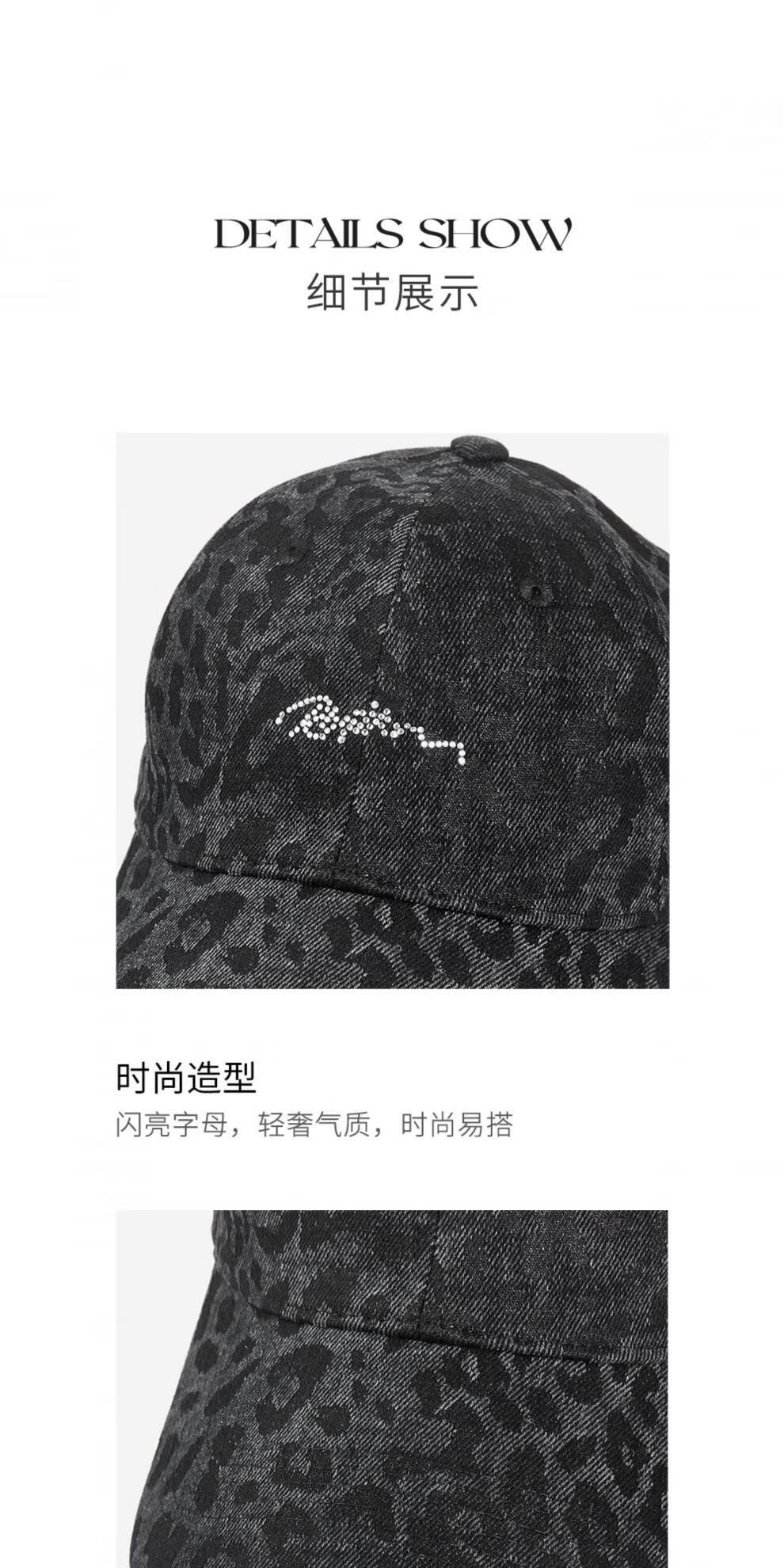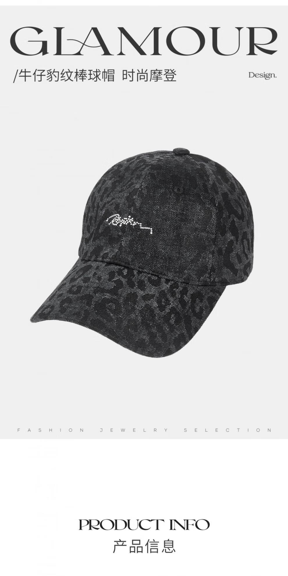 Lannuo Denim Leopard Print Baseball Cap Women's 2025 New Model Shows Small Face, Suitable for Square and Round Faces Peaked Cap Autumn Hat Black M (56-58cm)