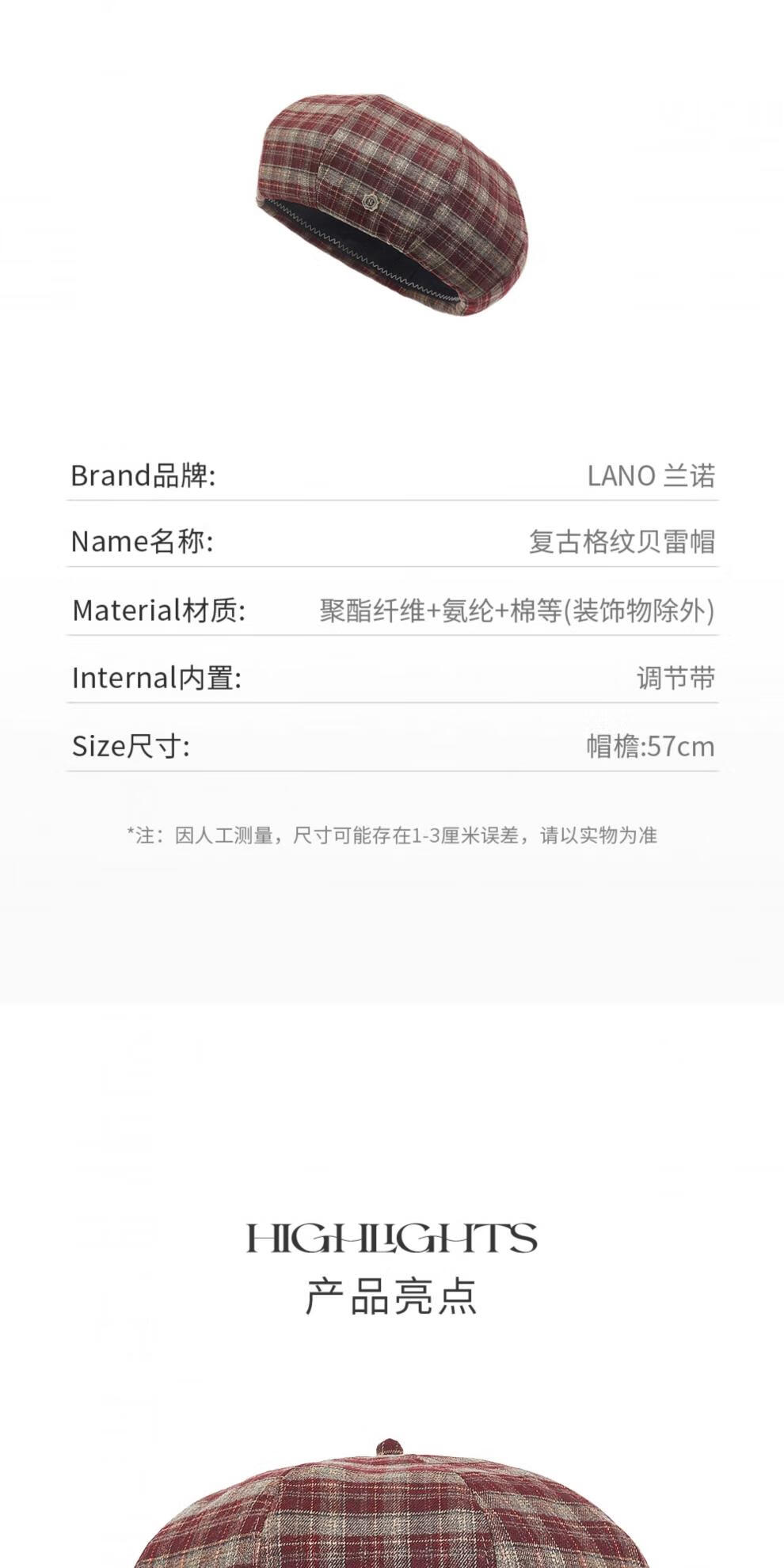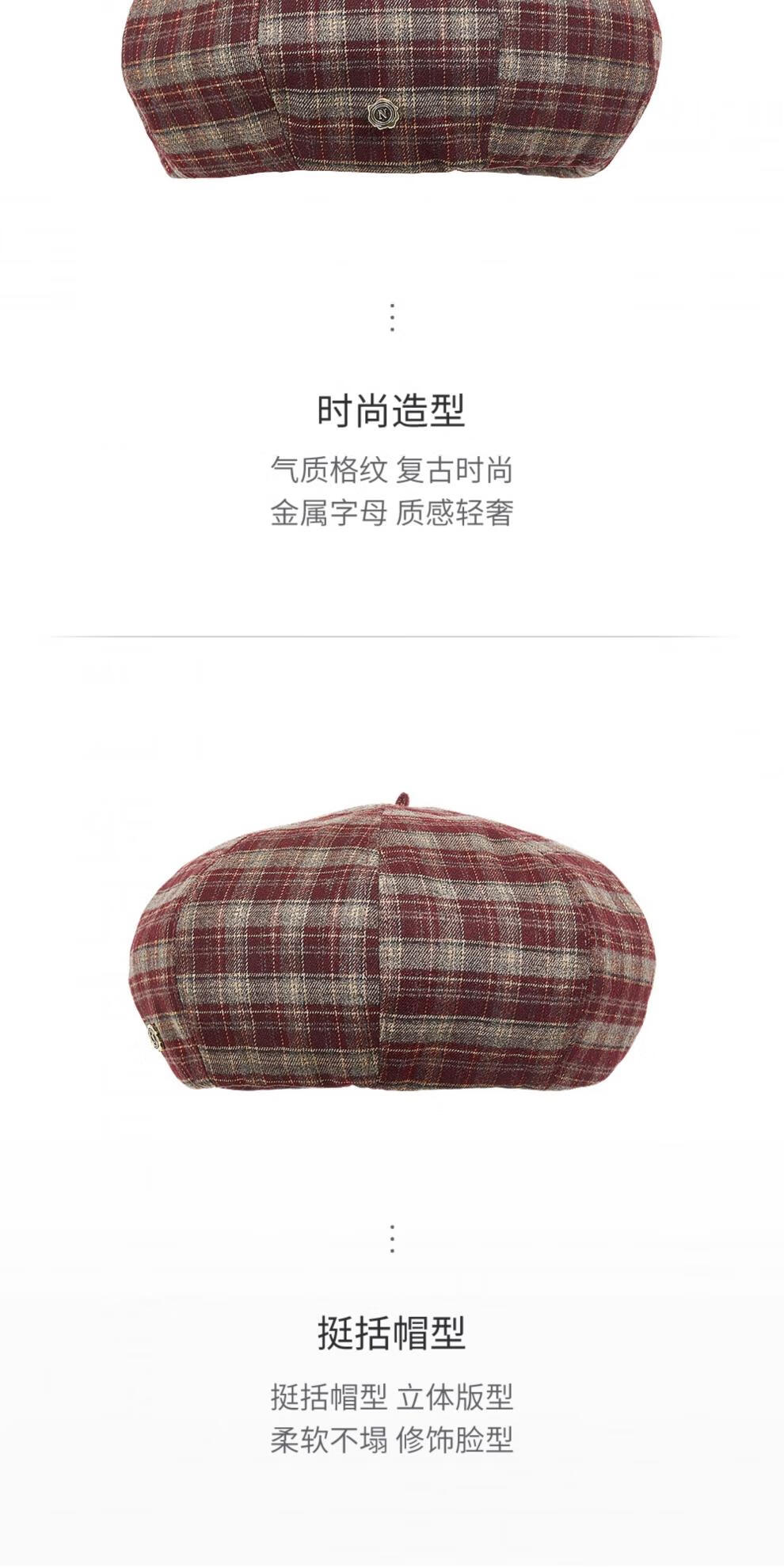 Lannuo red plaid beret women's 2025 autumn new style small face suitable for round face hat pumpkin hat dark red M (56-58cm)
