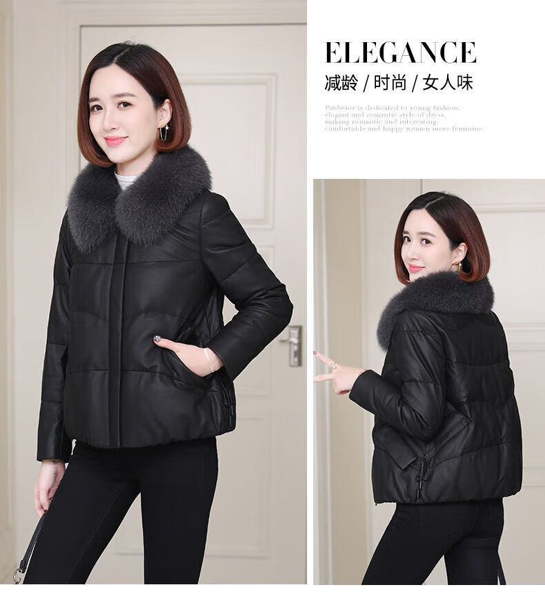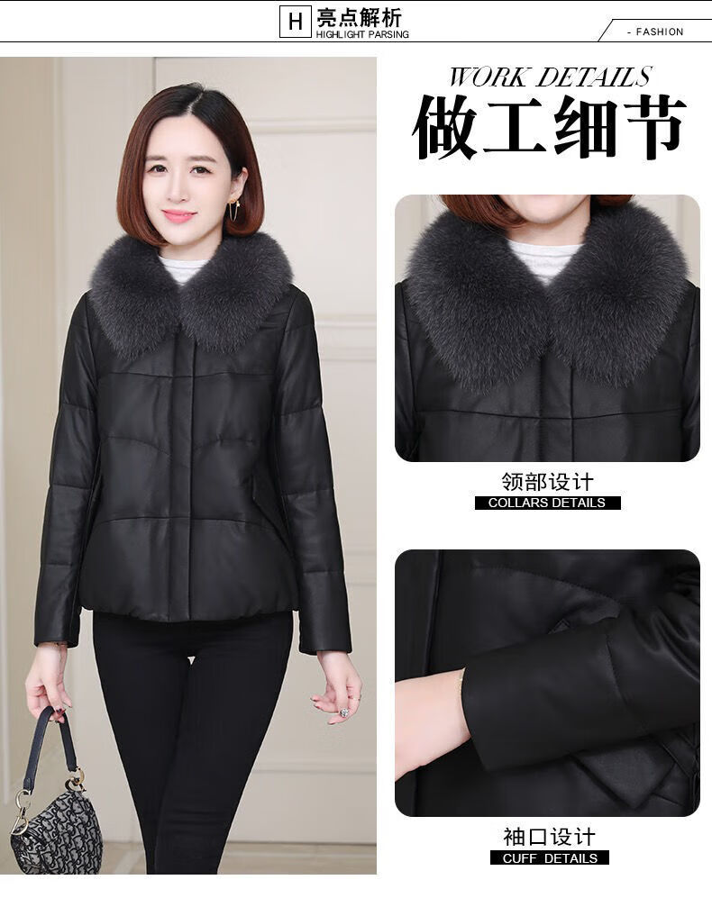 Hengyuanxiang Genuine Leather 2025 Winter New Fox Fur Collar Haining Fur Sheepskin Leather Jacket Down Jacket Women's Short Haining Leather Jacket Women's Genuine Leather Black L Top Ten Genuine Leather Jackets 110Jin Jin is equal to 0.5kg -120Jin Jin is equal to 0.5kg