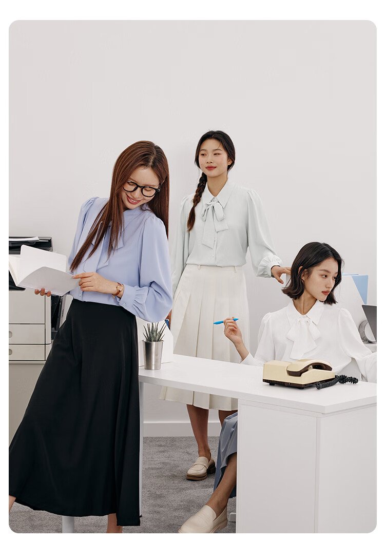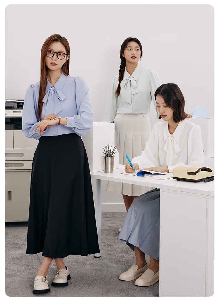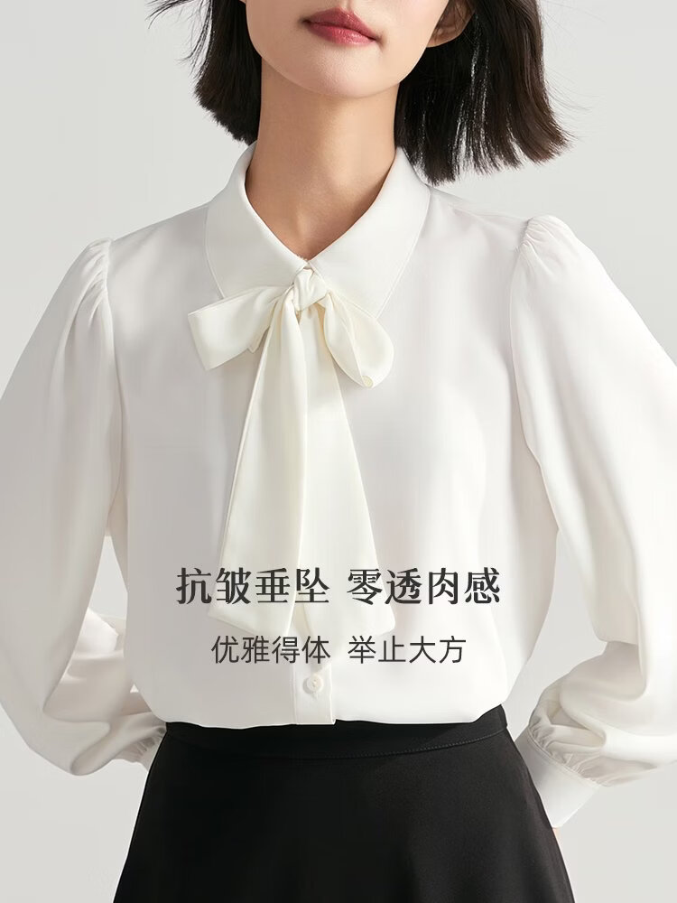 LZJV blue shirt women's professional suit formal long-sleeved top interview suit teacher commuting wear chiffon shirt white L 105-115Jin Jin equal to 0.5 kg without ties