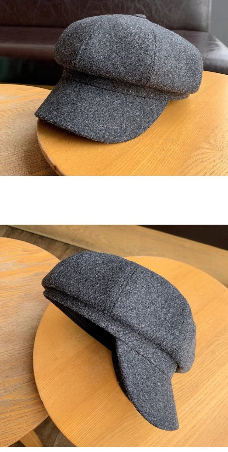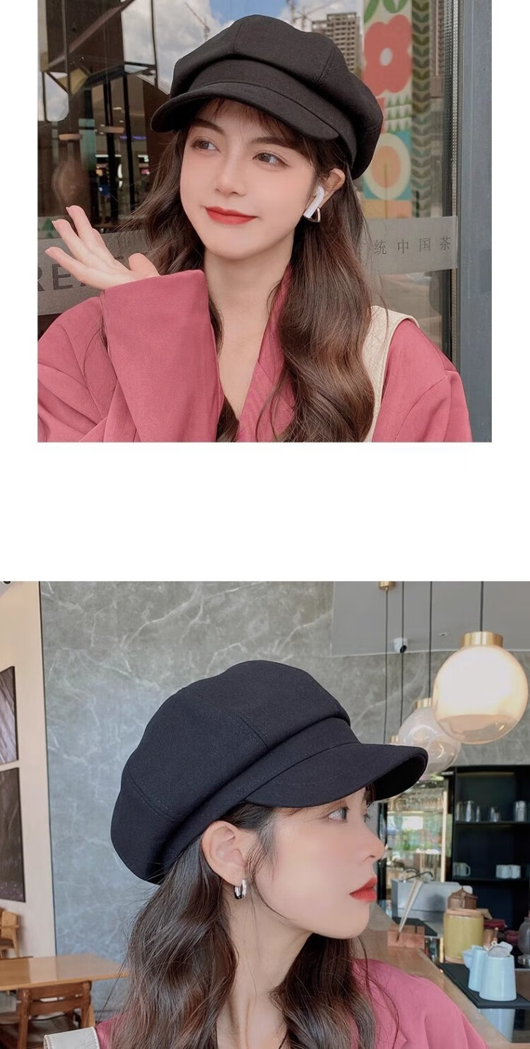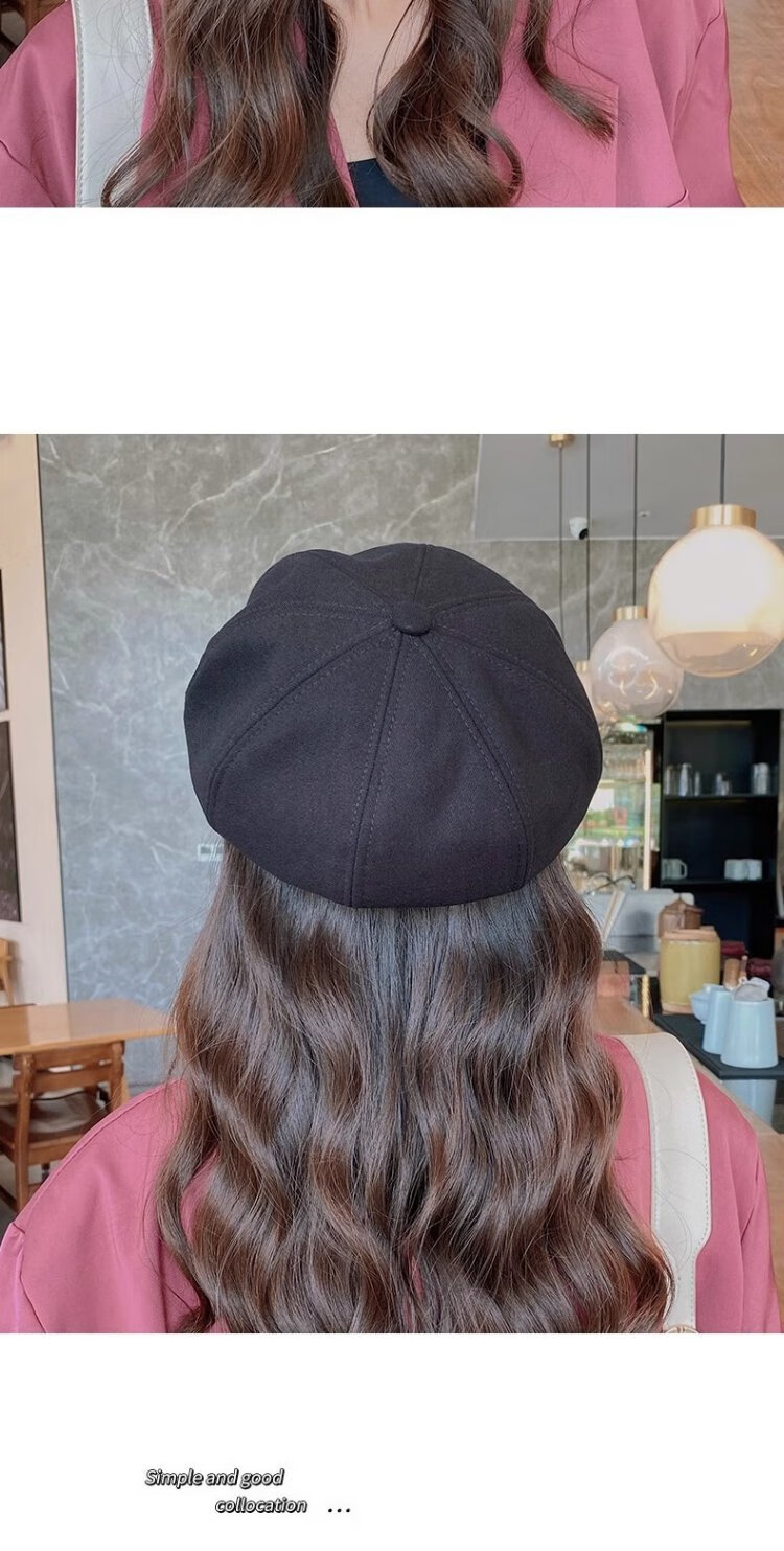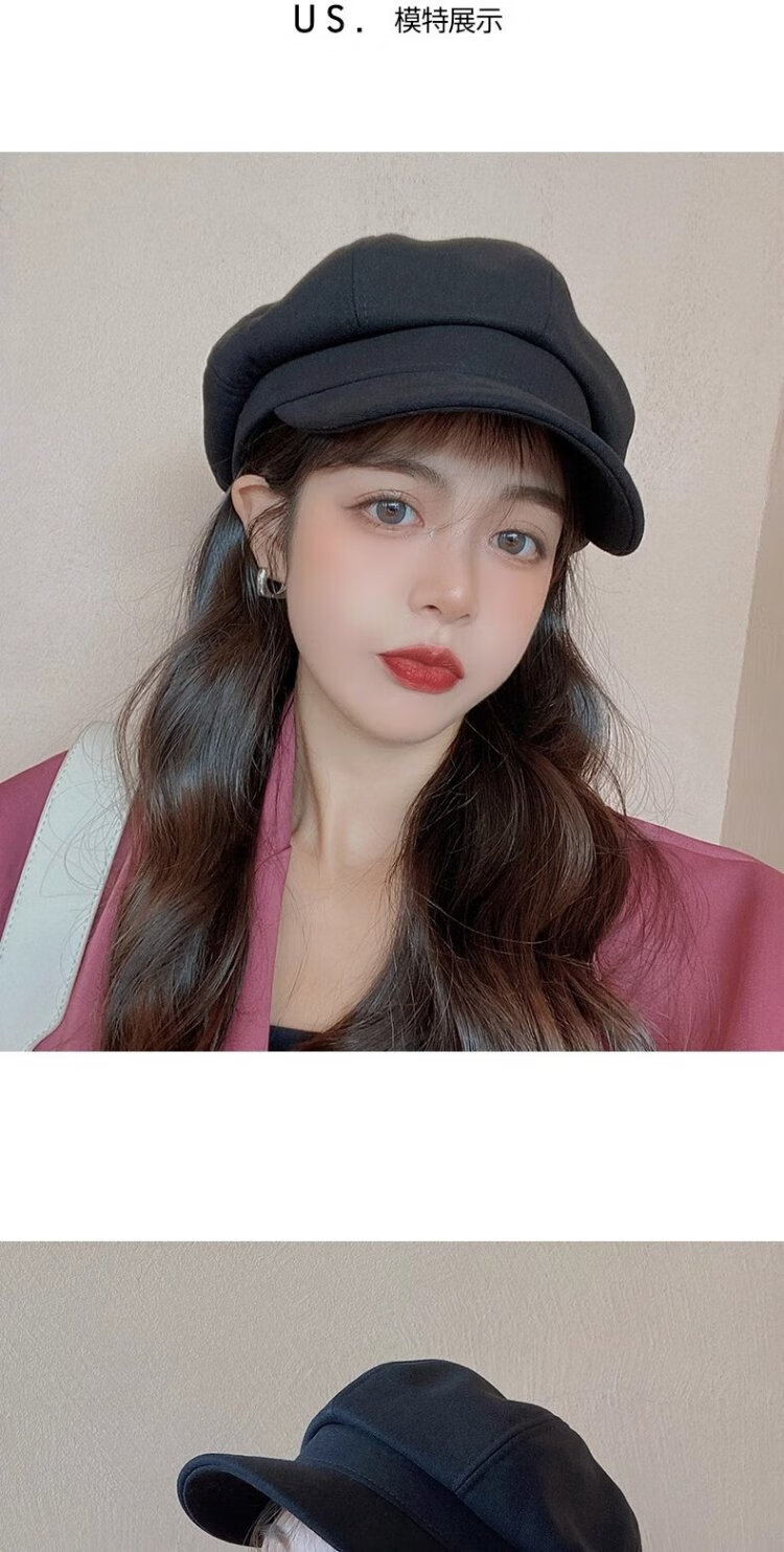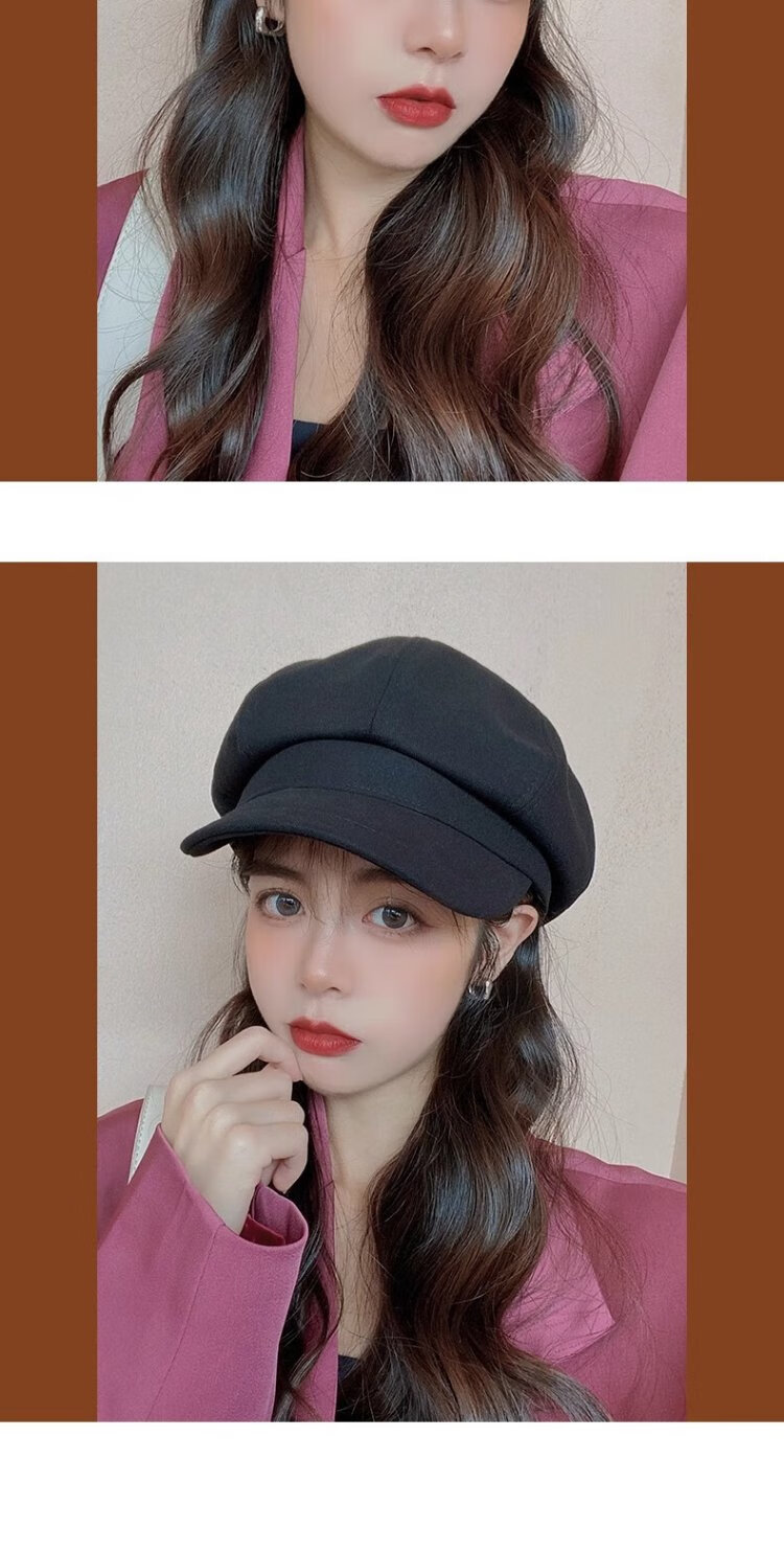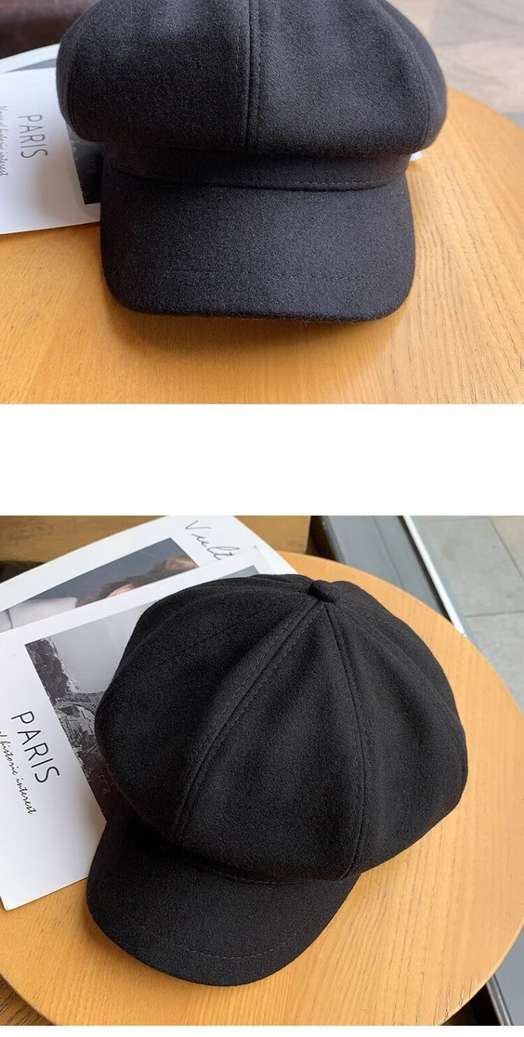 LZJV black British beret men's big head circumference autumn and winter retro hat octagonal hat men's style ins black trend black