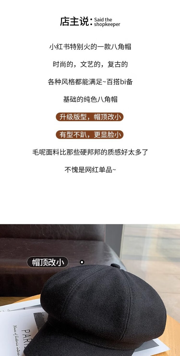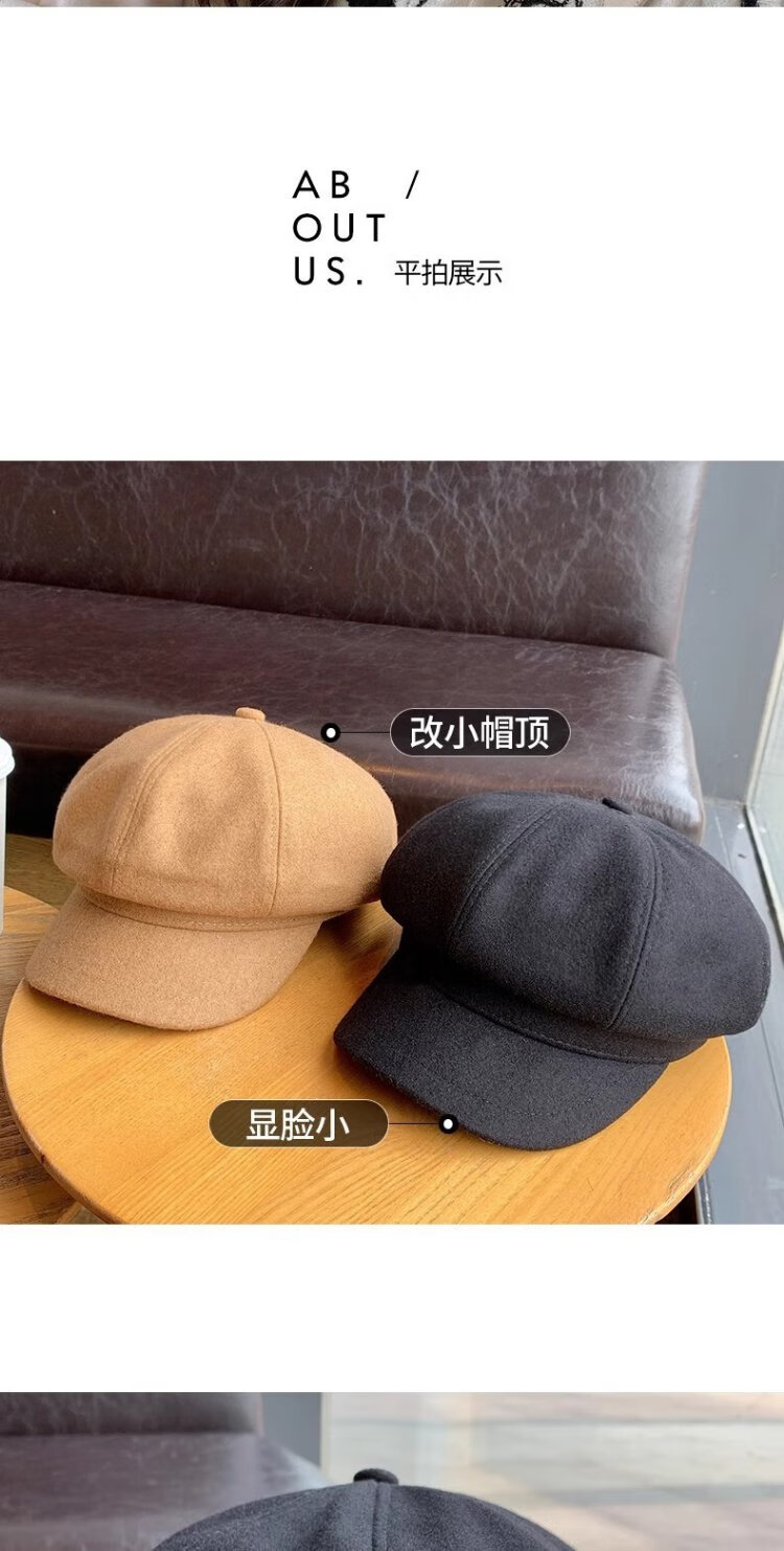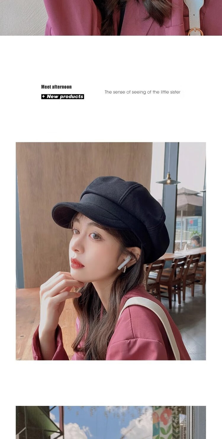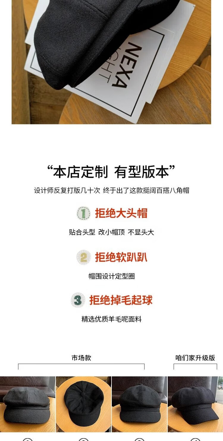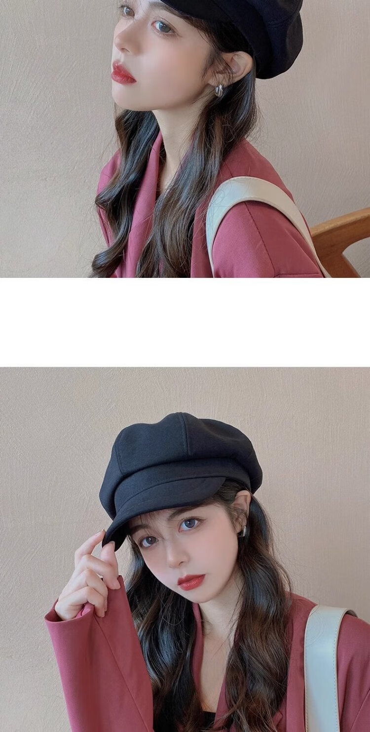 LZJV black British beret men's big head circumference autumn and winter retro hat octagonal hat men's style ins black trend black