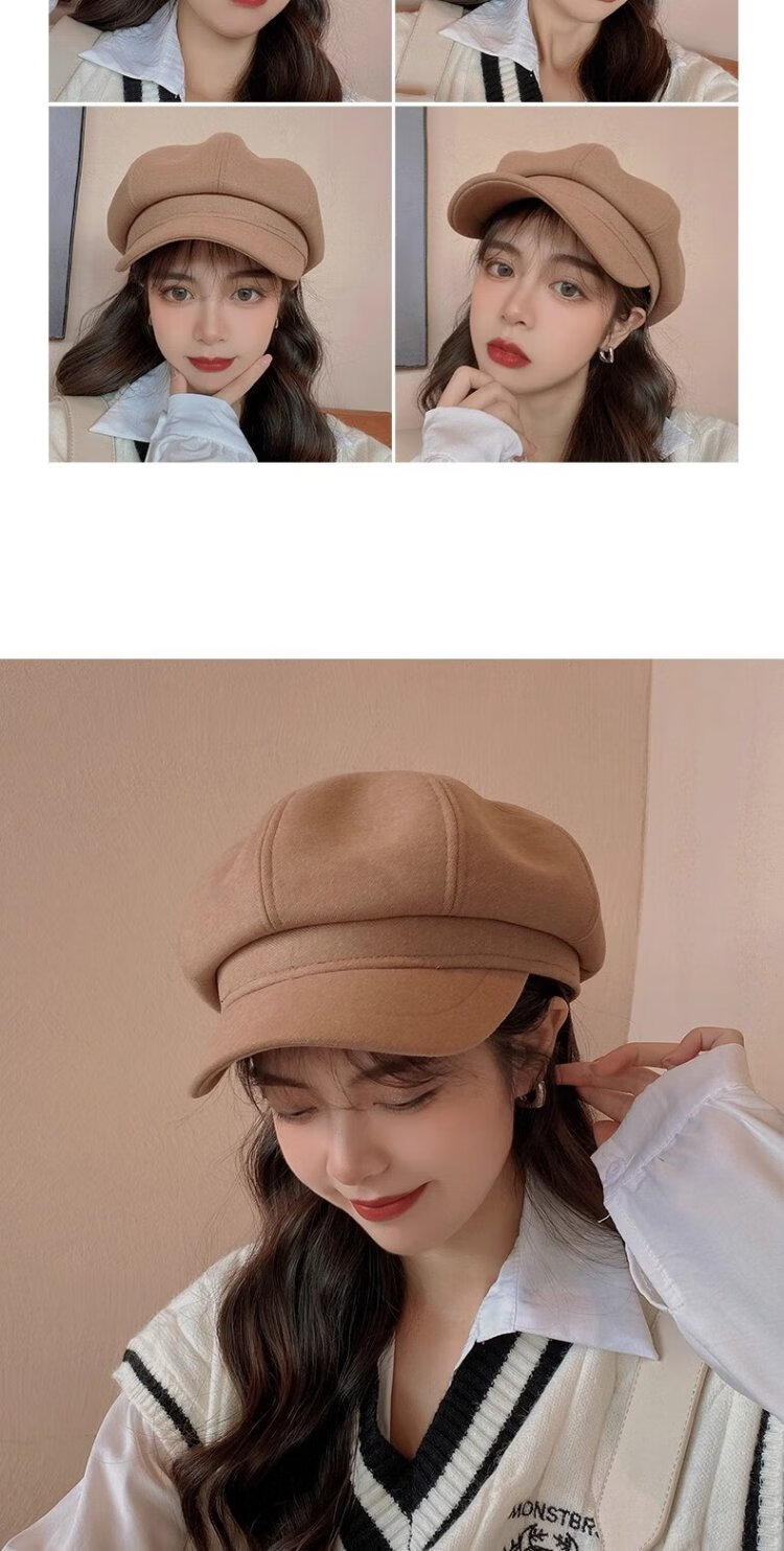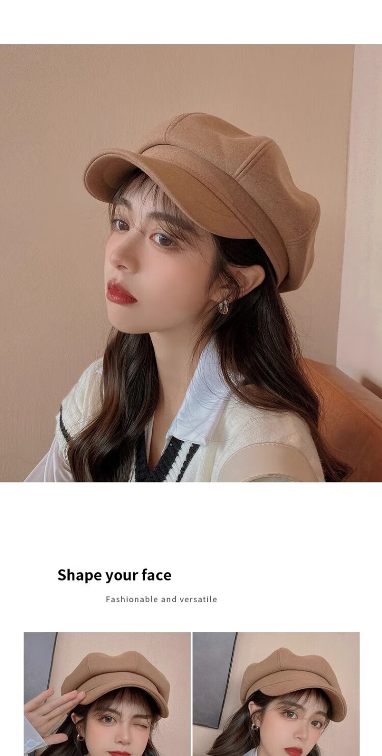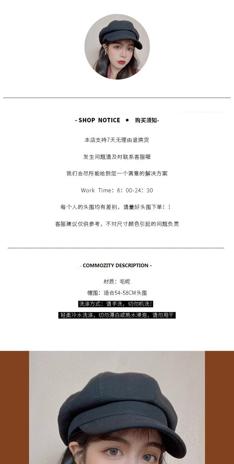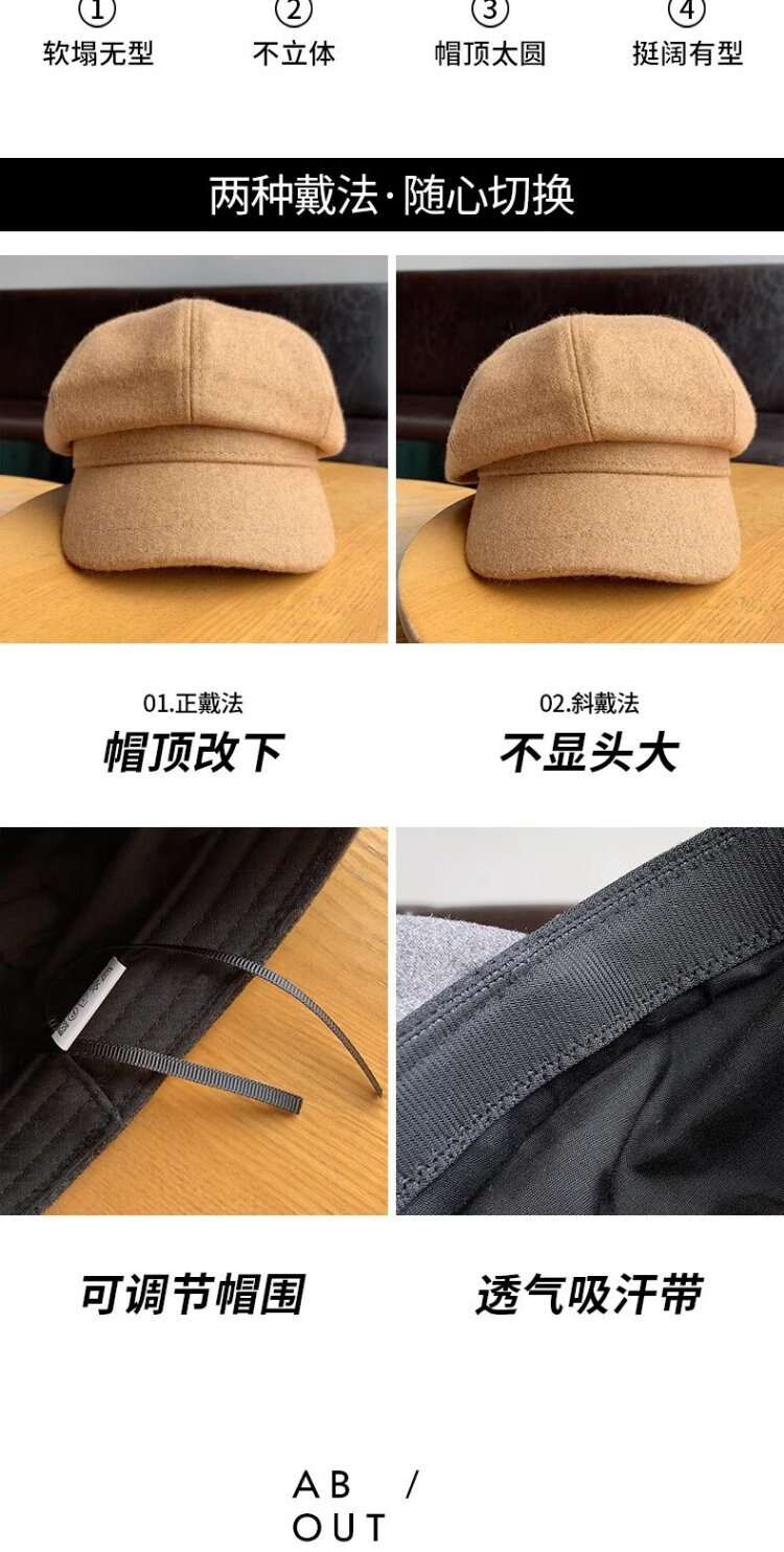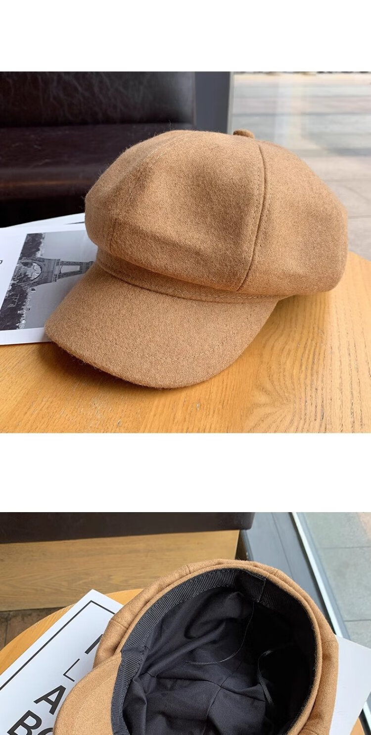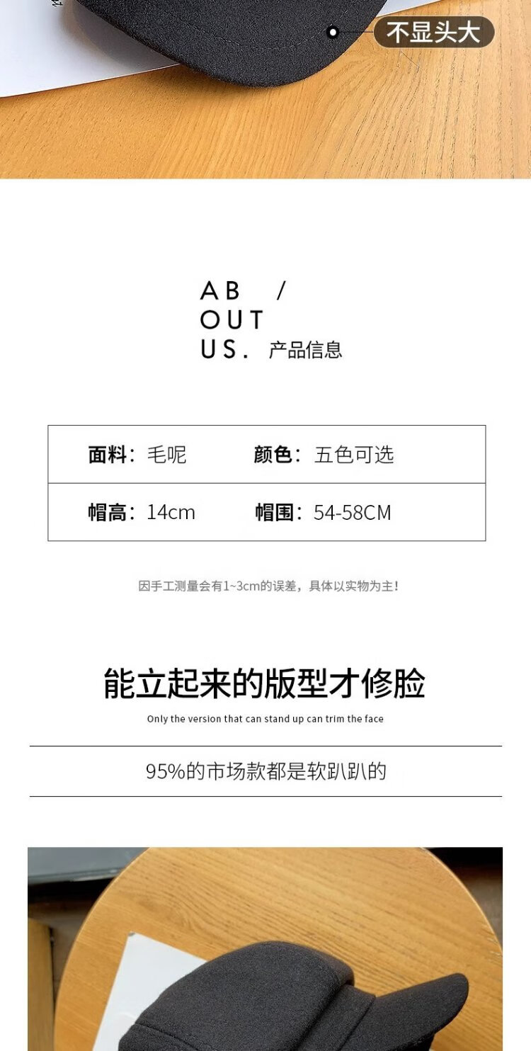 LZJV black British beret men's big head circumference autumn and winter retro hat octagonal hat men's style ins black trend black