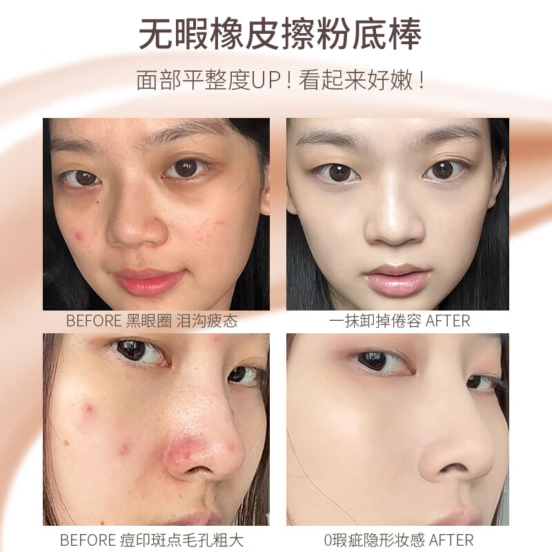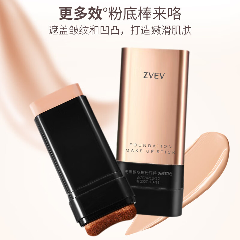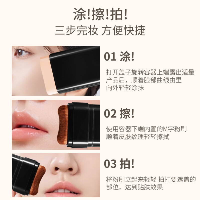 Concealer foundation stick, moisturizing, oil-controlling, brightening, long-lasting makeup base, no makeup stripping, no dullness, long-lasting moist texture, lazy person 4, flawless water-glow essence foundation stick with brush head (ivory color) 20g*1