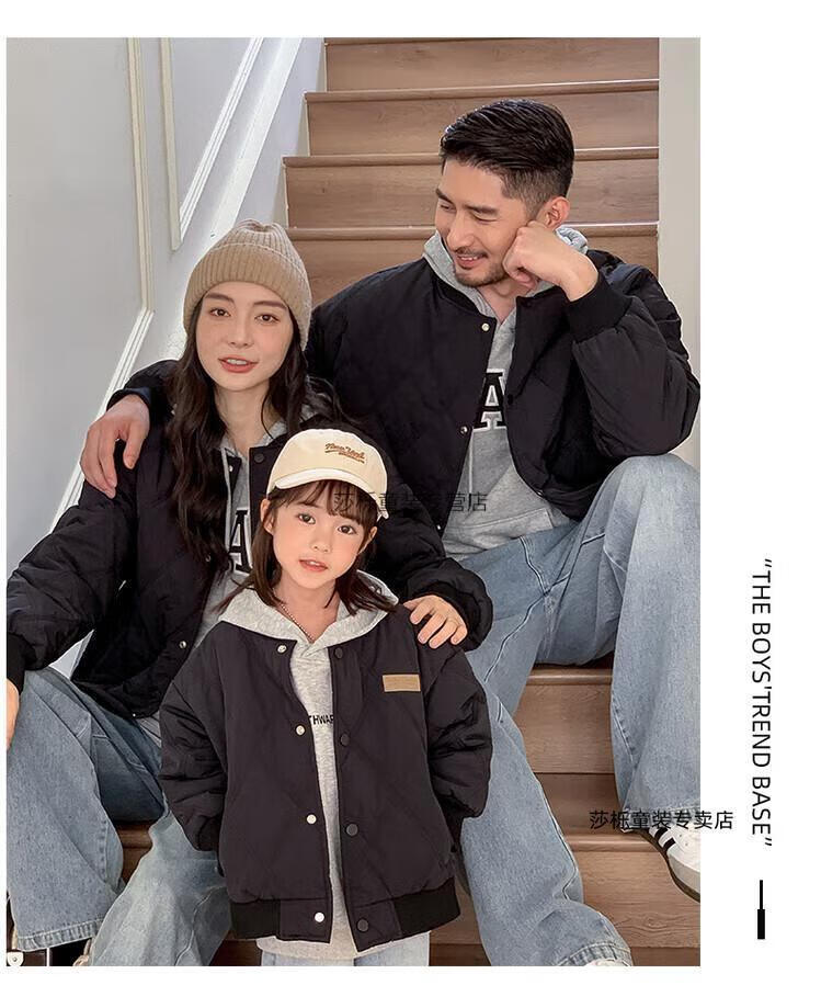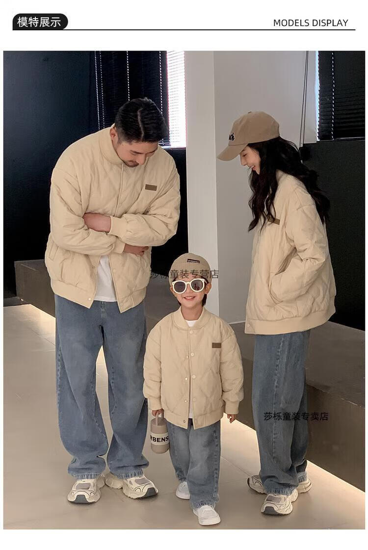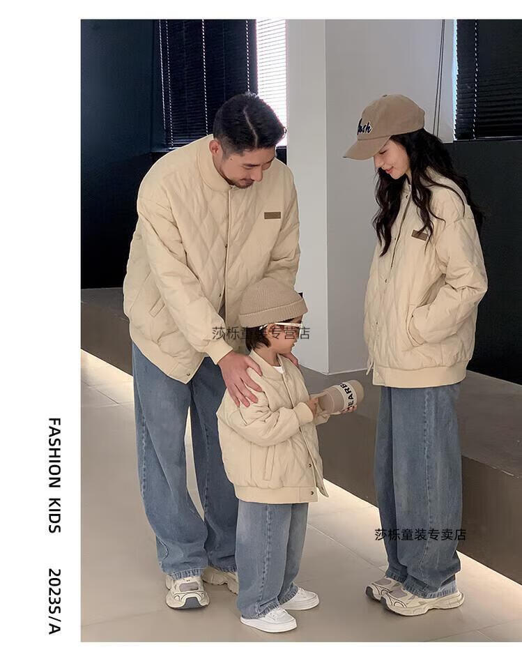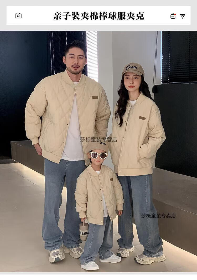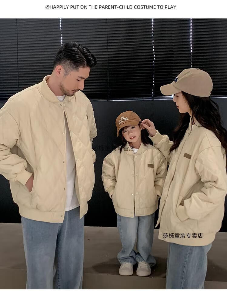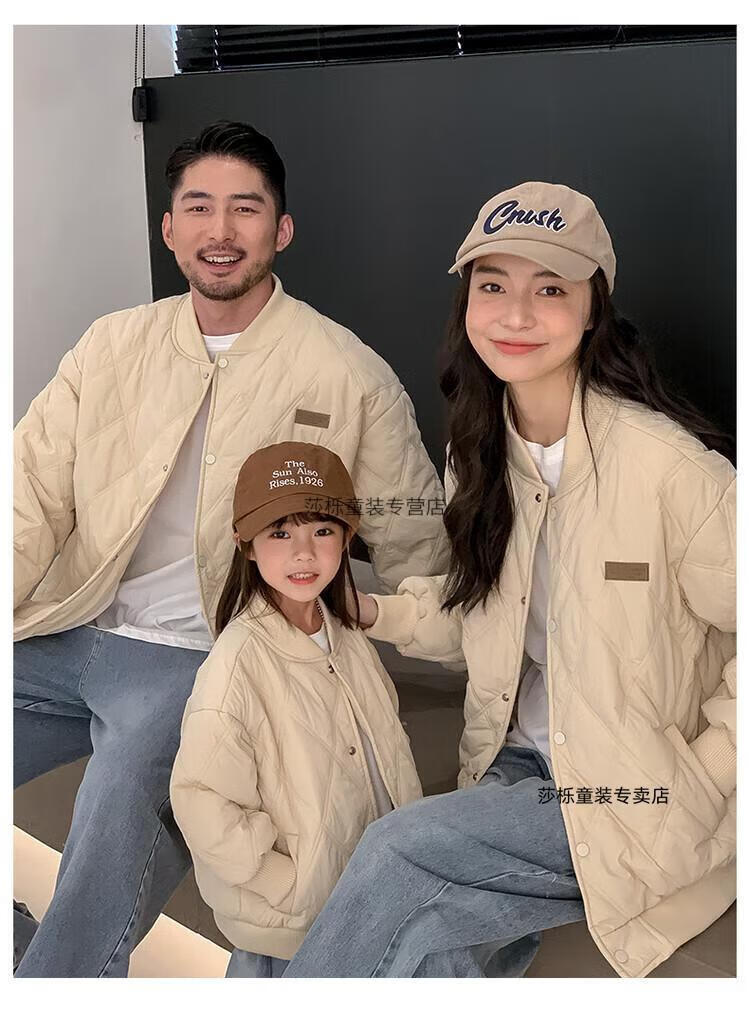 G.duck children's clothing parent-child clothing family of three or four family clothing children's jacket autumn and winter boys and girls baseball uniforms Korean fashion TMT cotton coat khaki 165 S