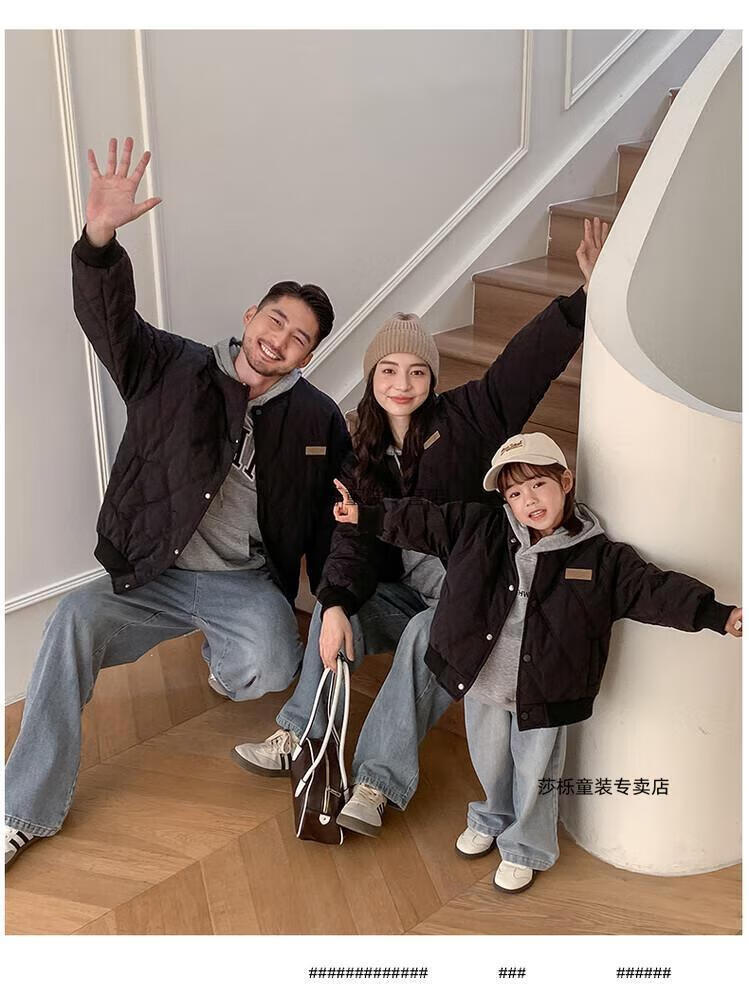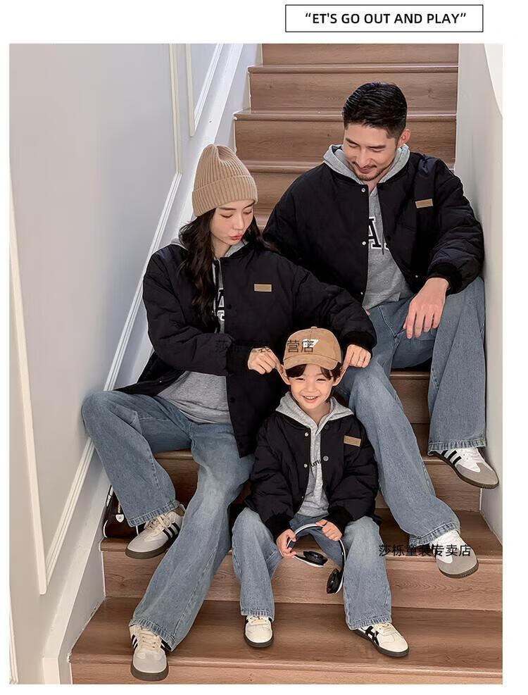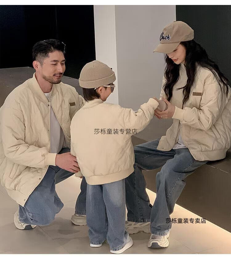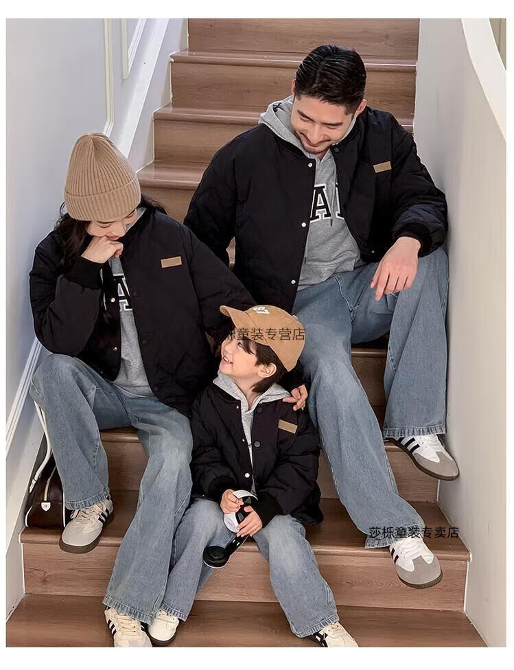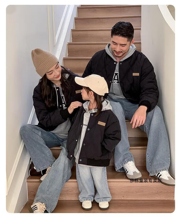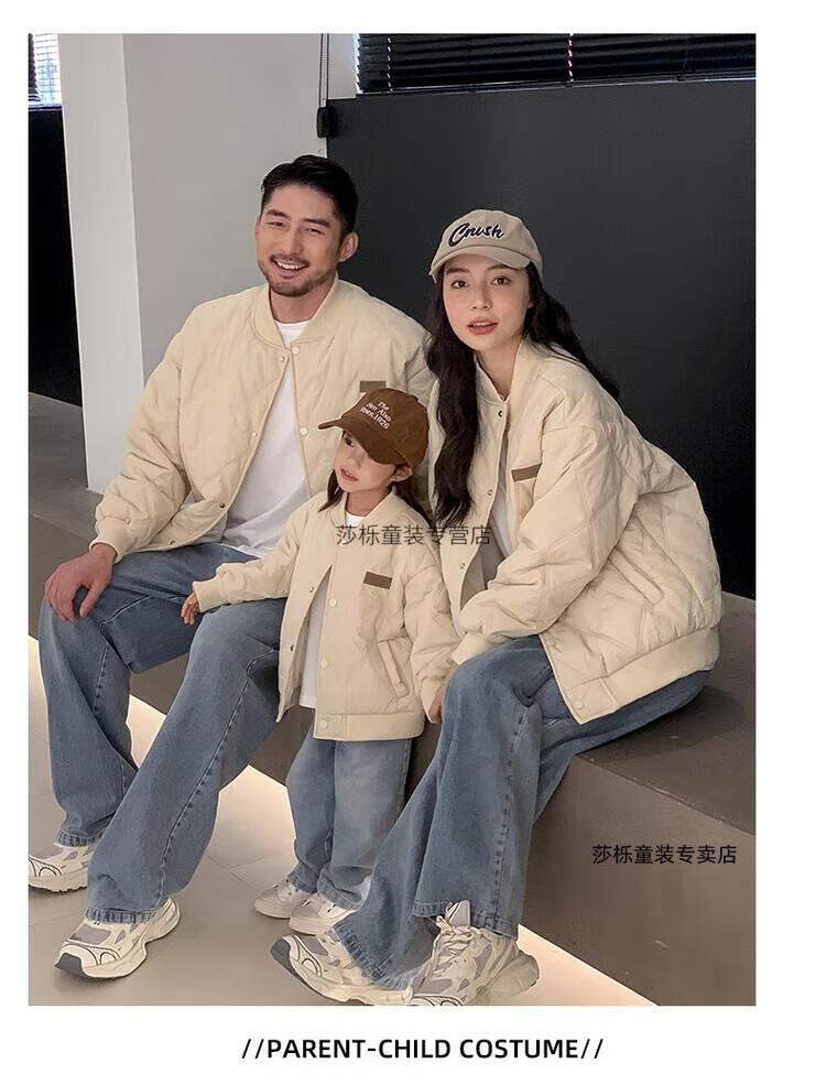 G.duck children's clothing parent-child clothing family of three or four family clothing children's jacket autumn and winter boys and girls baseball uniforms Korean fashion TMT cotton coat khaki 165 S