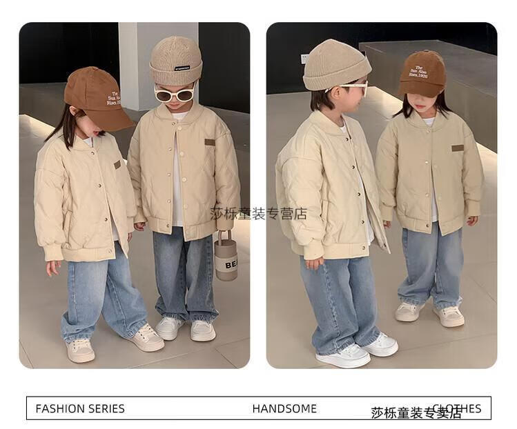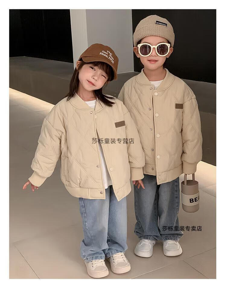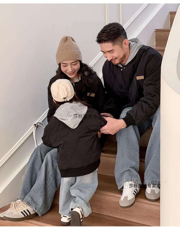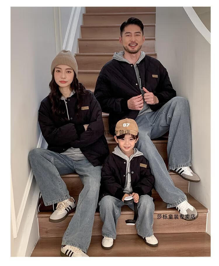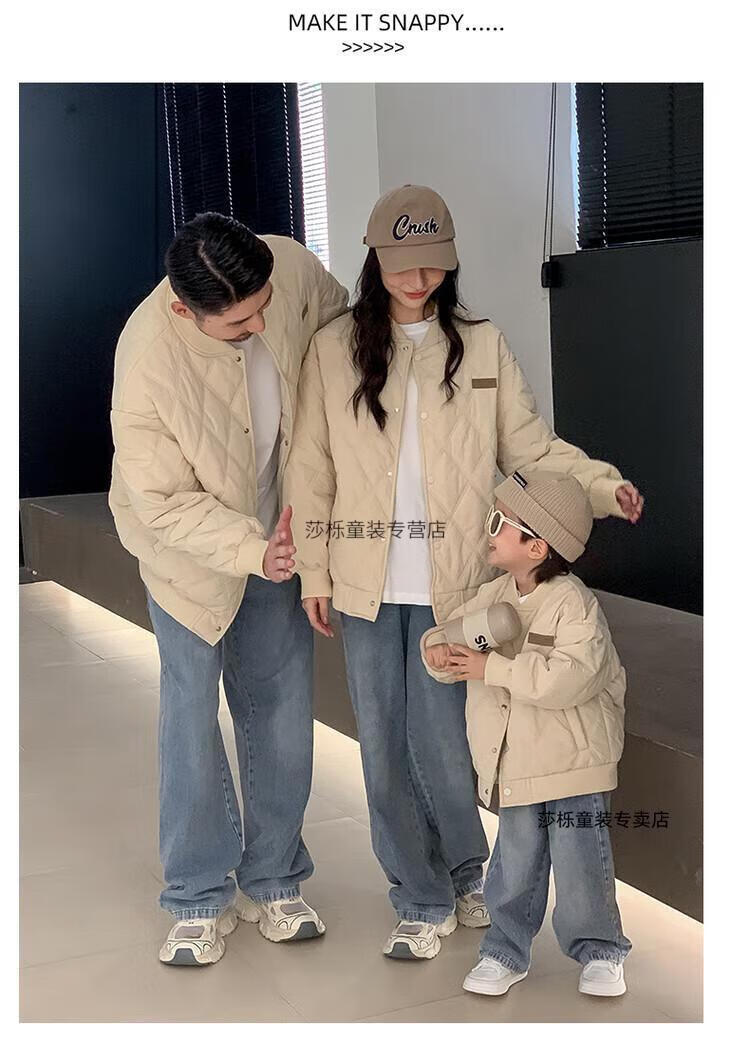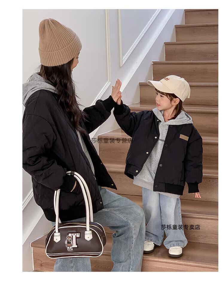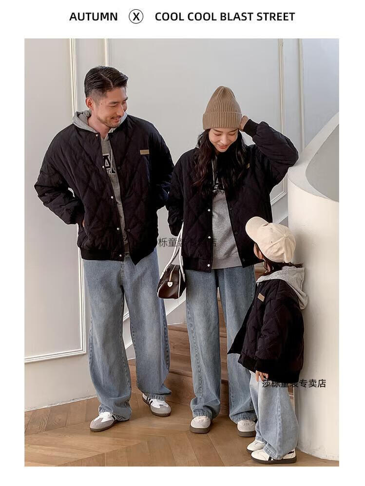 G.duck children's clothing parent-child clothing family of three or four family clothing children's jacket autumn and winter boys and girls baseball uniforms Korean fashion TMT cotton coat khaki 165 S