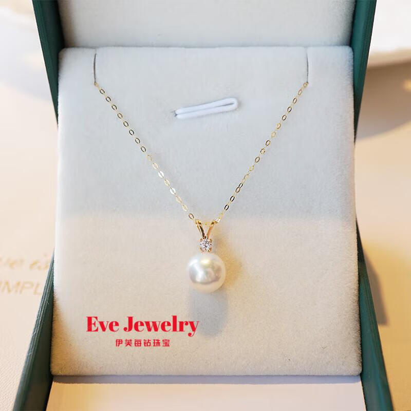 Pearl necklace 18k gold natural freshwater pendant single 18K gold exquisite white gold pearl pendant with K gold chain 10-11mmx45cm