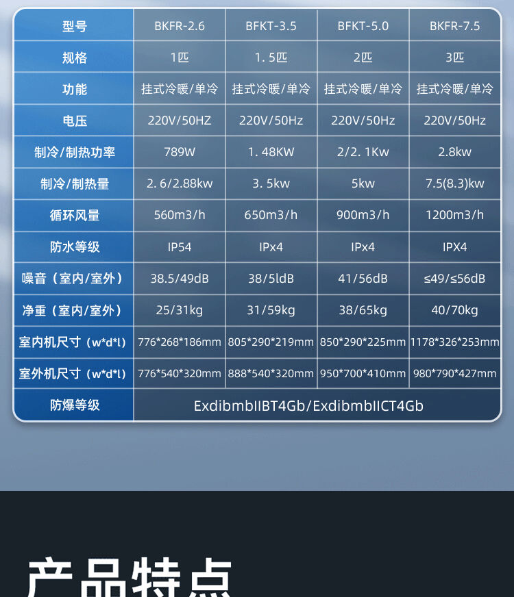 Industrial explosion-proof air conditioner 1p1.5p wall-mounted air-conditioning substation 3P5P cabinet chemical plant paint room 2P wall-mounted Midea 1P explosion-proof air conditioner