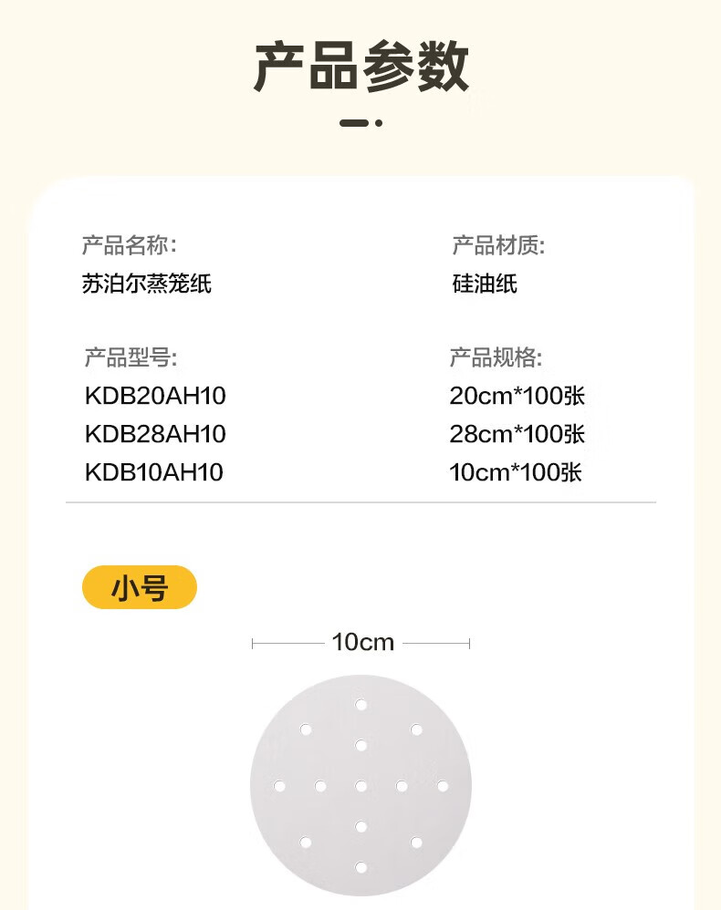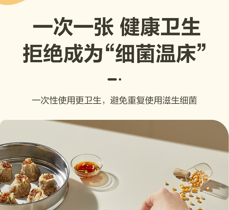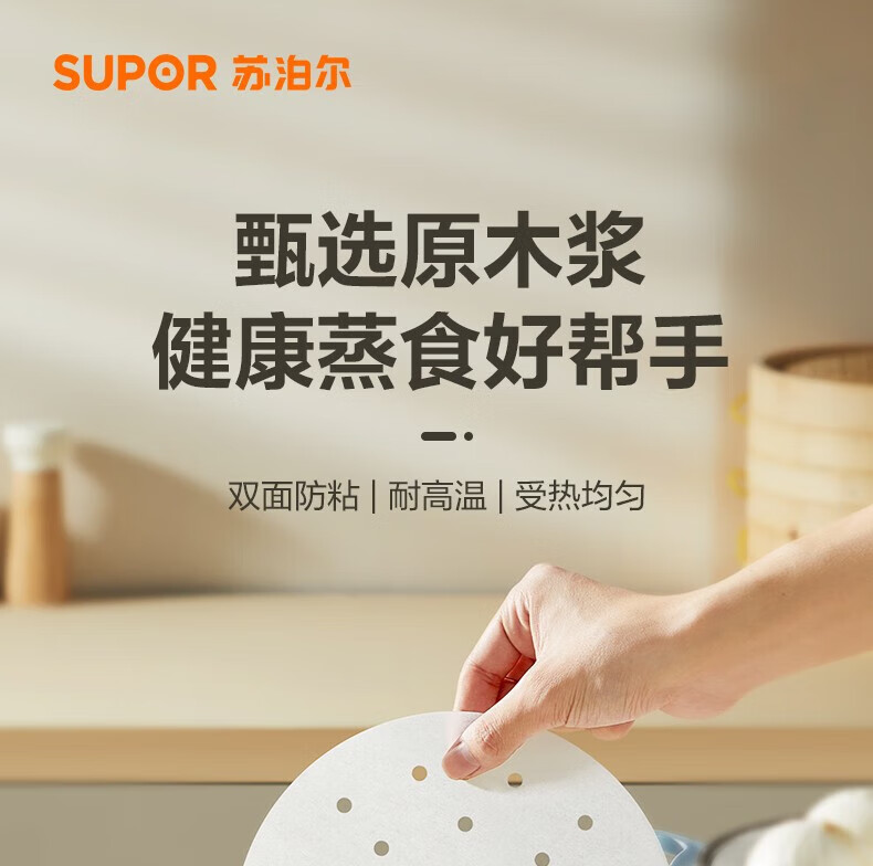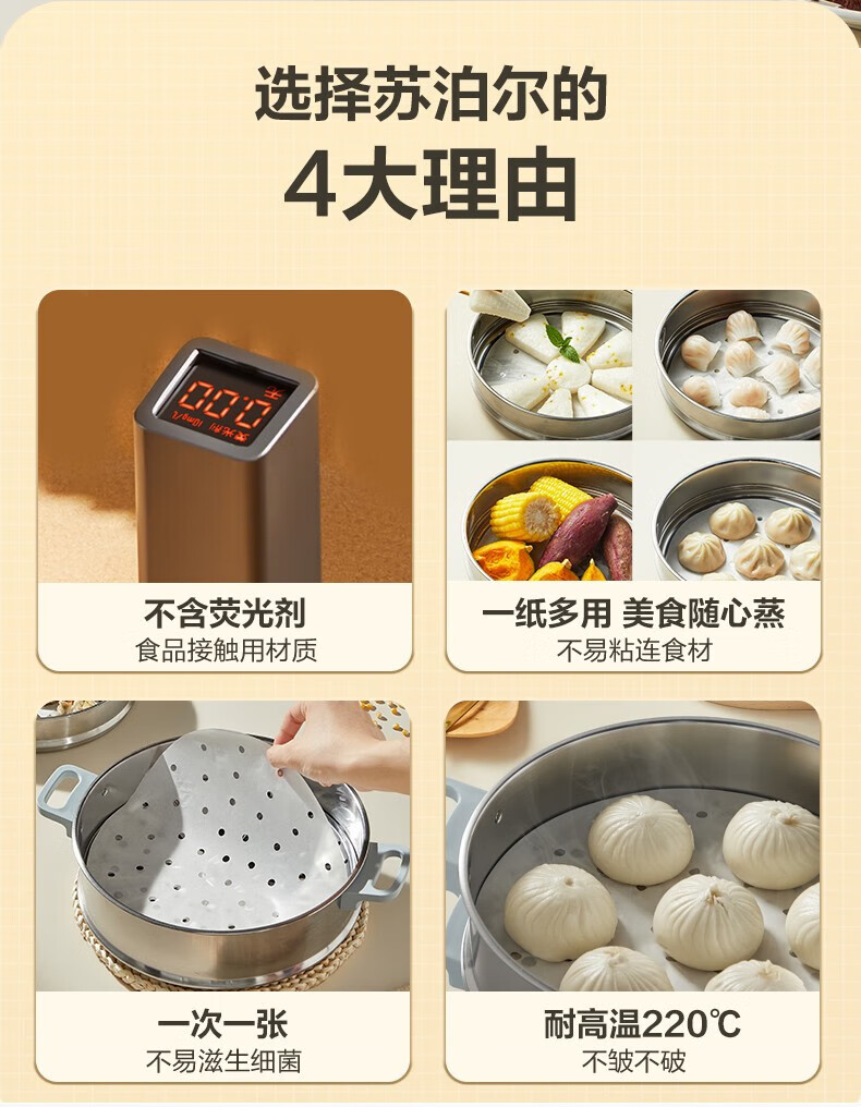 SUPOR household food-grade steamer paper, bun pad paper, steamed bun paper, steamed bun paper, cage paper, 100 sheets at a time, small steamer paper, diameter 10CM*100 sheets