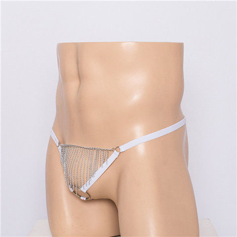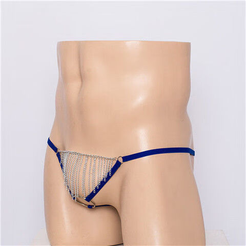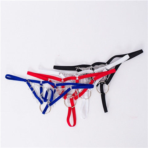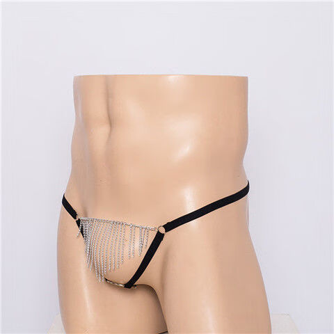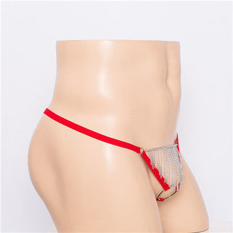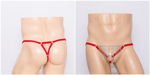Magnificent men's thong with one strap, sexy transparent pouch, bullet separation, hoop, tassel lace, red, one size fits all