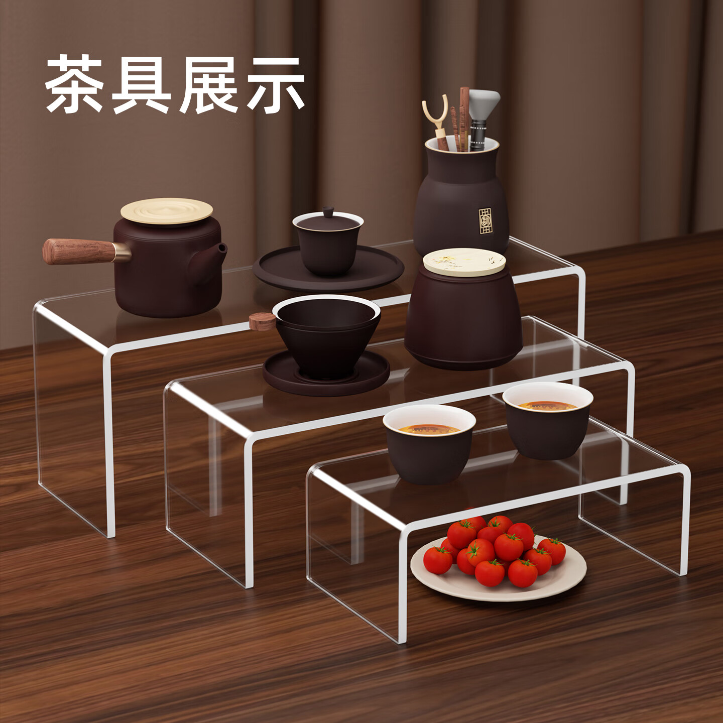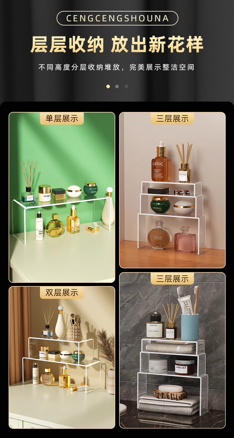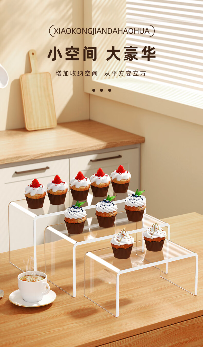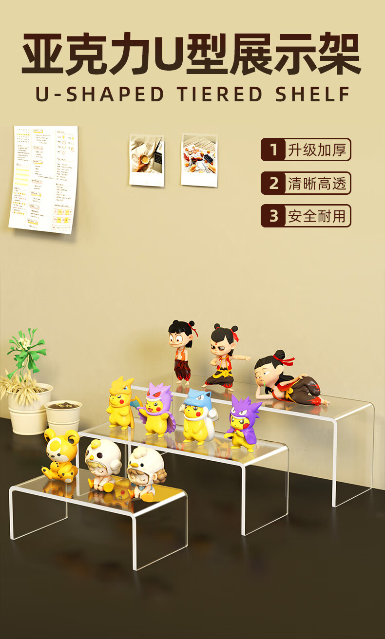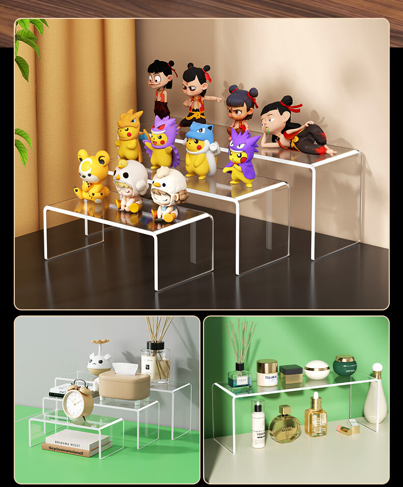 Du Shui Holmium Acrylic Display Rack Trapezoidal Multi-layer Transparent Small Ornaments Model Hand Desktop Storage Rack Elevated Display Rack Length 15cm Width 10cm Height 10cm Thickness 5mm