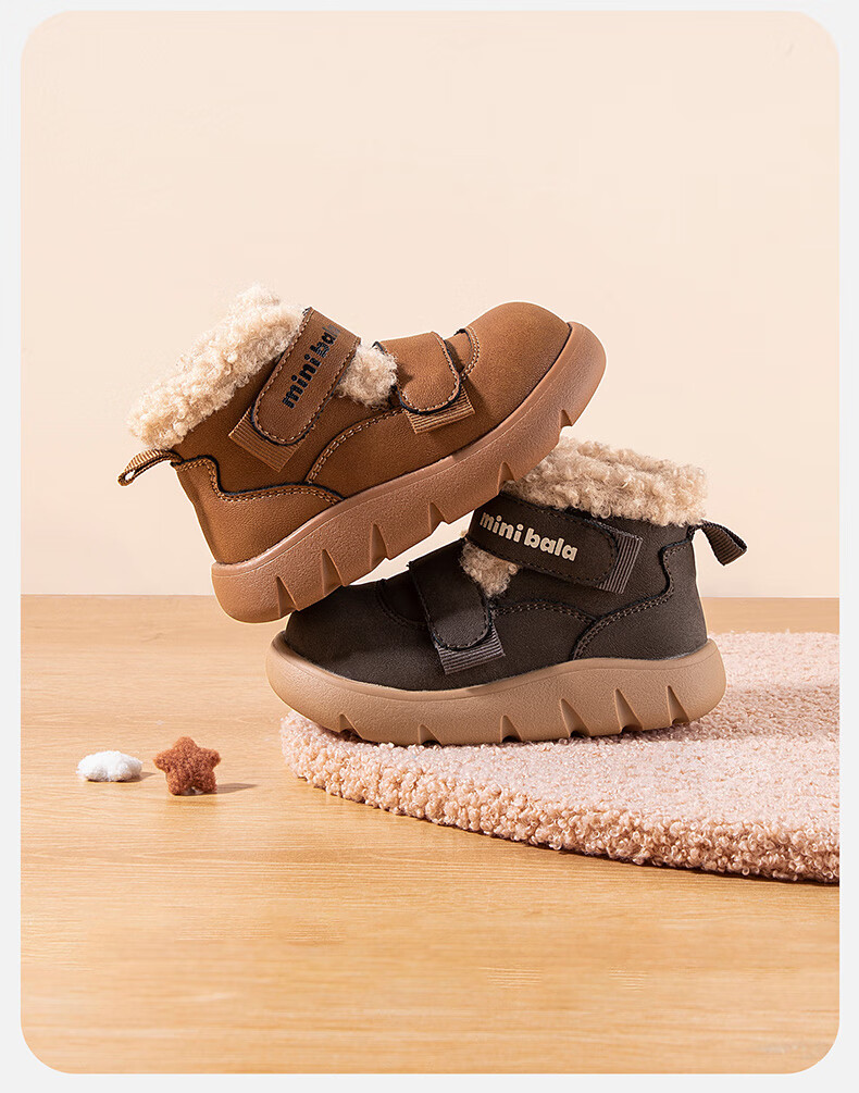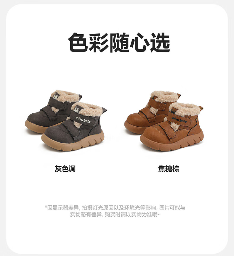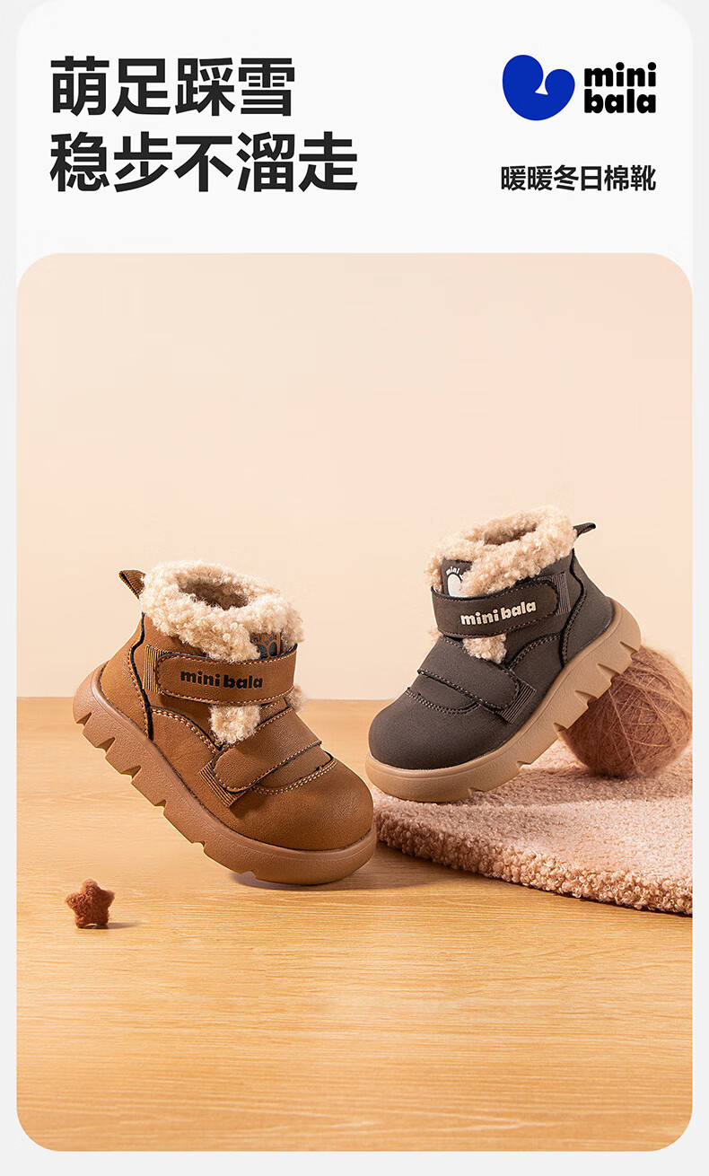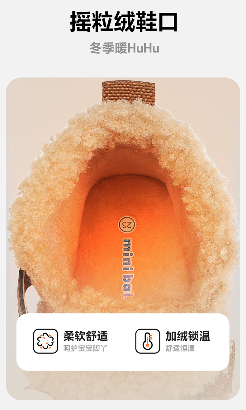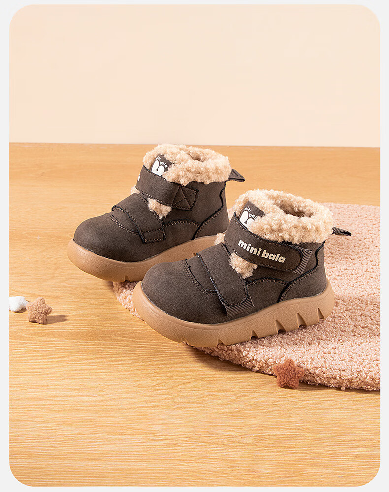 Minibala (minibala) children's shoes, children's cotton boots, winter new velvet warm snow boots for boys and girls, comfortable soft elastic cotton shoes for children and middle-aged children, gray size 23, suitable for feet 12.7-13.2cm long
