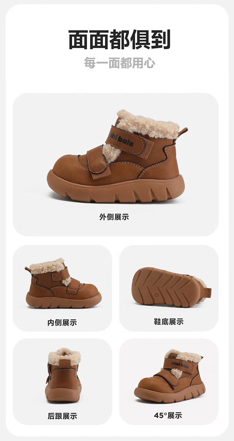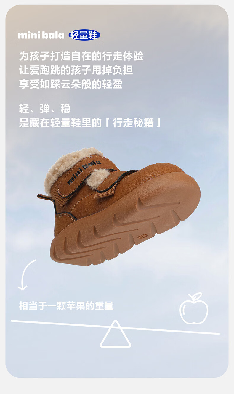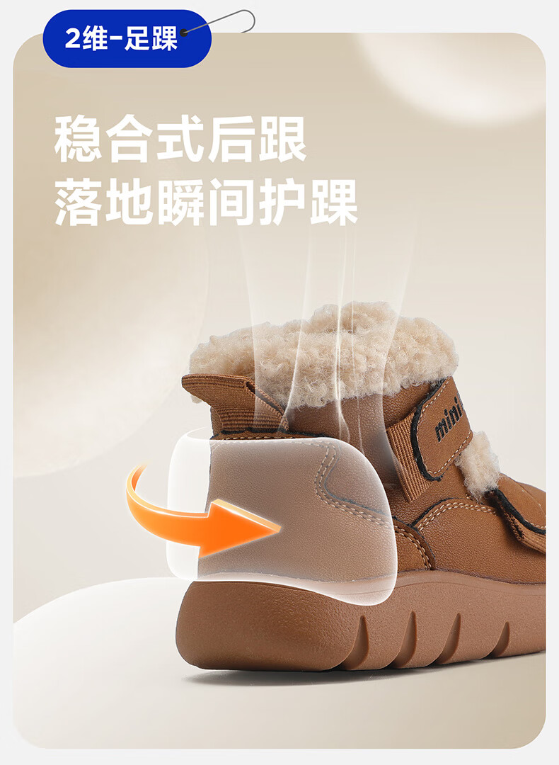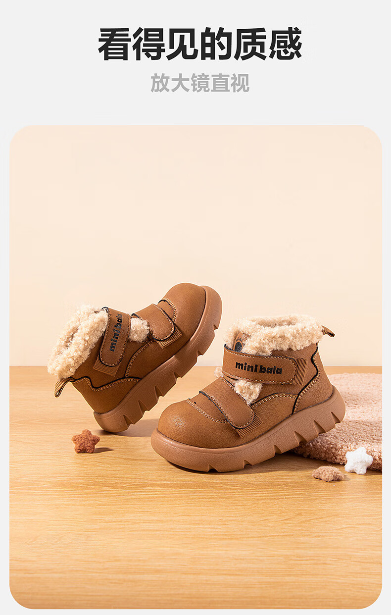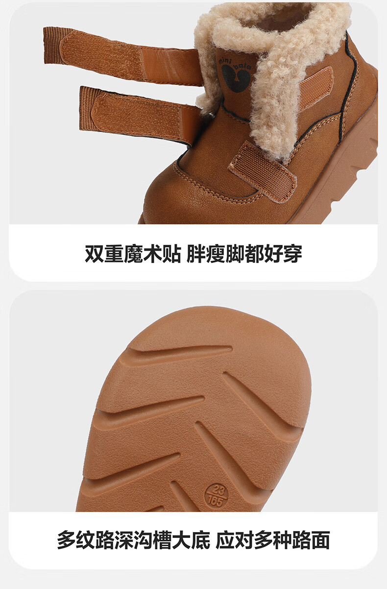 Minibala (minibala) children's shoes, children's cotton boots, winter new velvet warm snow boots for boys and girls, comfortable soft elastic cotton shoes for children and middle-aged children, gray size 23, suitable for feet 12.7-13.2cm long