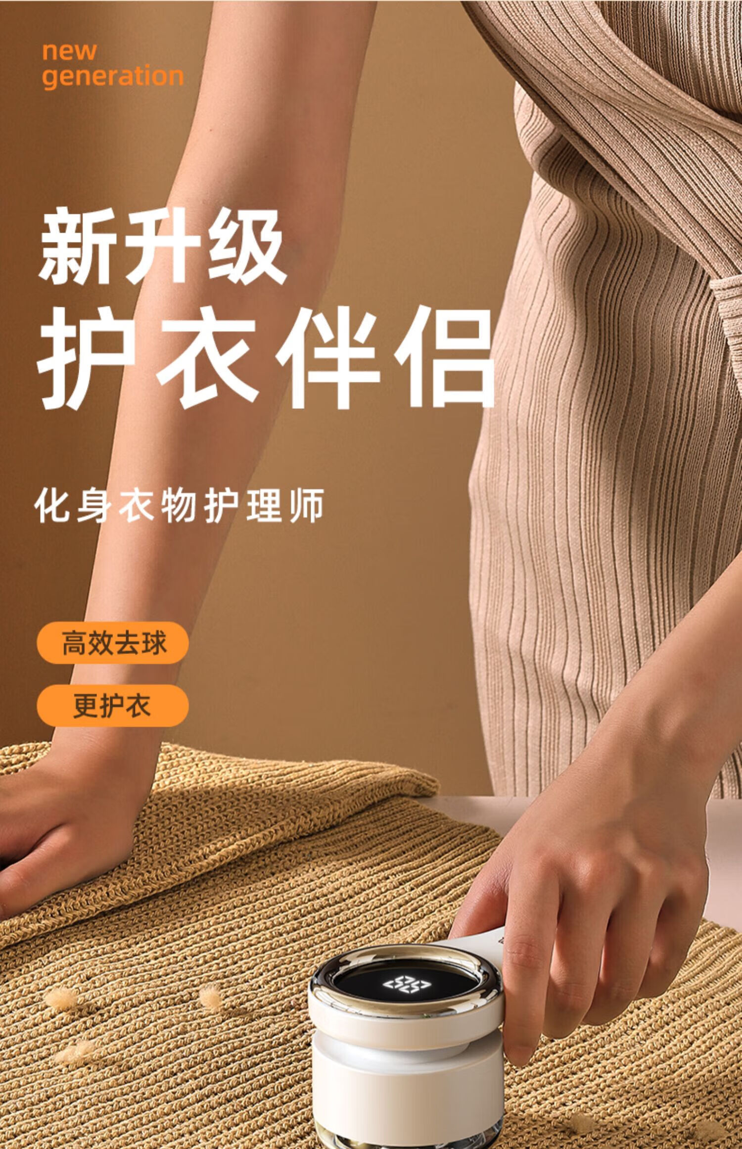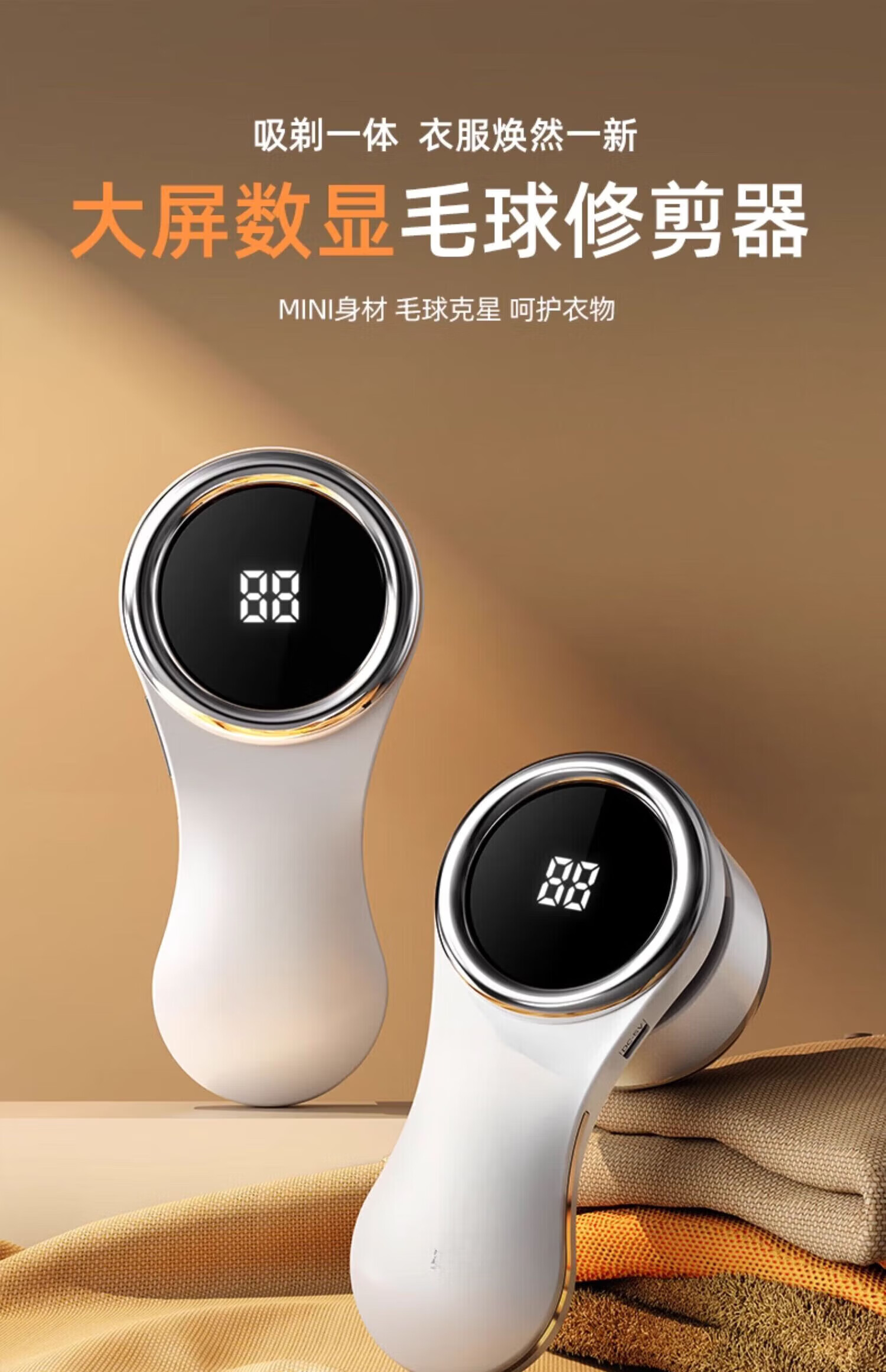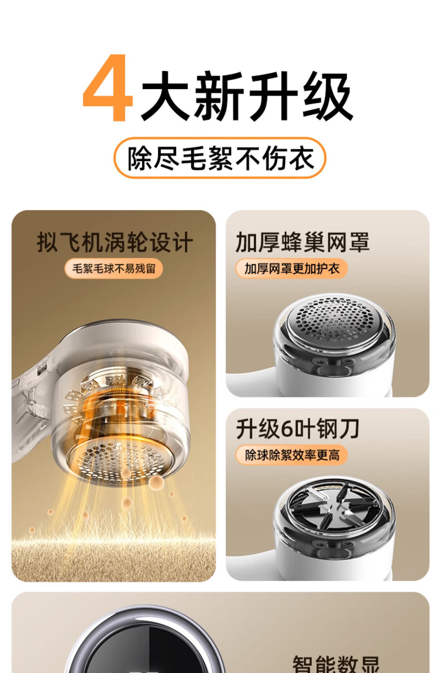 GERTHRON, a German brand, hair ball trimmer, shaver, clothes pilling remover, home shaving hair remover, ball remover, smart digital display, removes balls without damaging clothes, Wutong Mi, upgraded to the fourth generation, 6-blade stainless steel head + suction and shaving dual-purpose