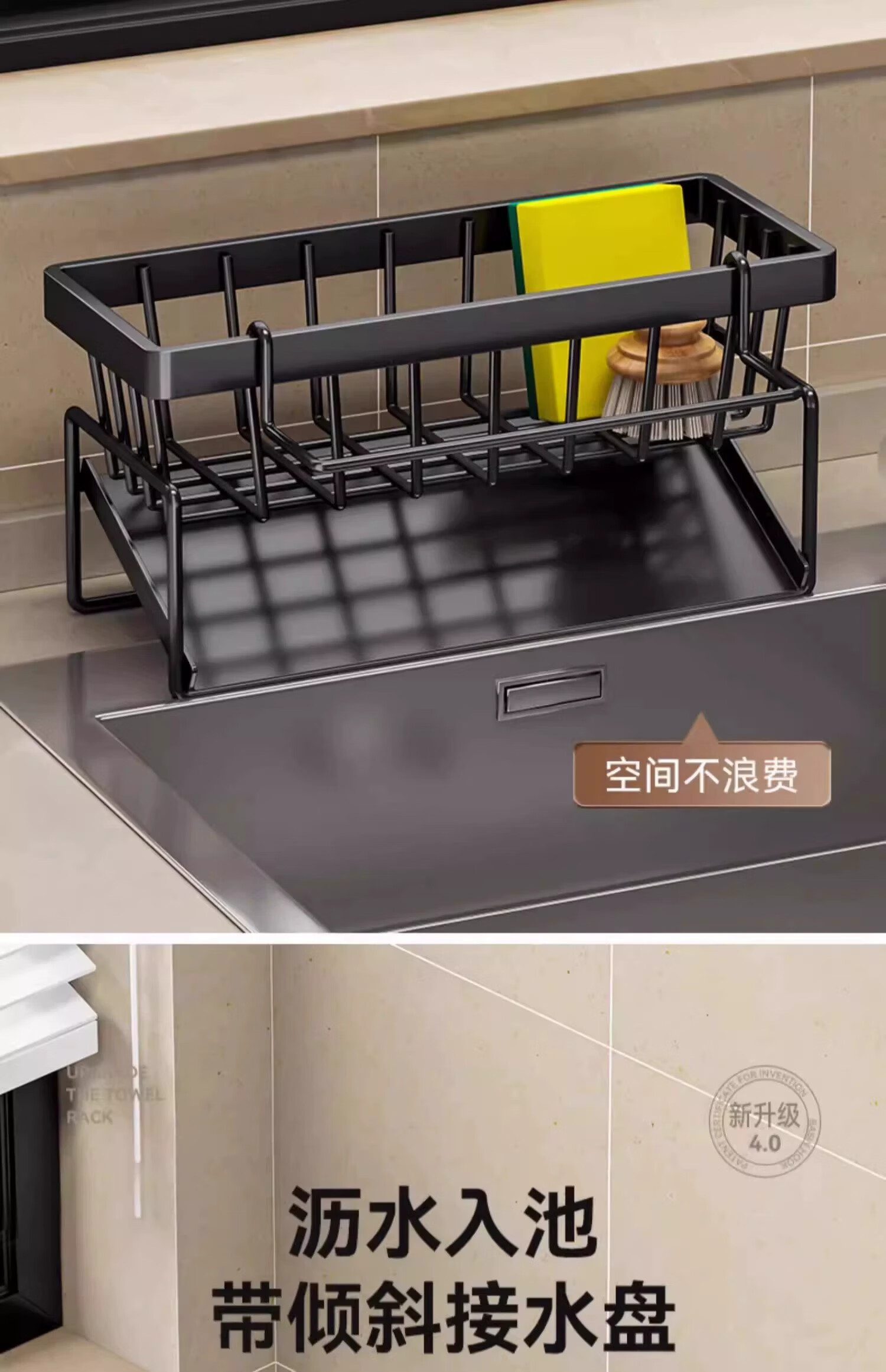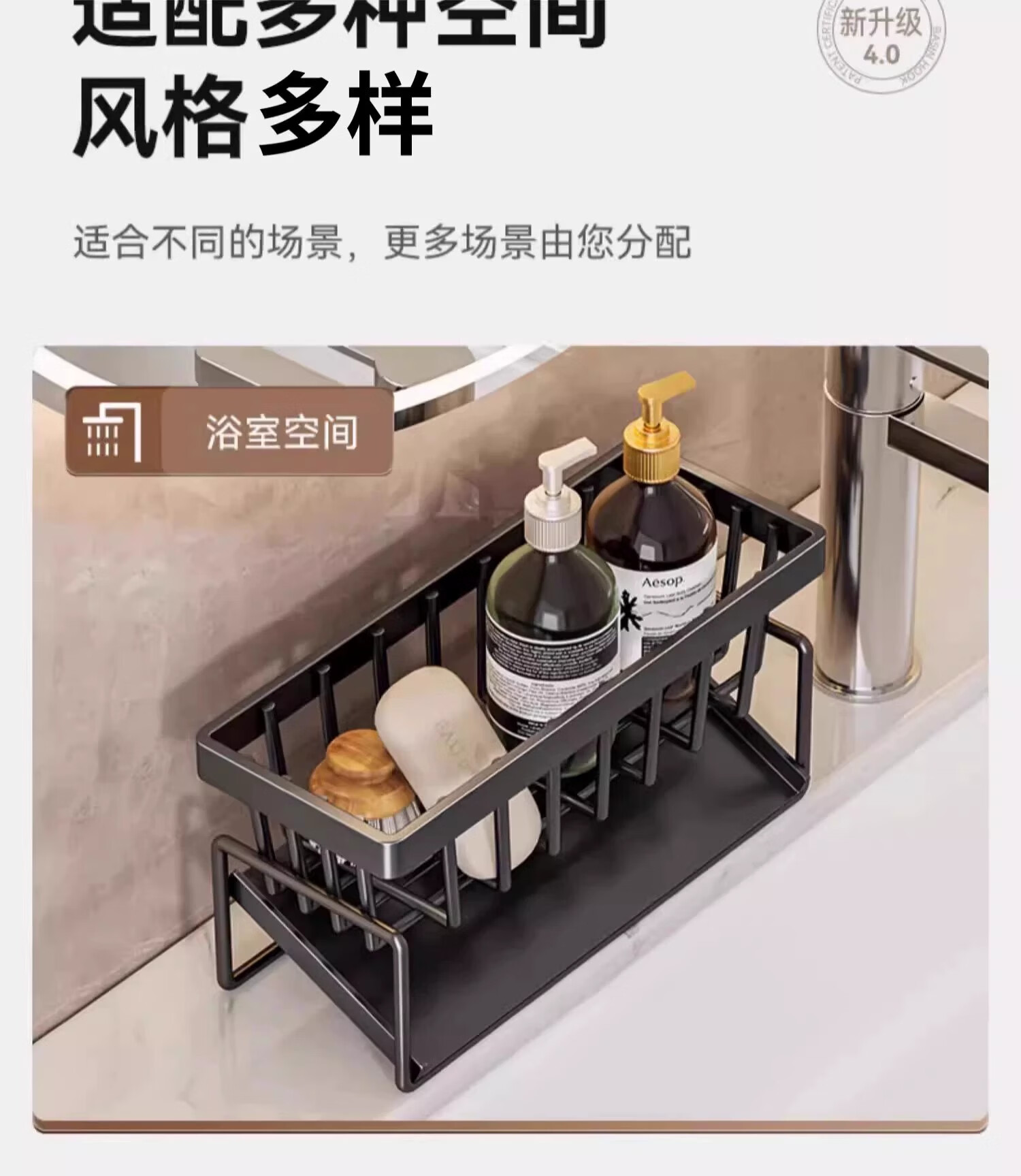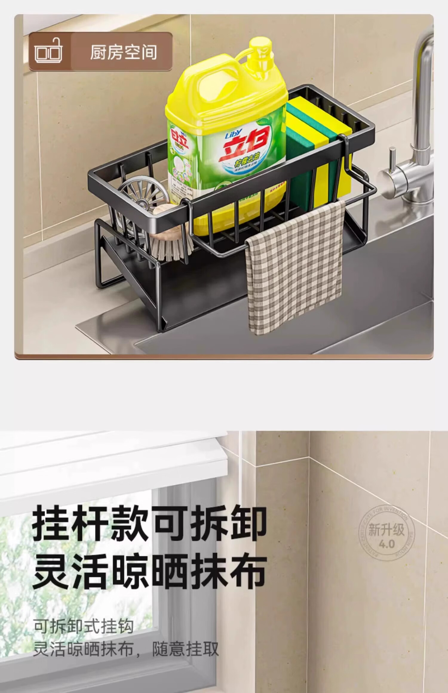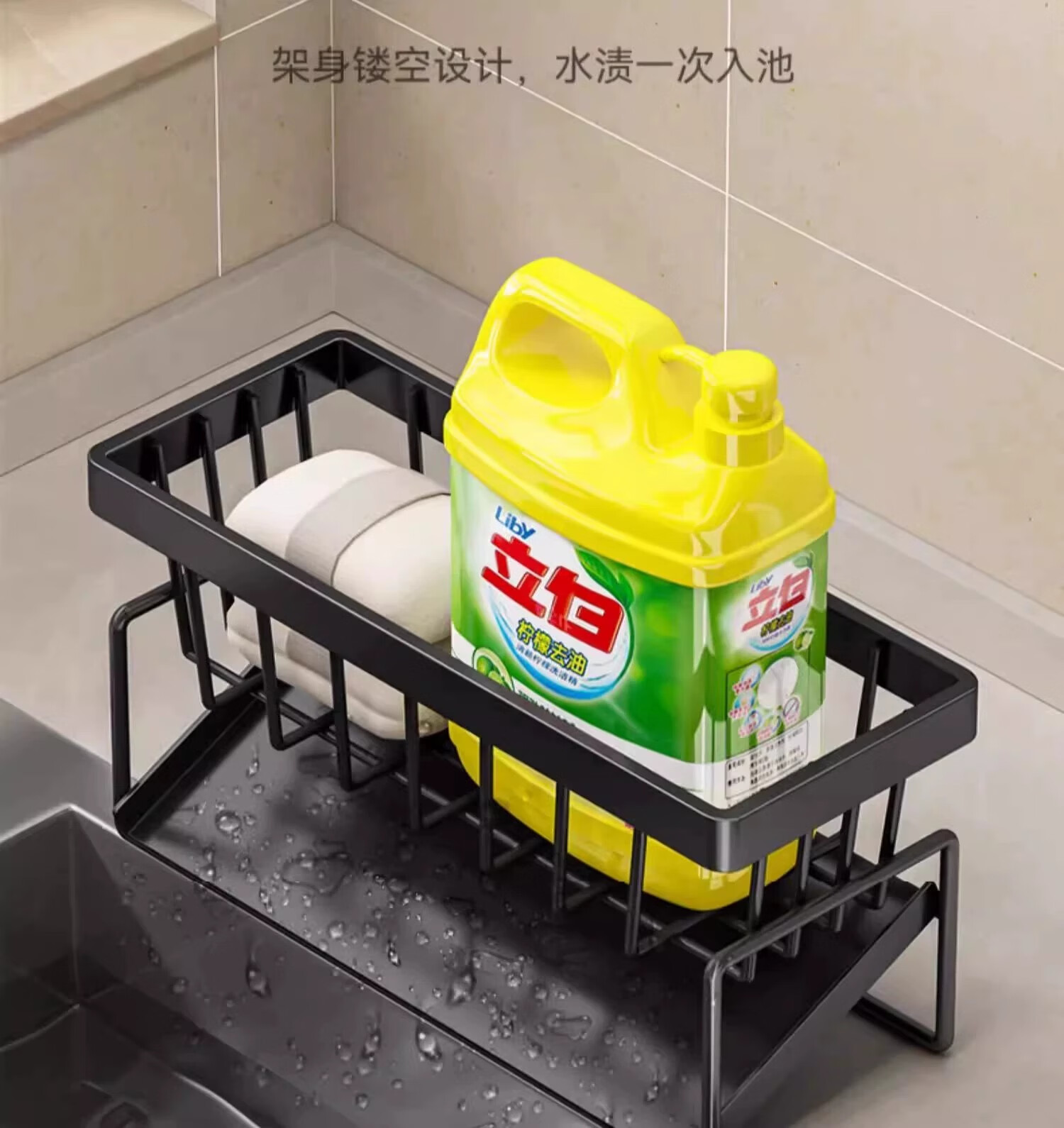 Tianba Muge faucet storage rack sink rag drain rack sink kitchen dishwashing steel ball storage rack countertop no punching plastic type drain basket with rod-gun gray