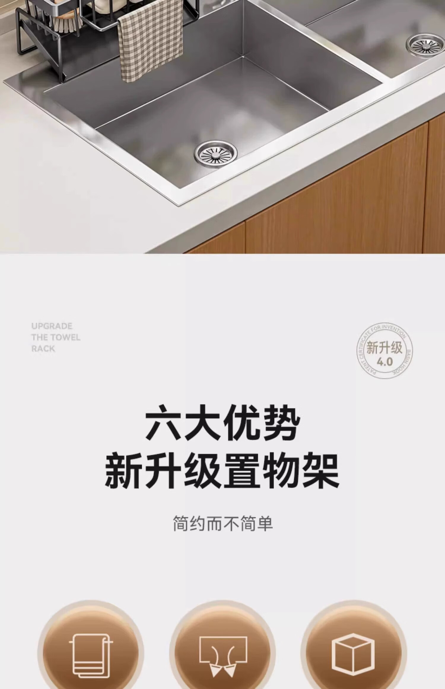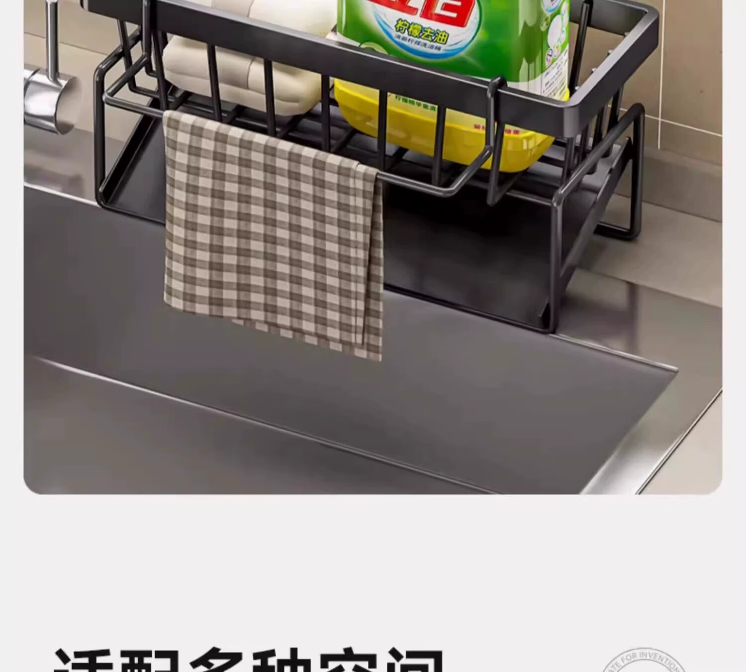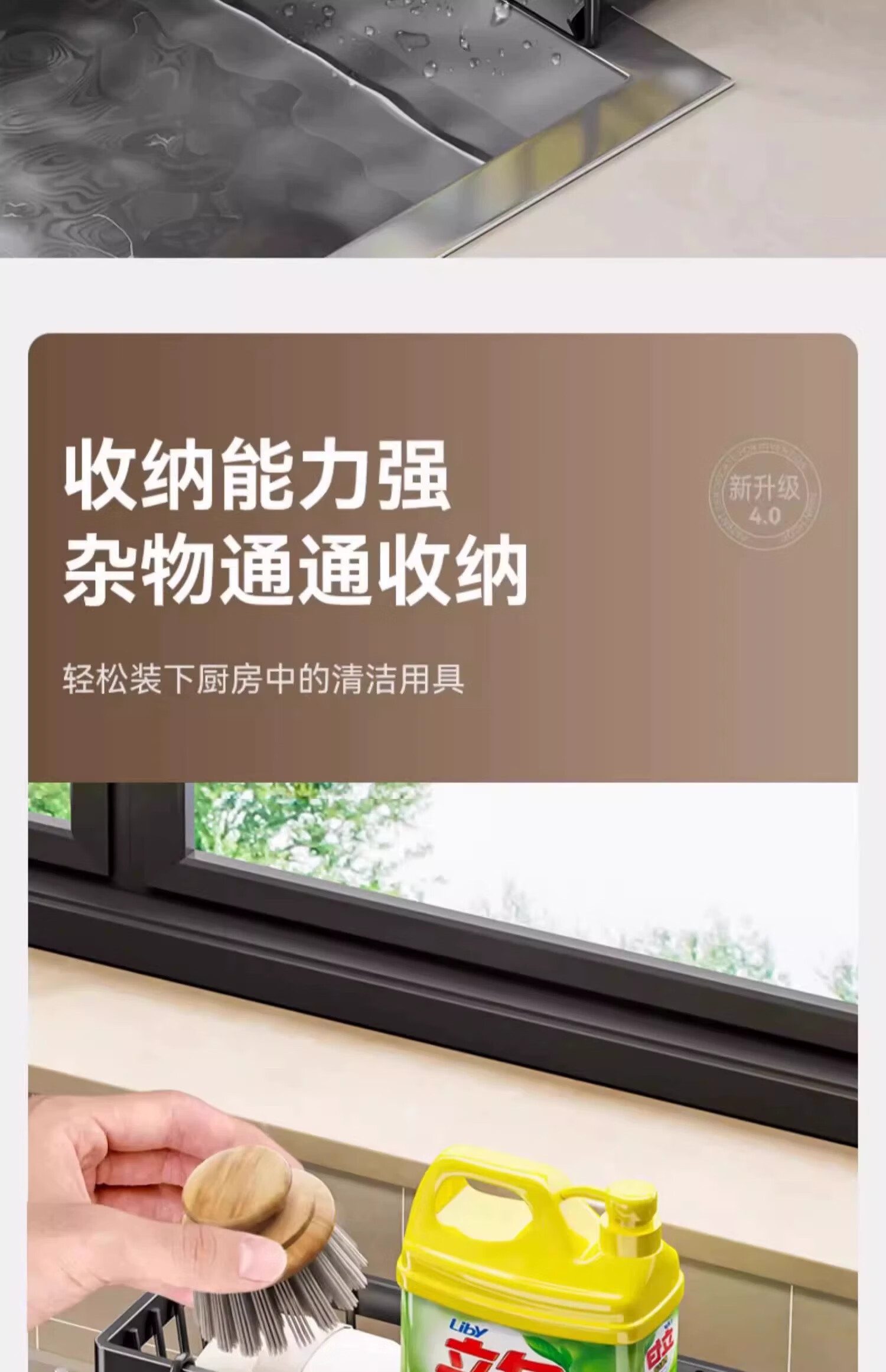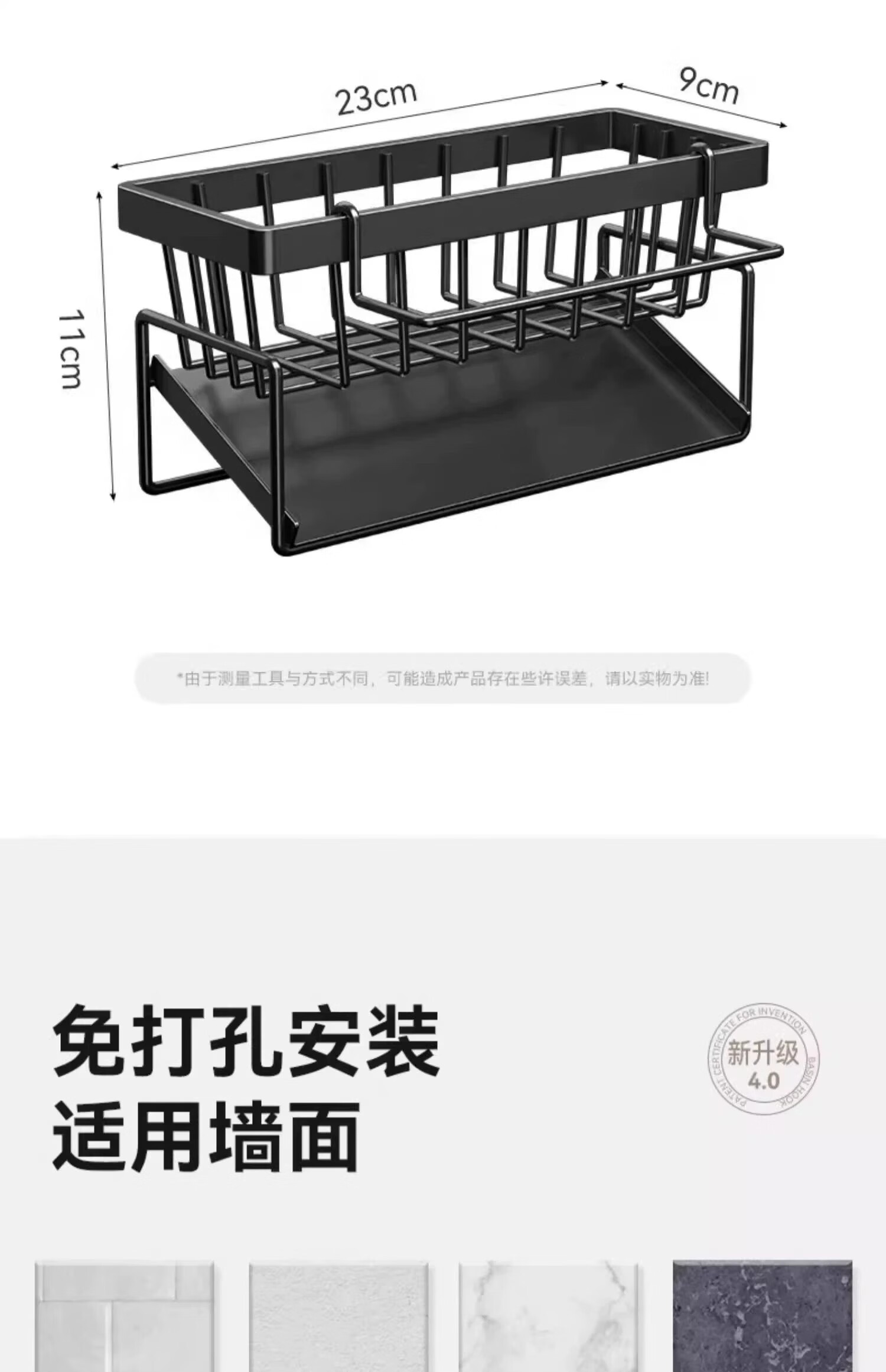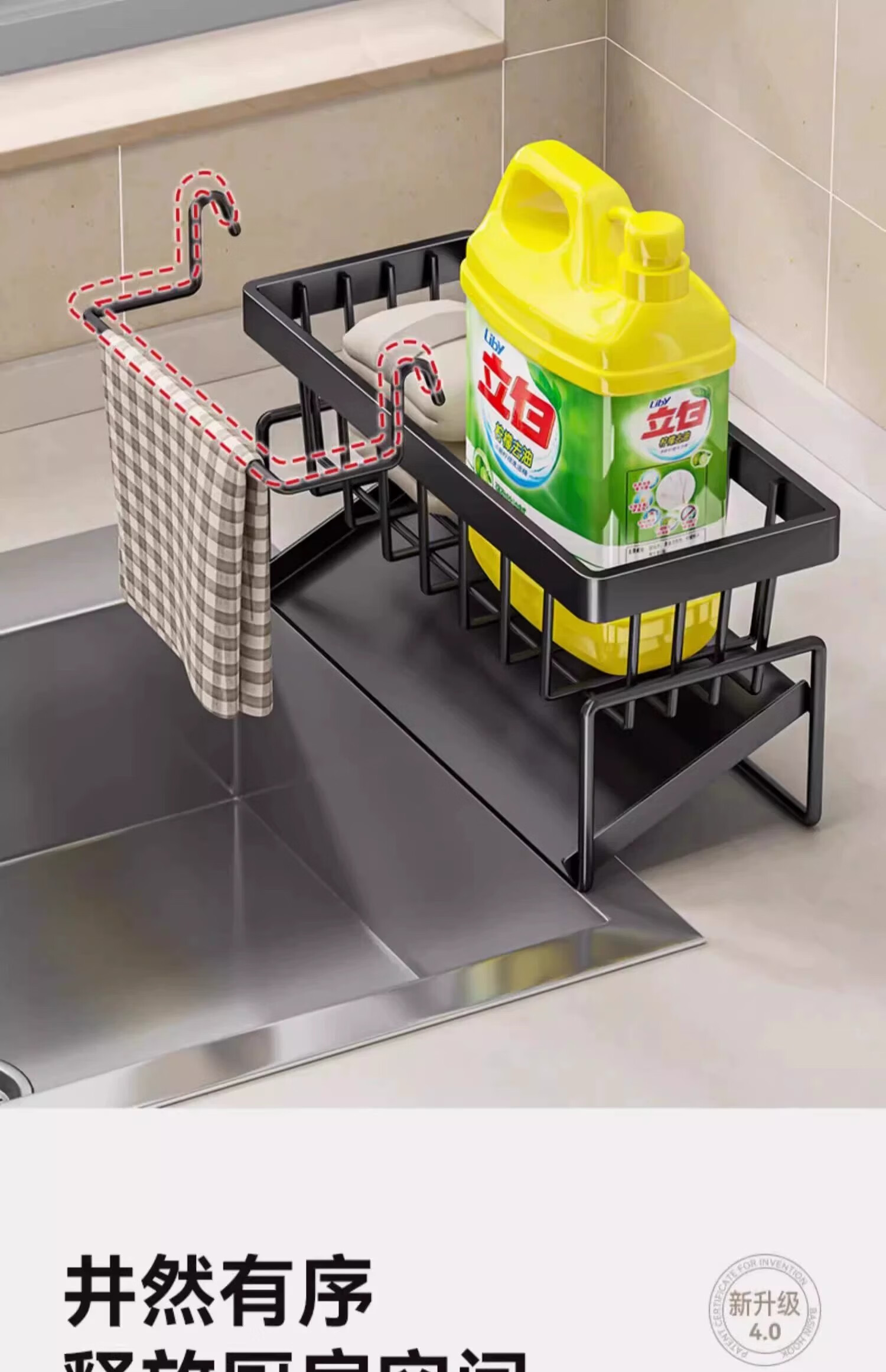 Tianba Muge faucet storage rack sink rag drain rack sink kitchen dishwashing steel ball storage rack countertop no punching plastic type drain basket with rod-gun gray
