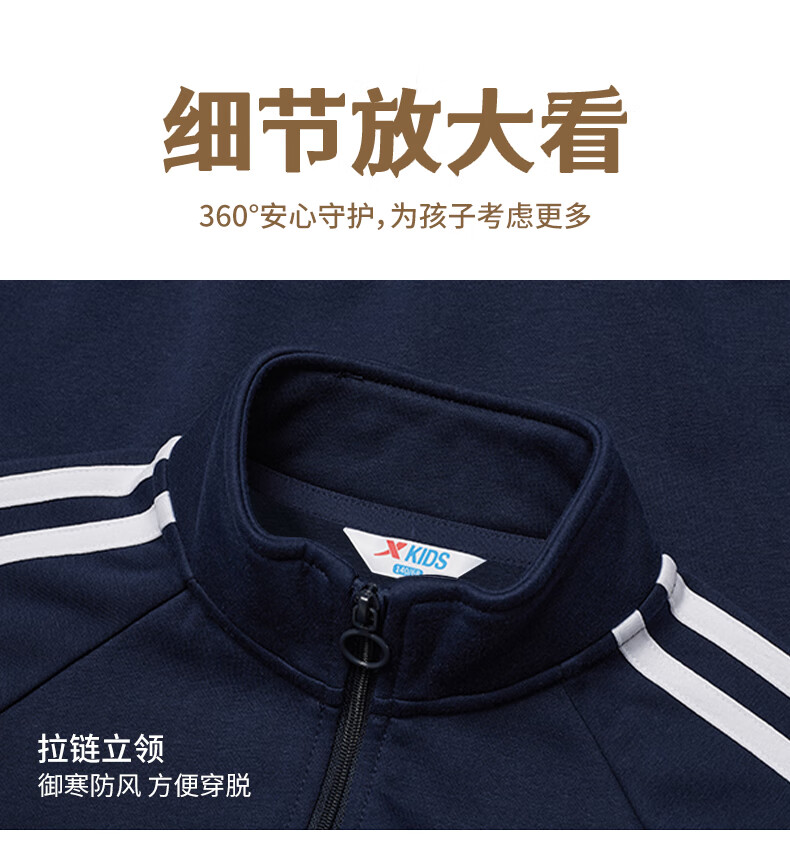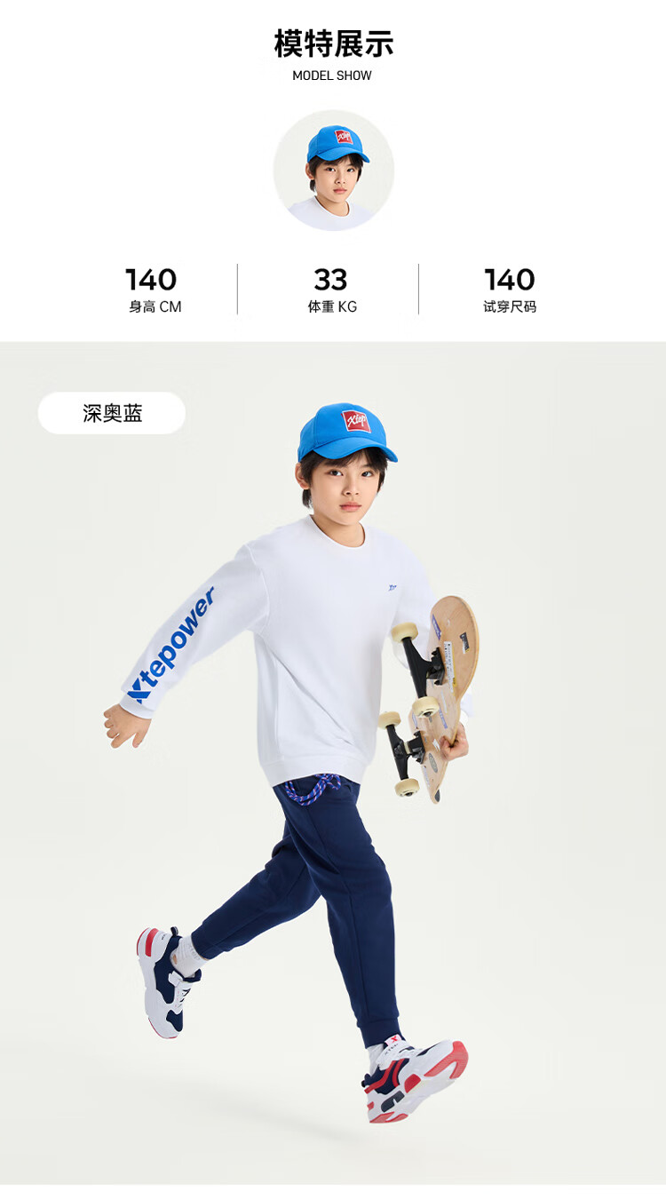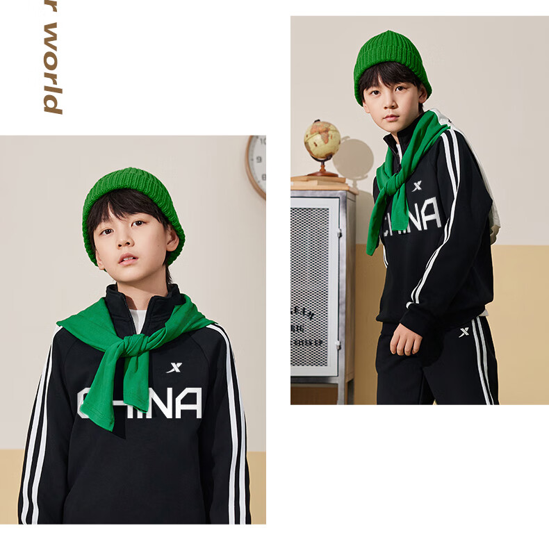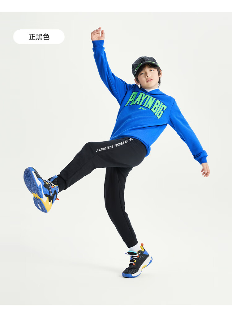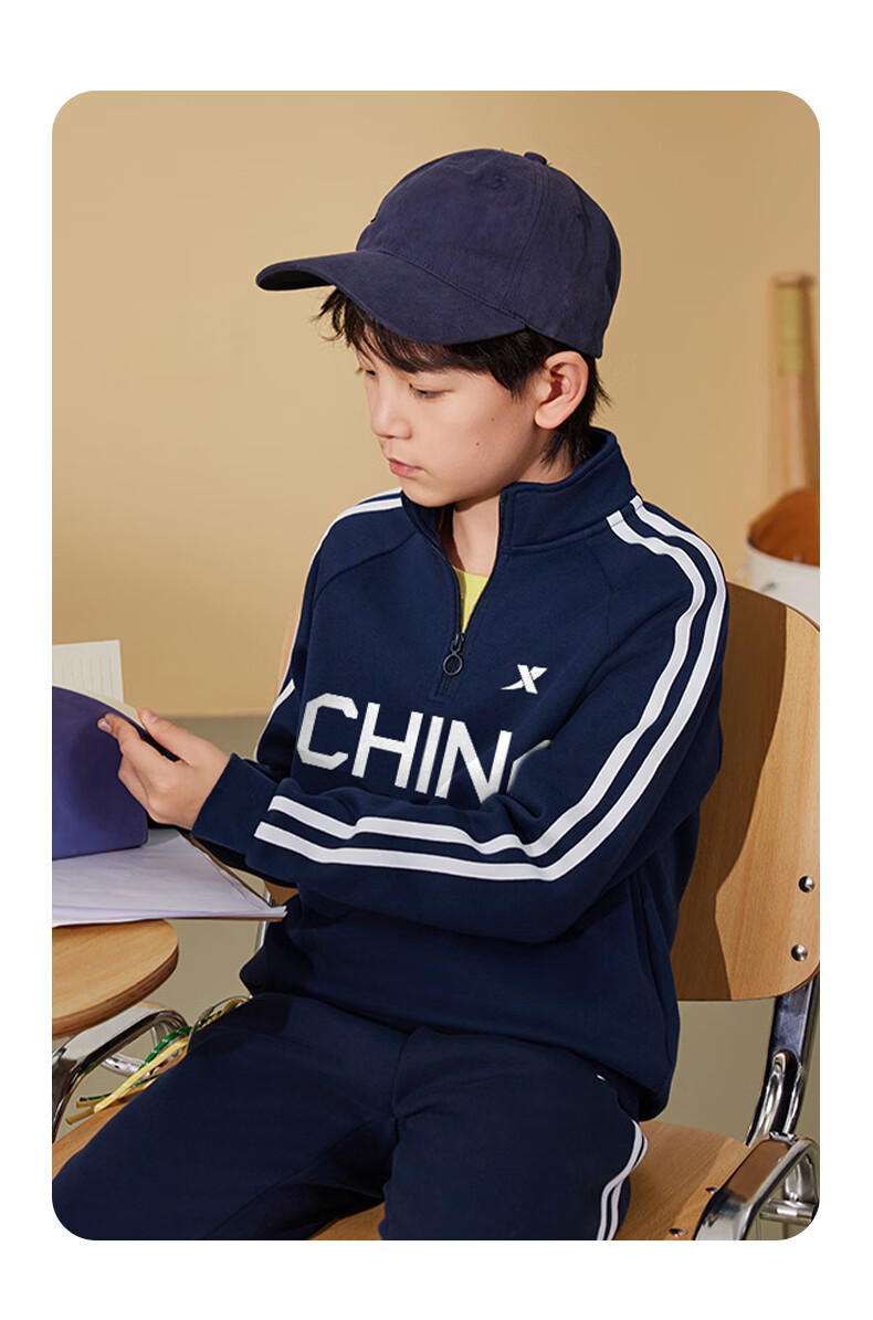 XTEP (XTEP) XTEP children's clothing boys spring and autumn sports suit 2025 new children's sweatshirt and trousers two-piece set autumn casual wear Danqing black/esoteric blue 140