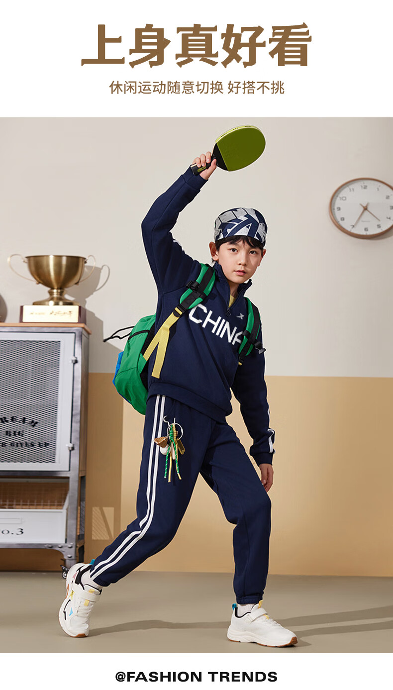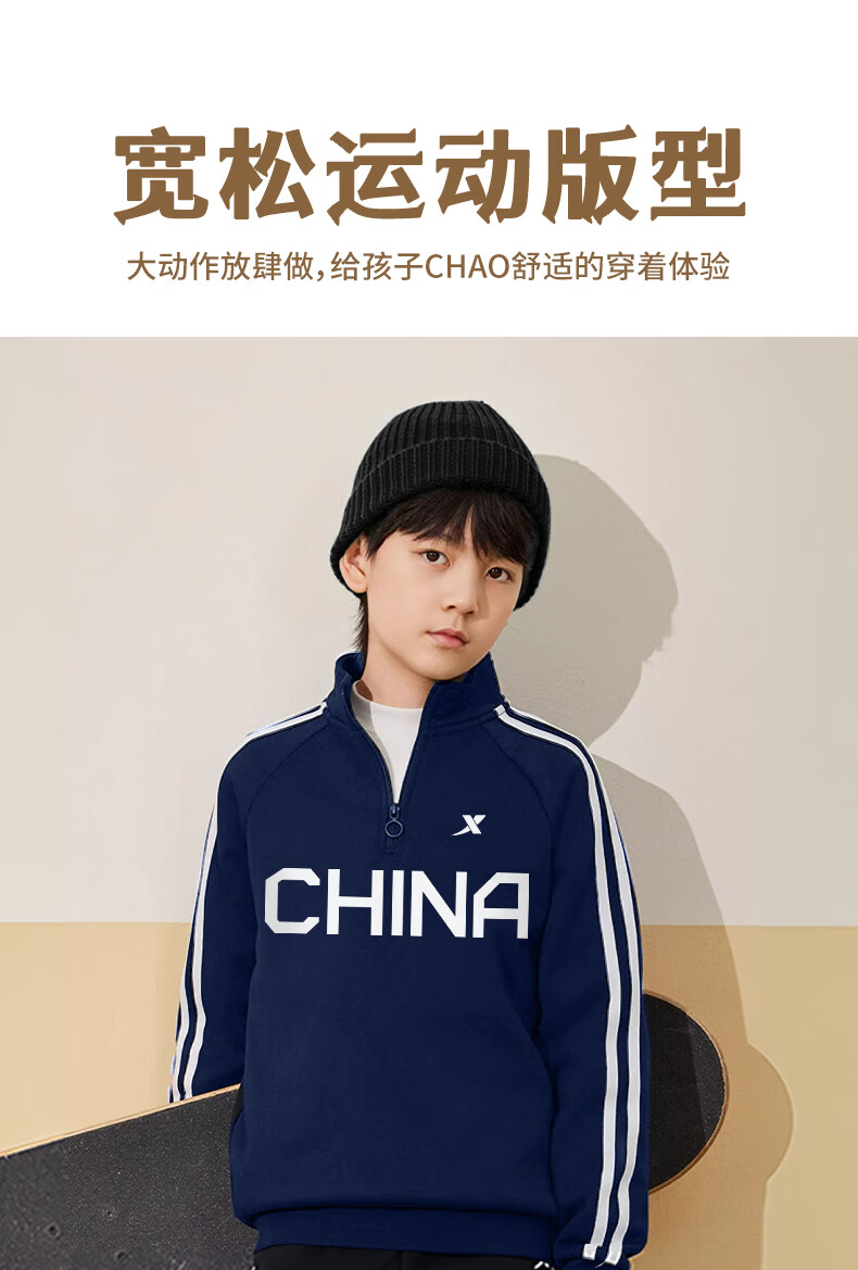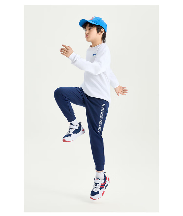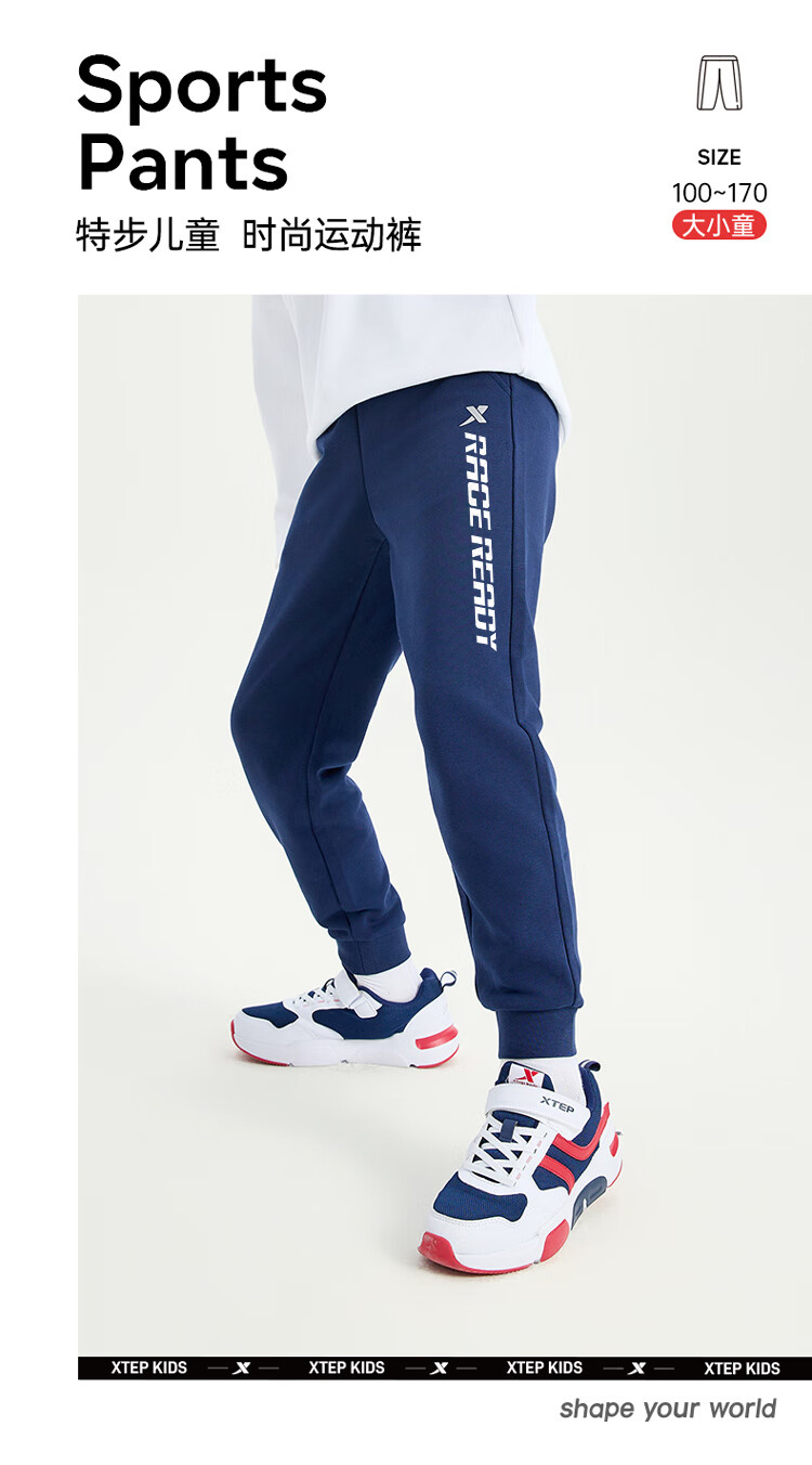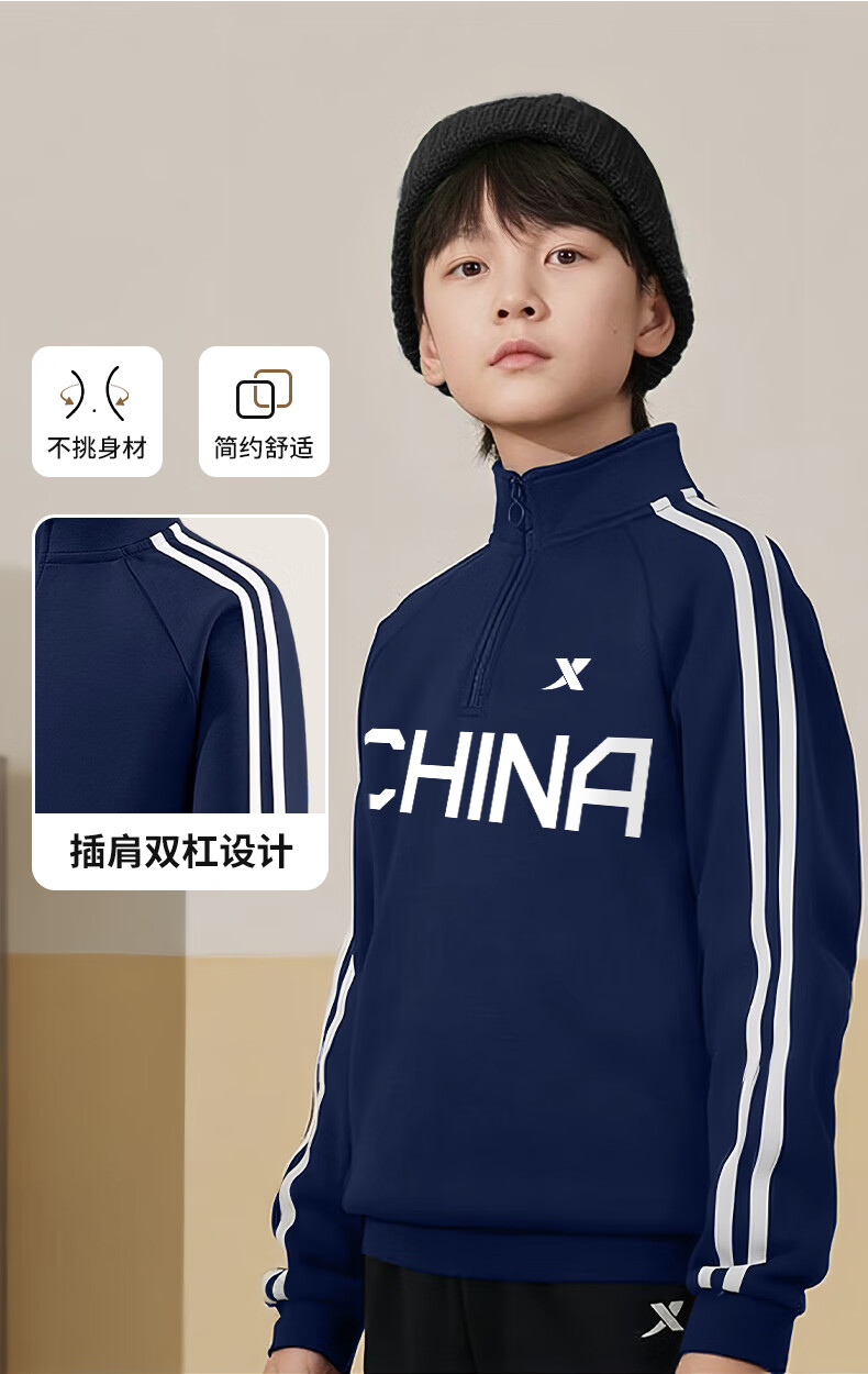 XTEP (XTEP) XTEP children's clothing boys spring and autumn sports suit 2025 new children's sweatshirt and trousers two-piece set autumn casual wear Danqing black/esoteric blue 140