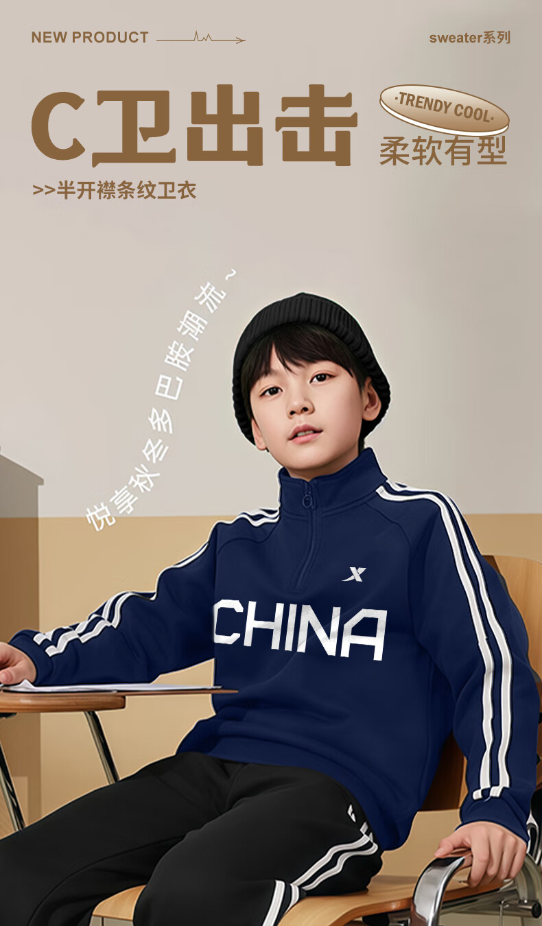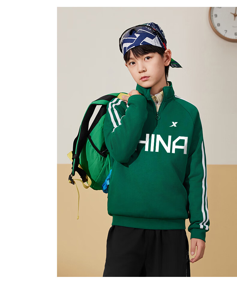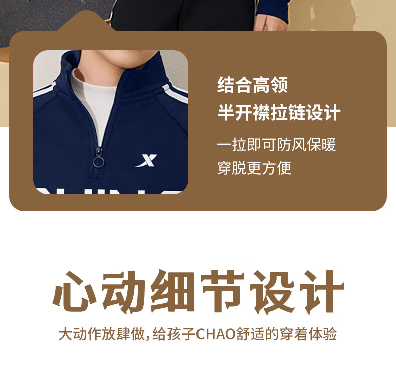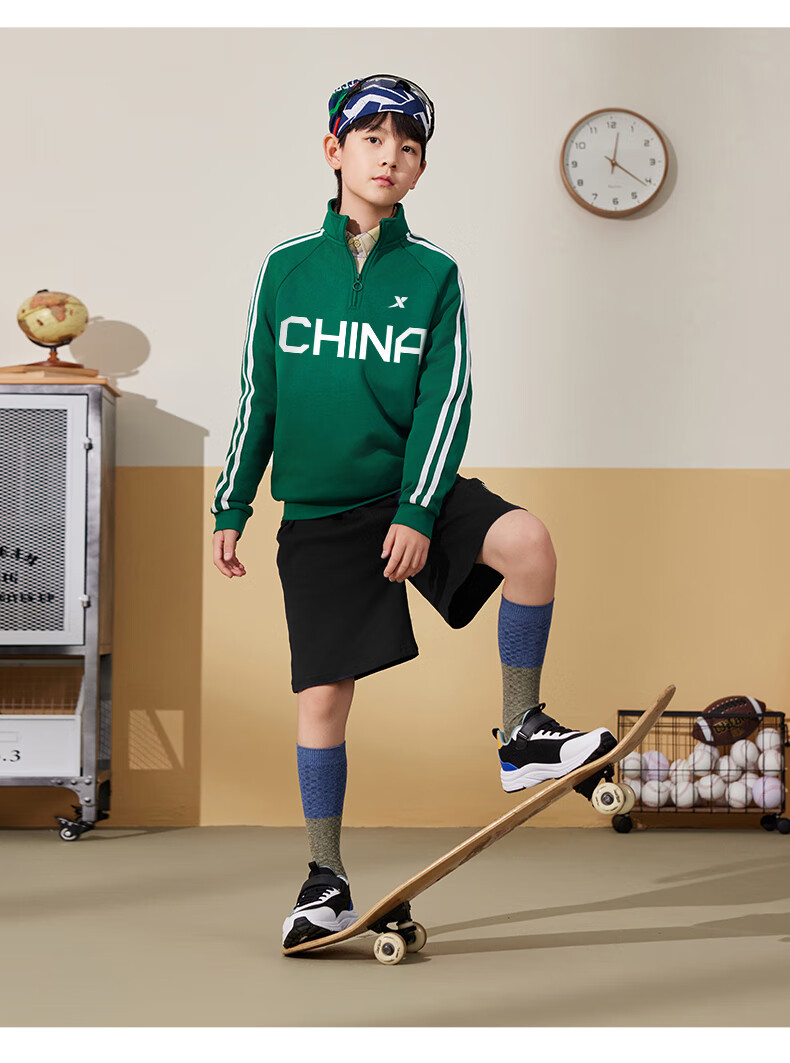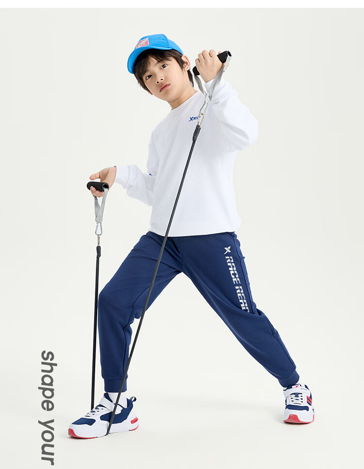 XTEP (XTEP) XTEP children's clothing boys spring and autumn sports suit 2025 new children's sweatshirt and trousers two-piece set autumn casual wear Danqing black/esoteric blue 140