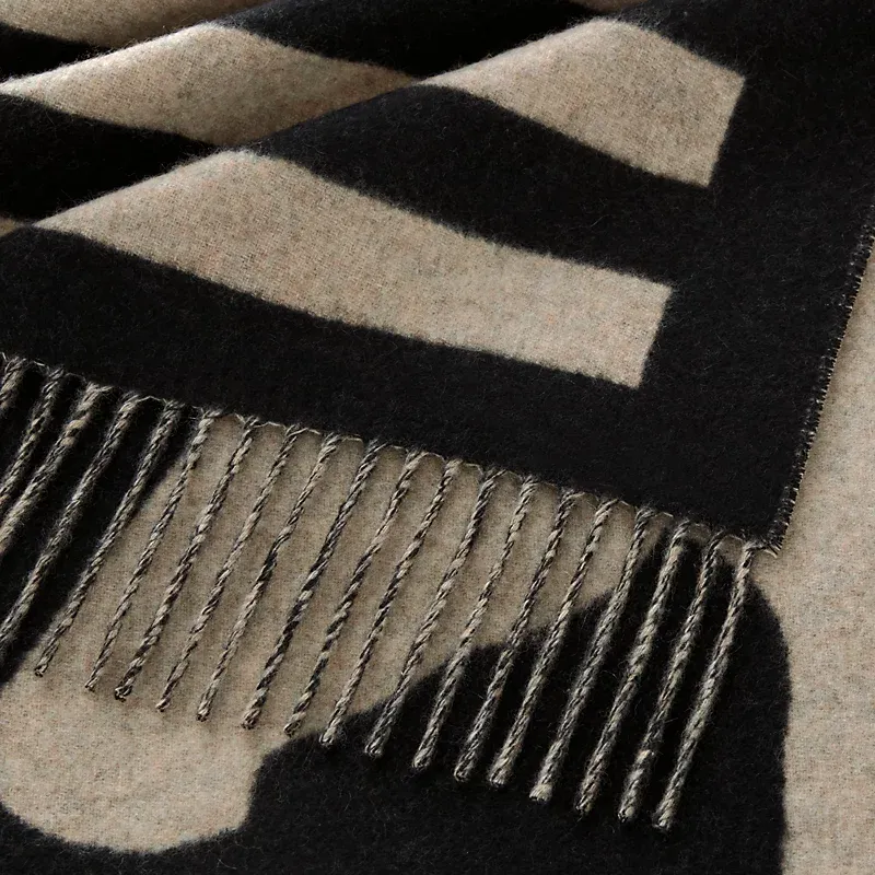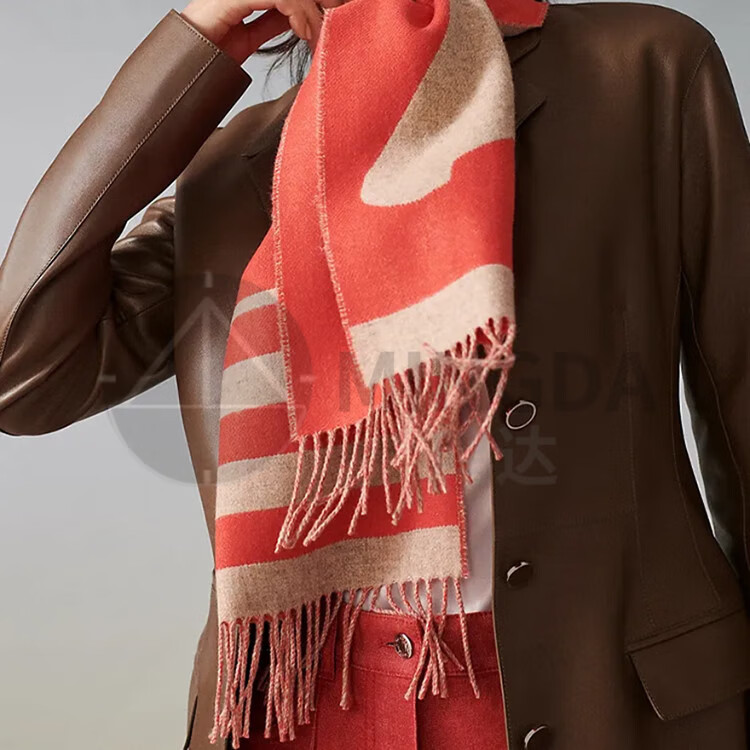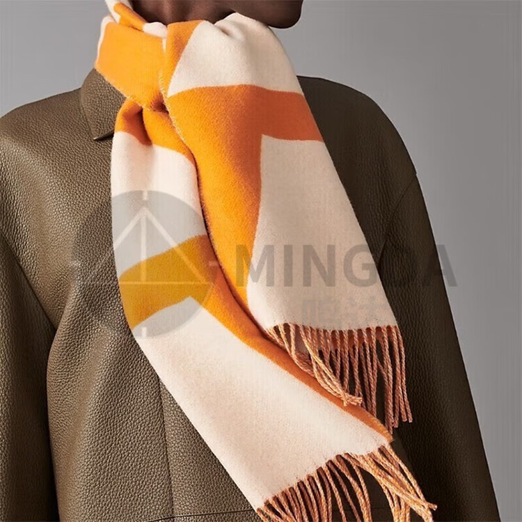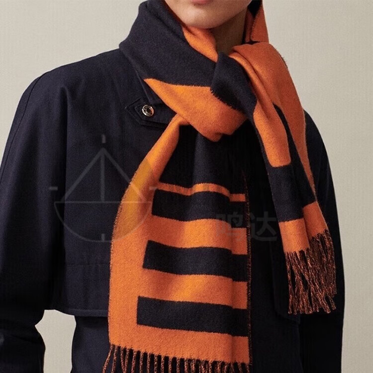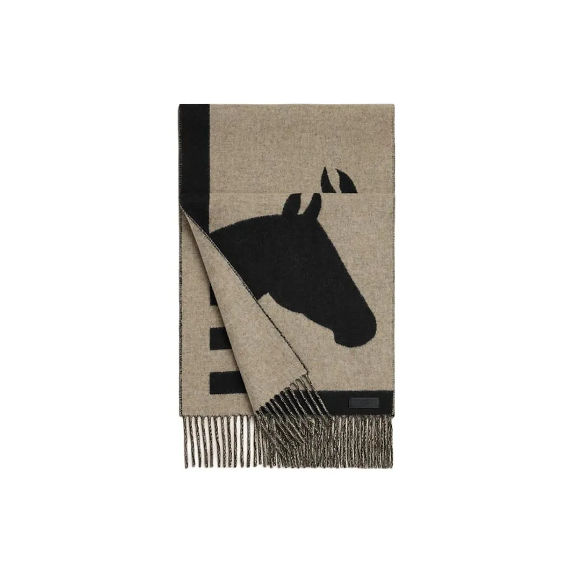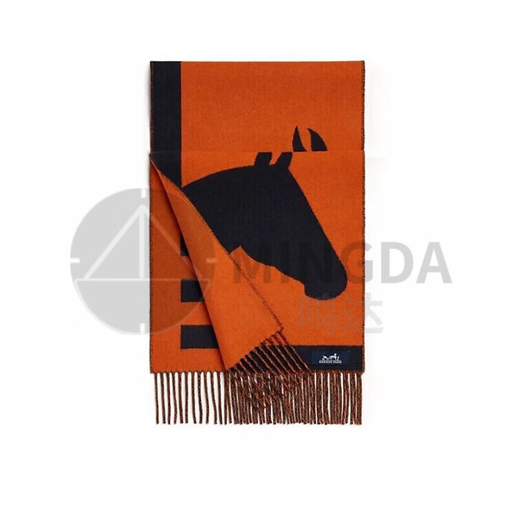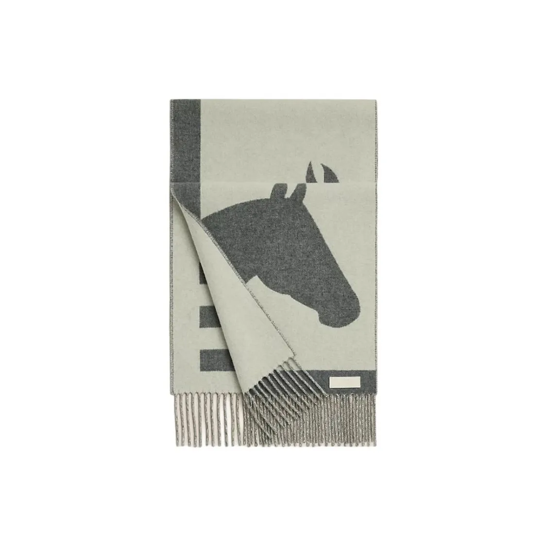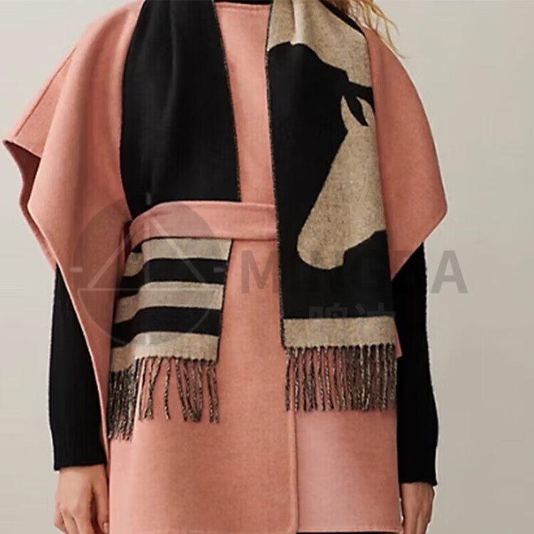 Hermes (HERMES) same style two-color warm woven cashmere fringe for men and women 26 years new horse head scarf couple style New Year gift Hermes scarf 30*140cm